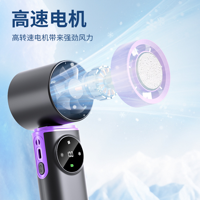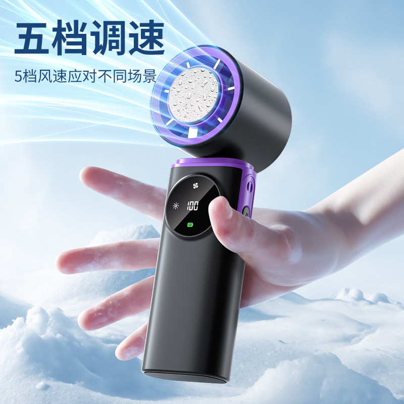 跨境新款冰敷高速制冷手持风扇随身便携手持风扇数显199档小风扇