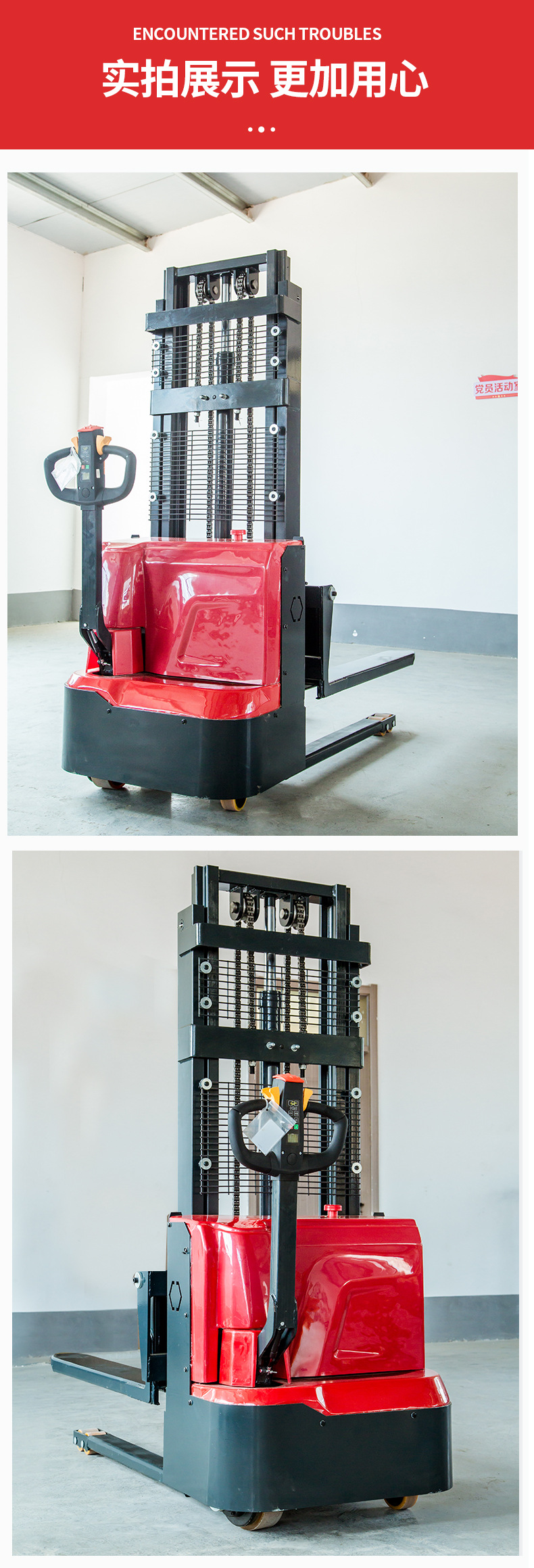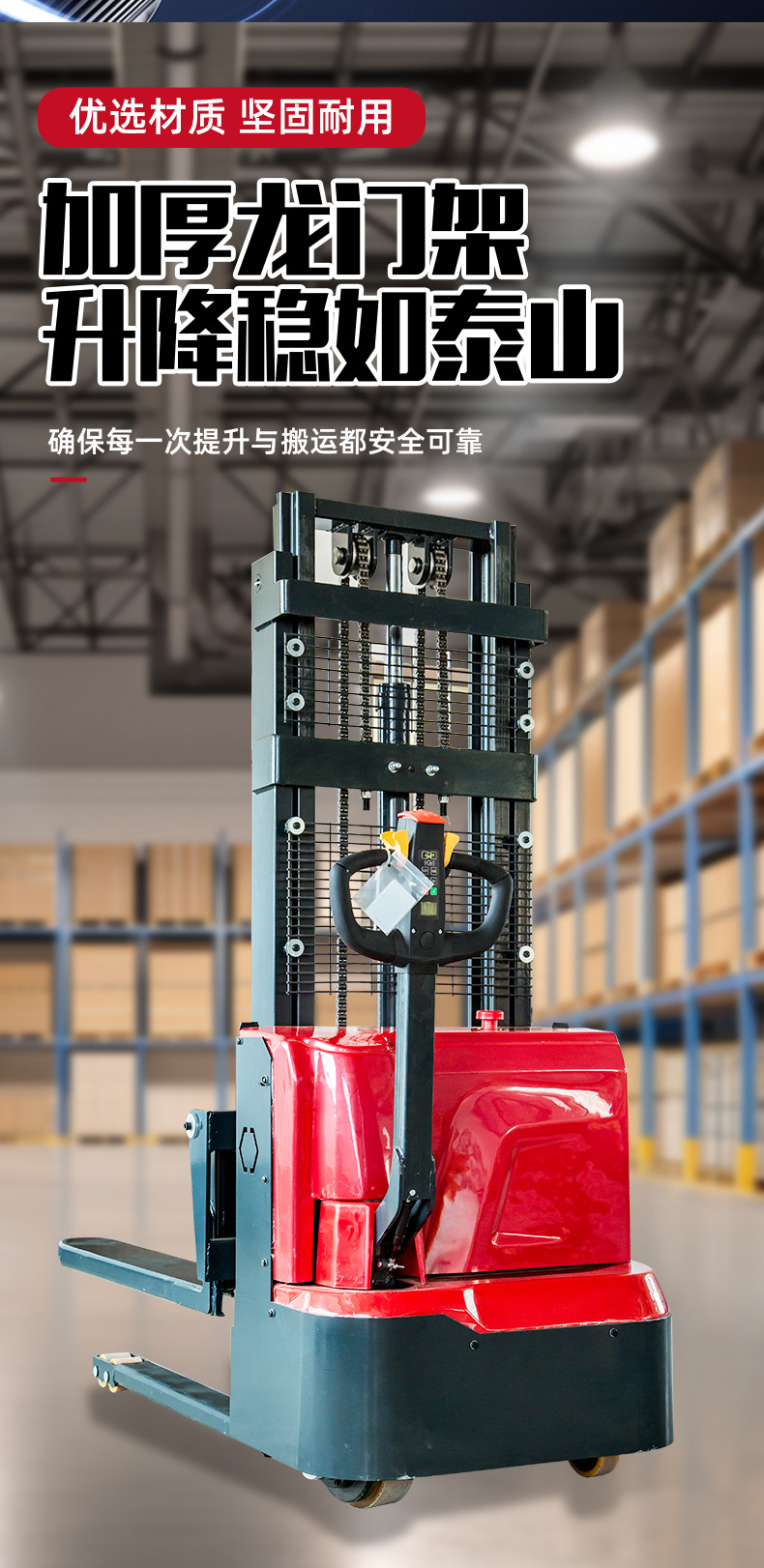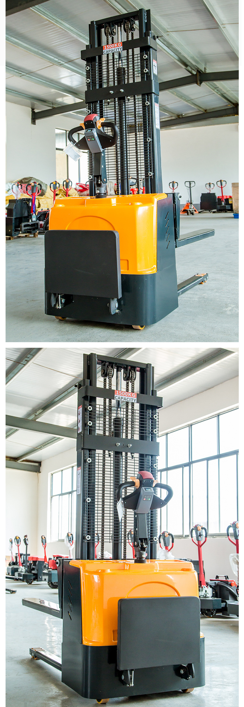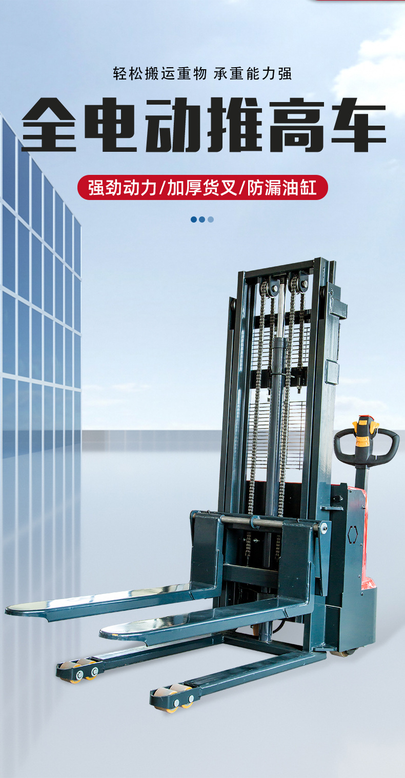 全电动堆高车1.5吨2吨电瓶液压升降电动叉车全电动步行式堆高叉车