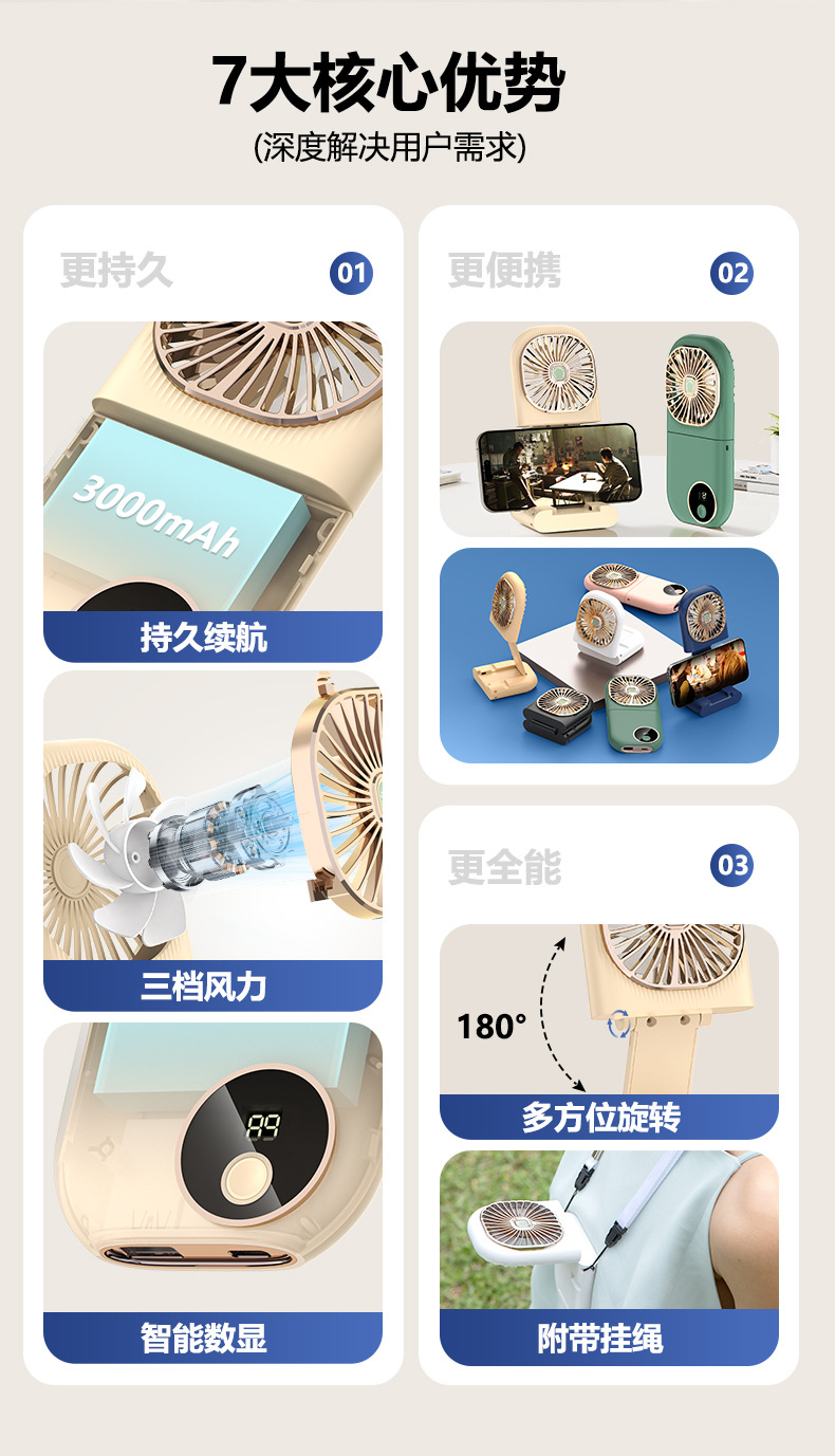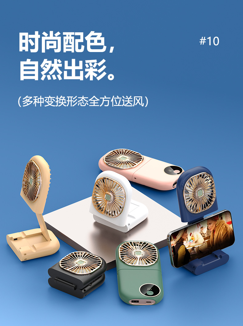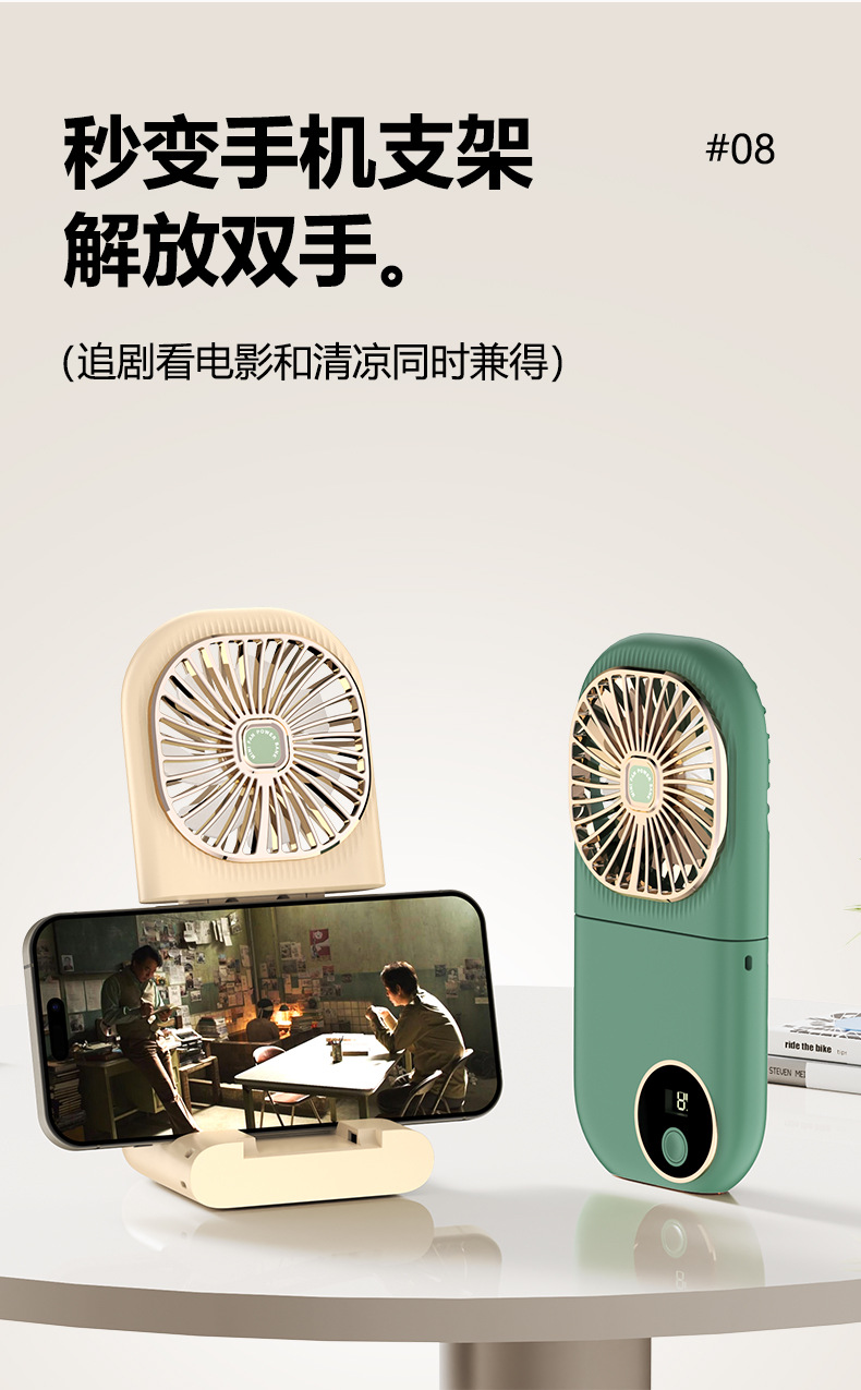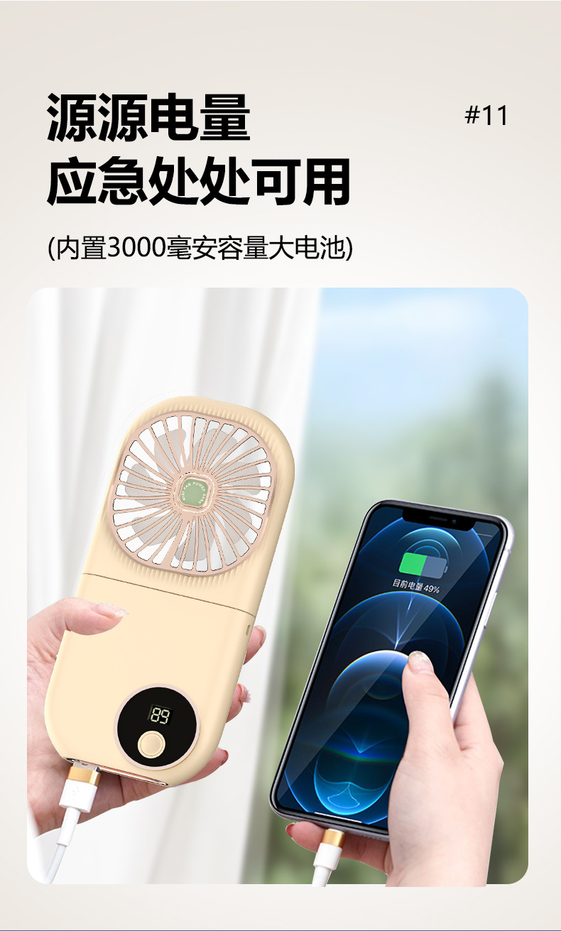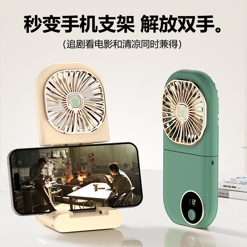 跨境可折叠桌面挂脖小风扇手持手机支架充电宝续航便携随身风扇