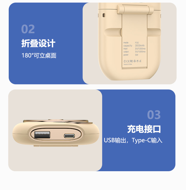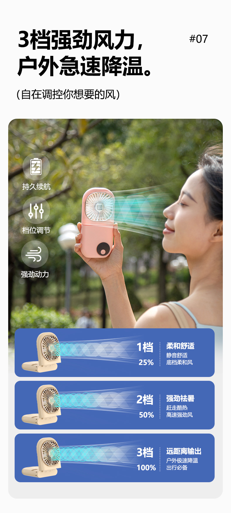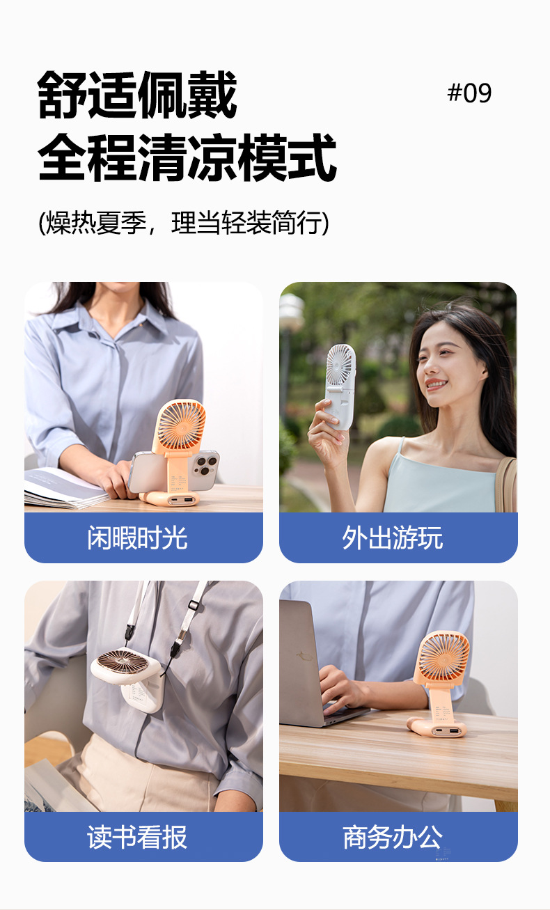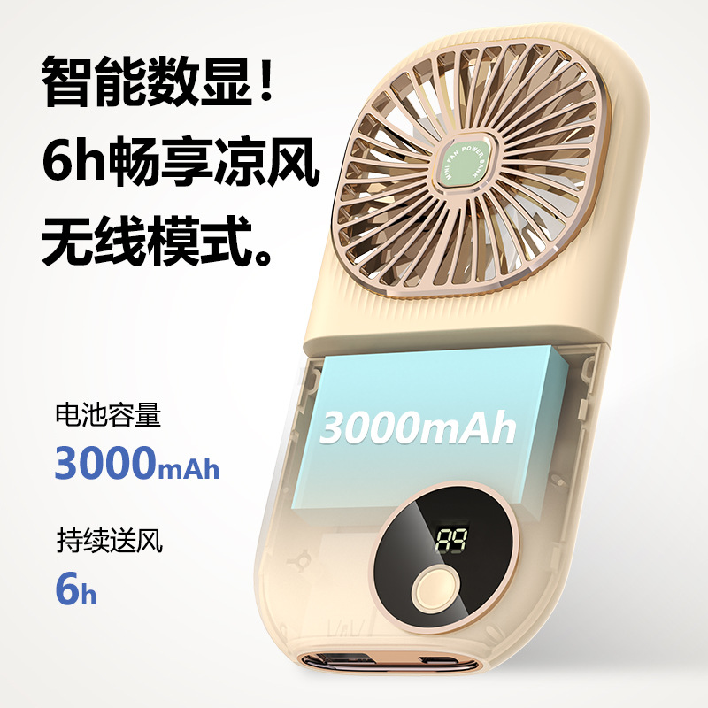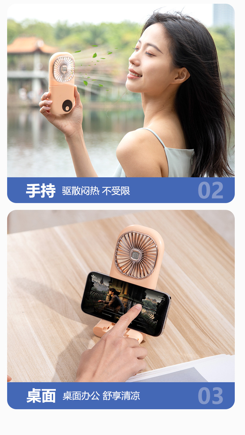 跨境可折叠桌面挂脖小风扇手持手机支架充电宝续航便携随身风扇