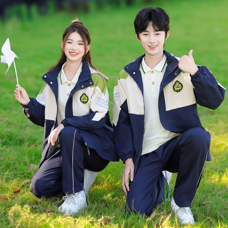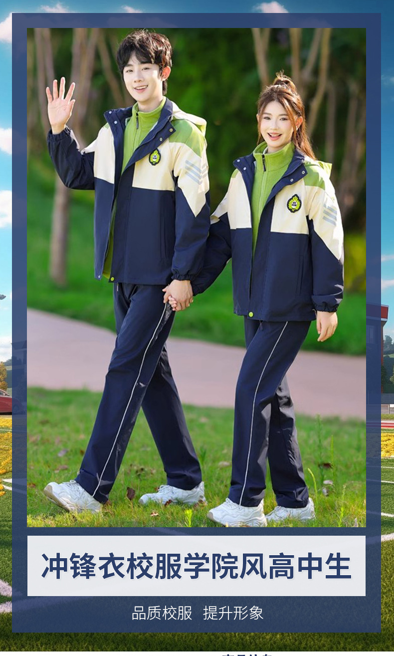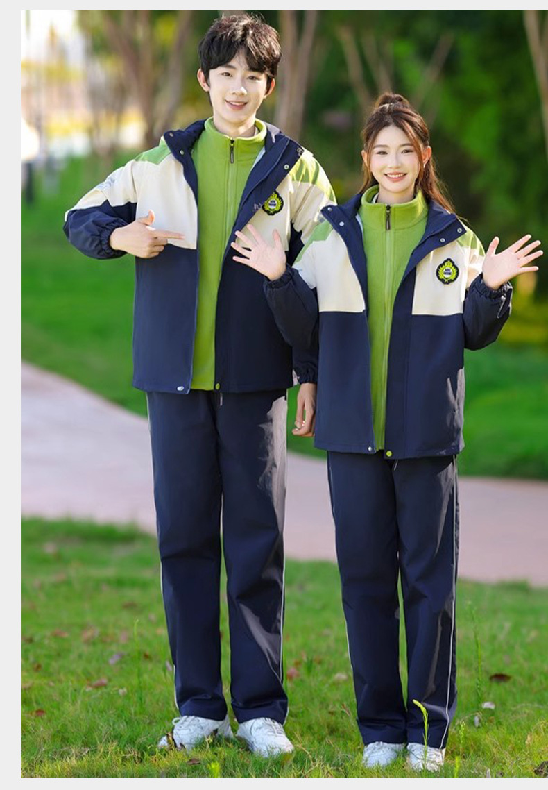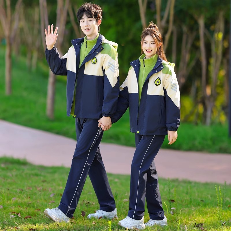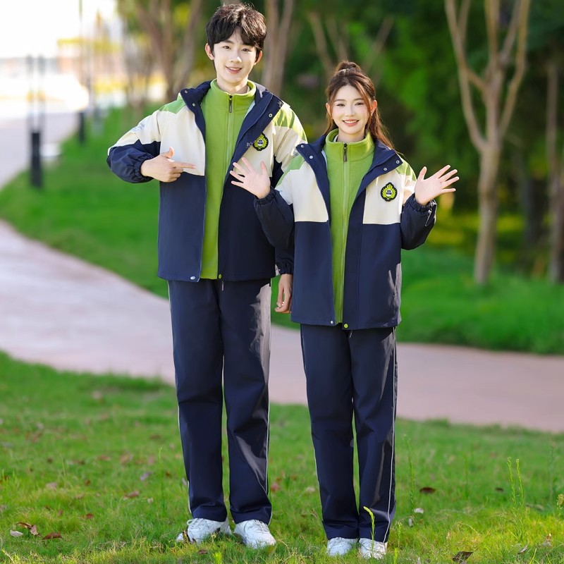 新款校服冲锋衣高中生三件套 初中秋冬冲锋衣校服三合一定 制厂家