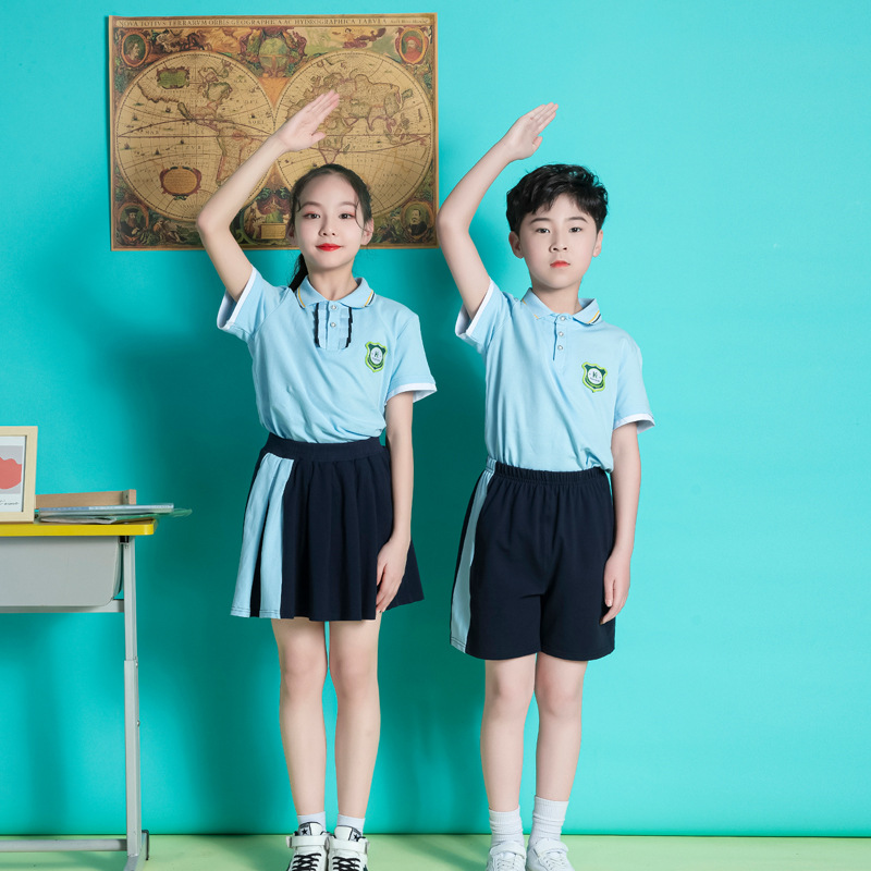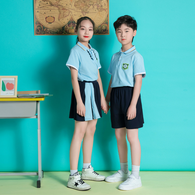 班服男童女童统一学院风短袖棉表演套装批发儿童校服校园风
