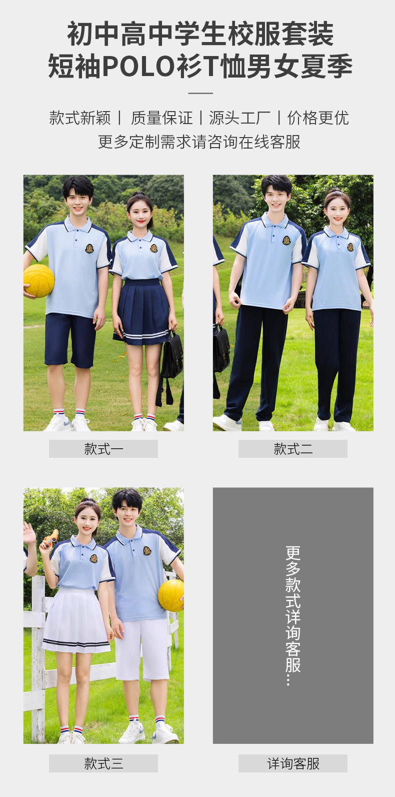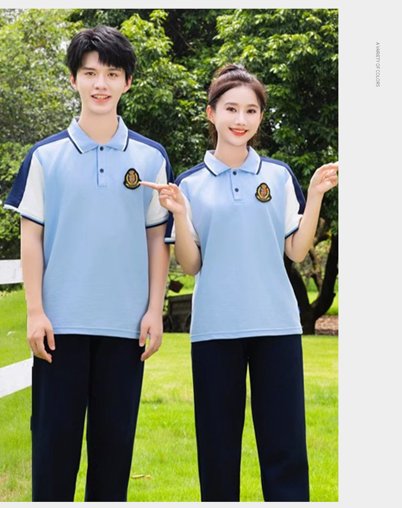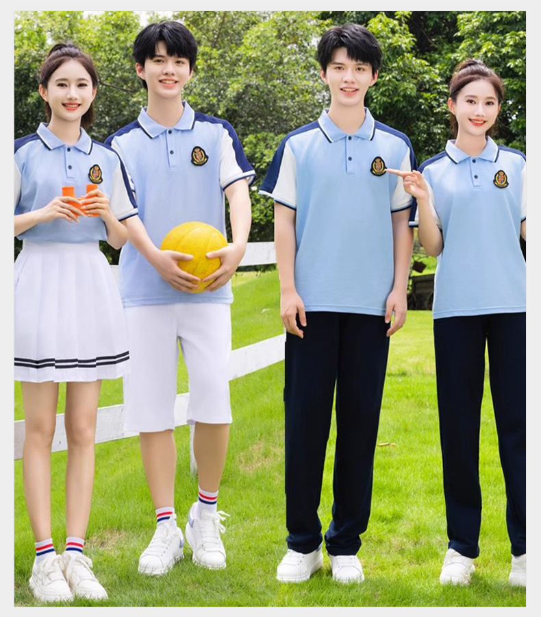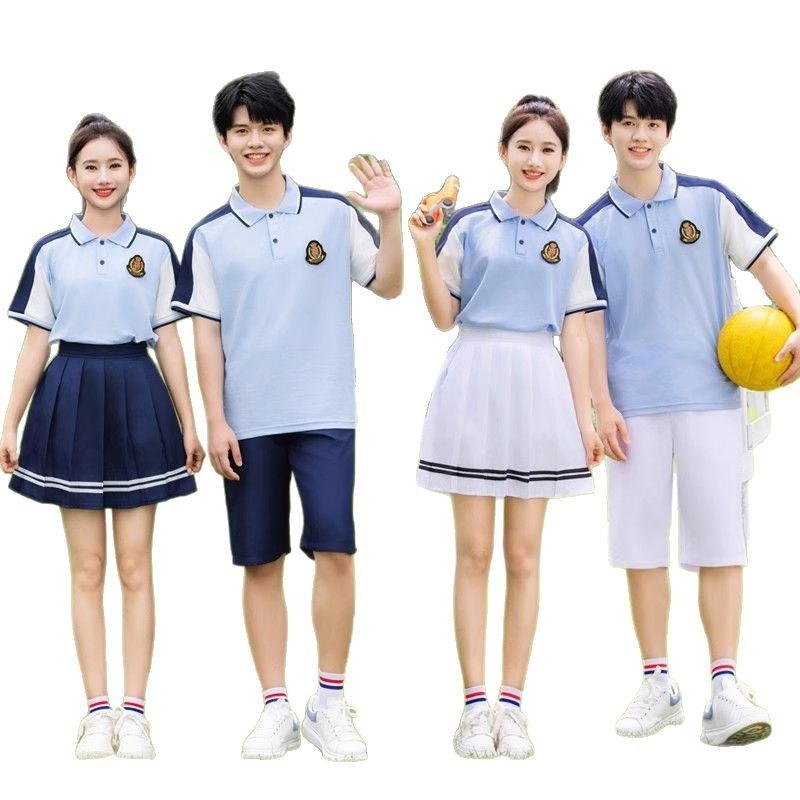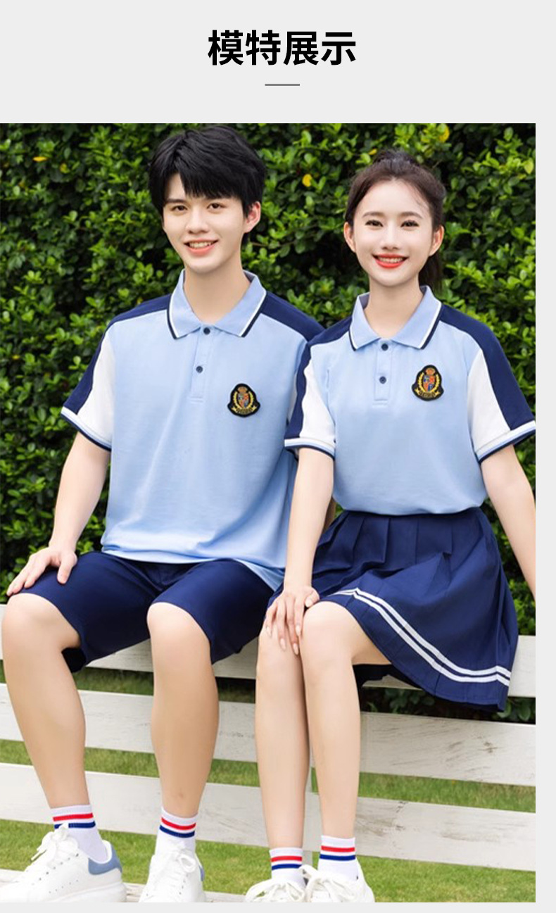 夏季校服polo衫园服 蓝色儿童校服高中休闲运动套装短袖T恤百褶裙