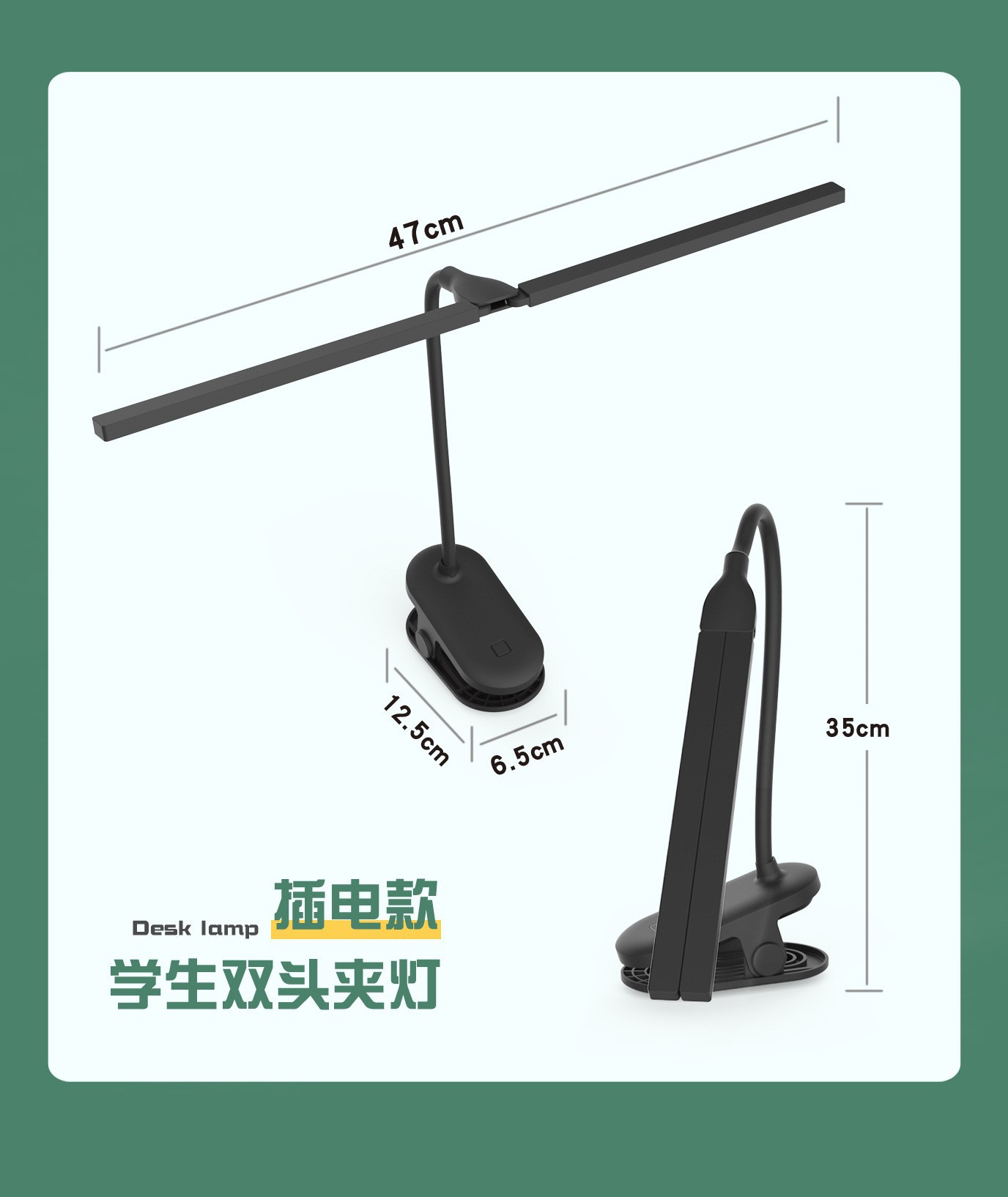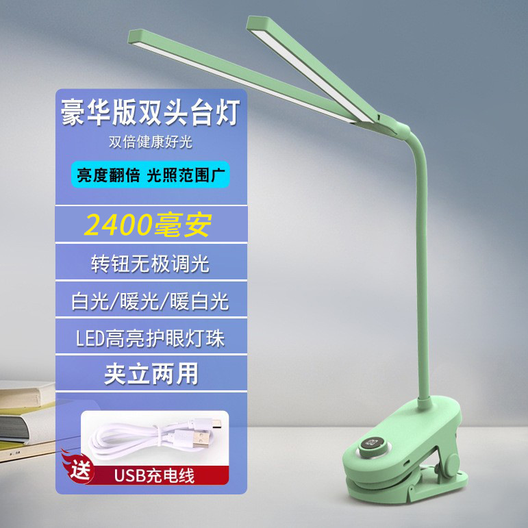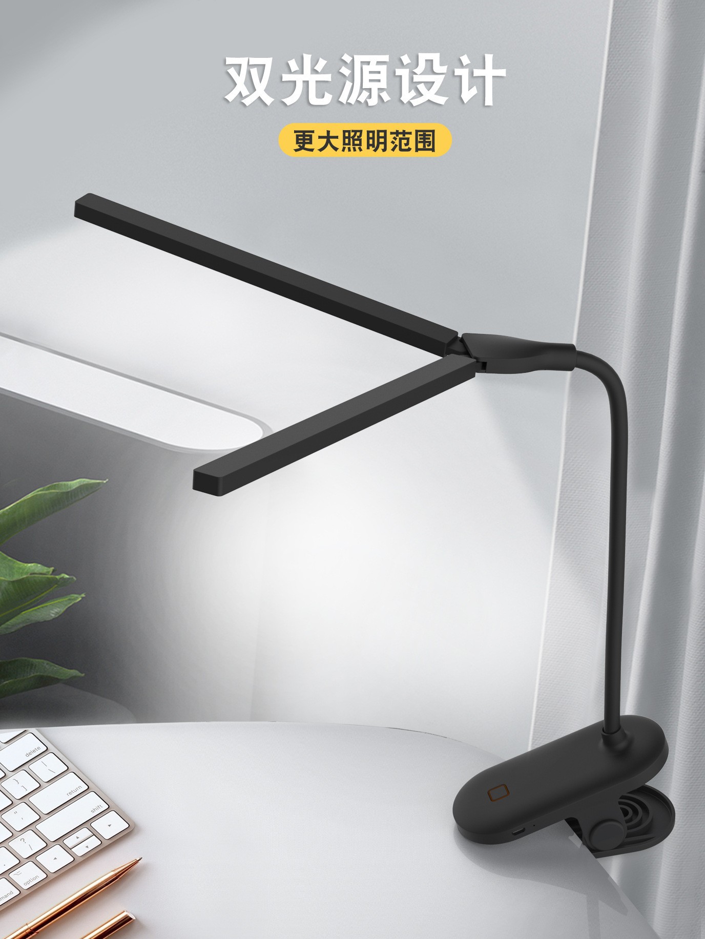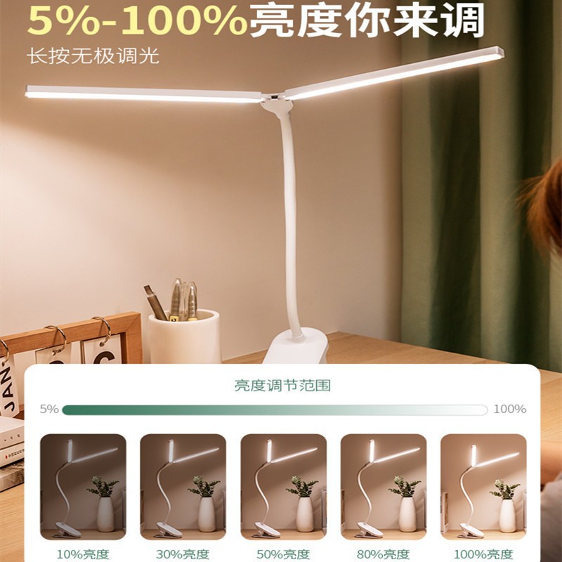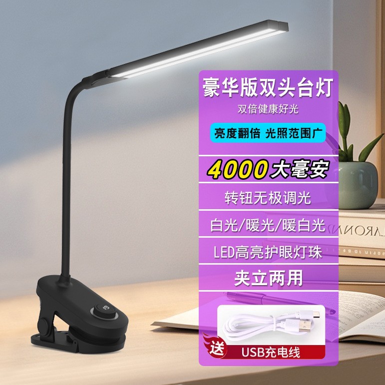 学习台灯LED护眼折叠双头台灯学生宿舍夹子桌面充插电两用长续航