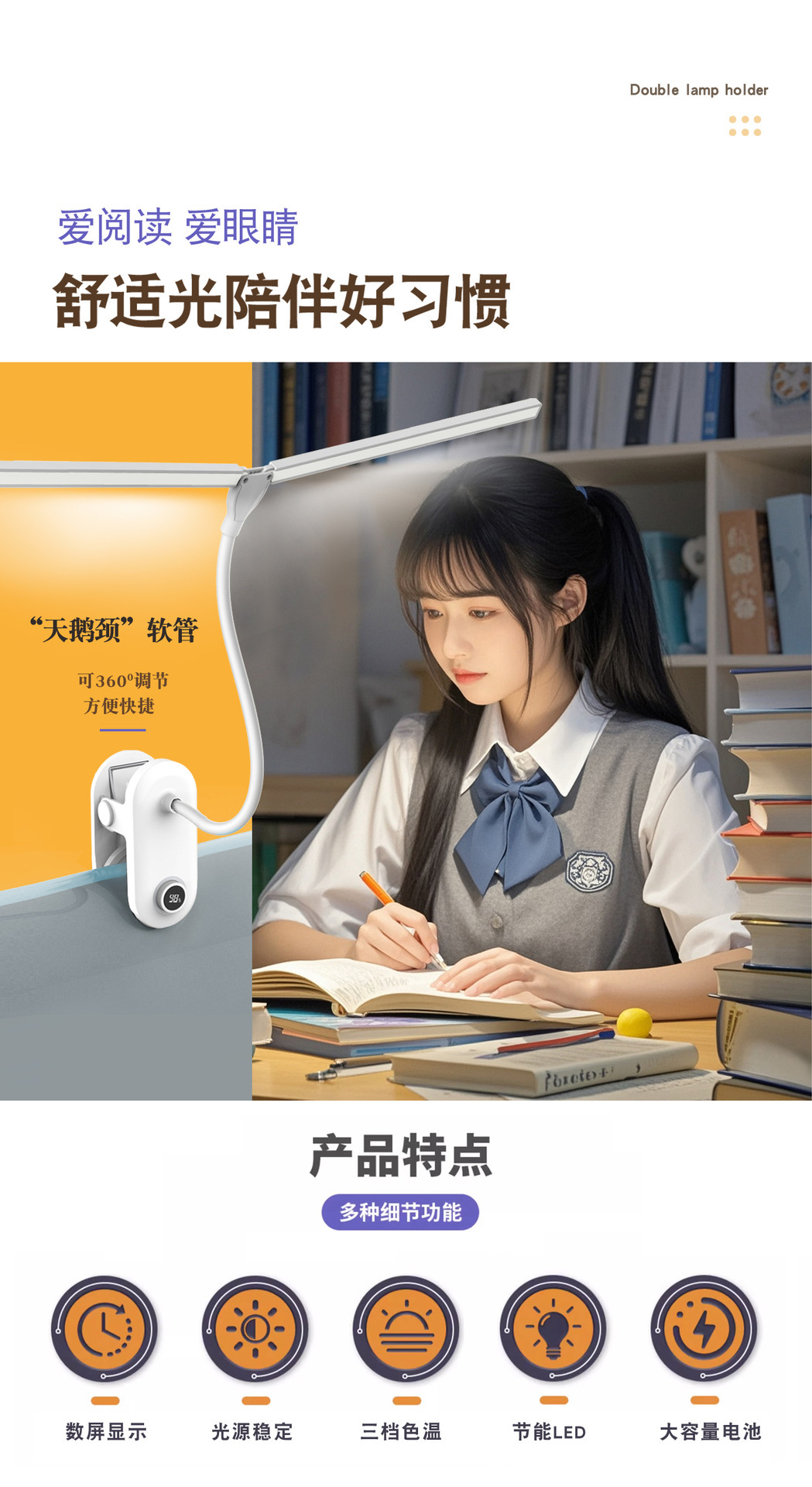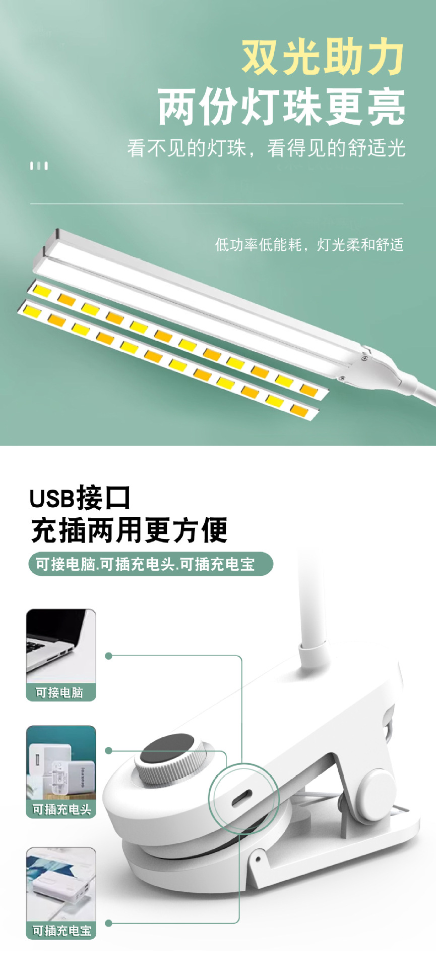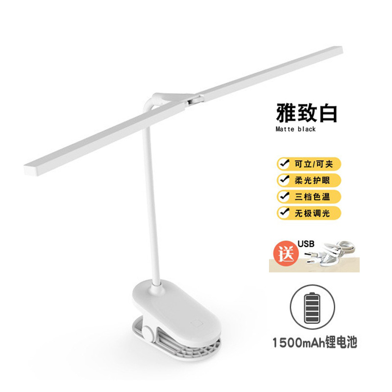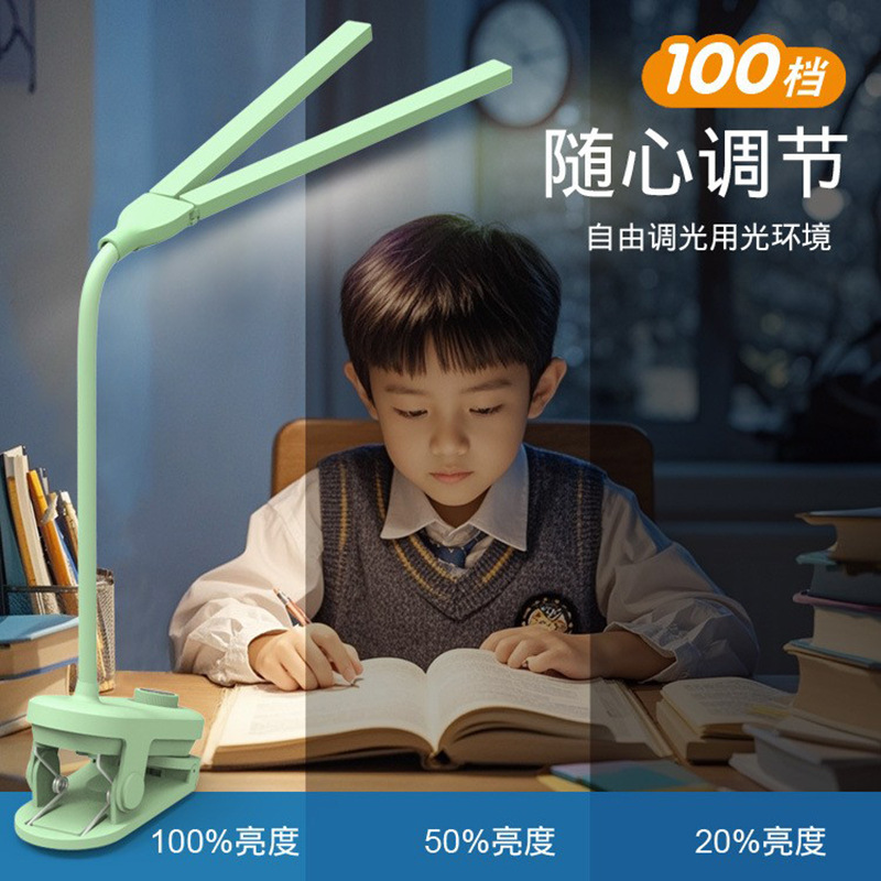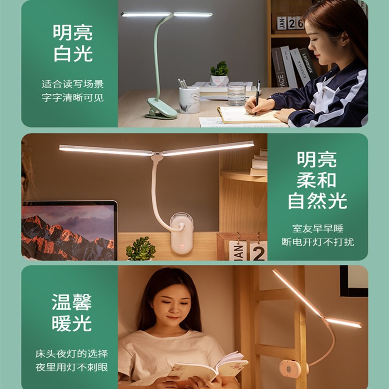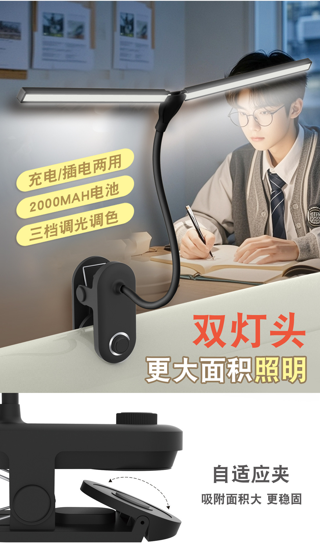 学习台灯LED护眼折叠双头台灯学生宿舍夹子桌面充插电两用长续航