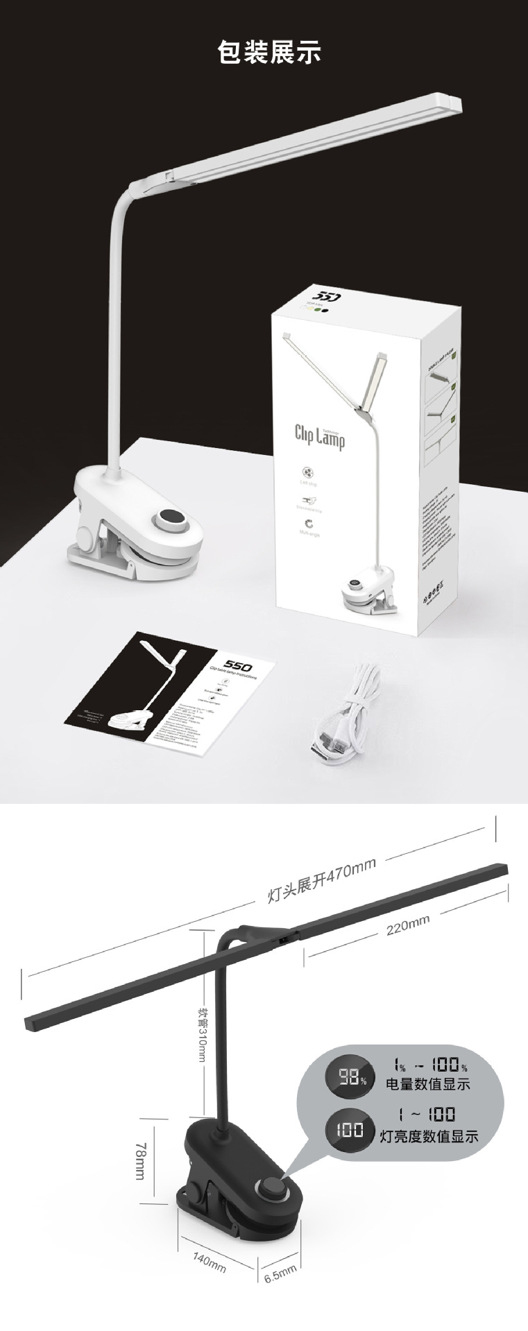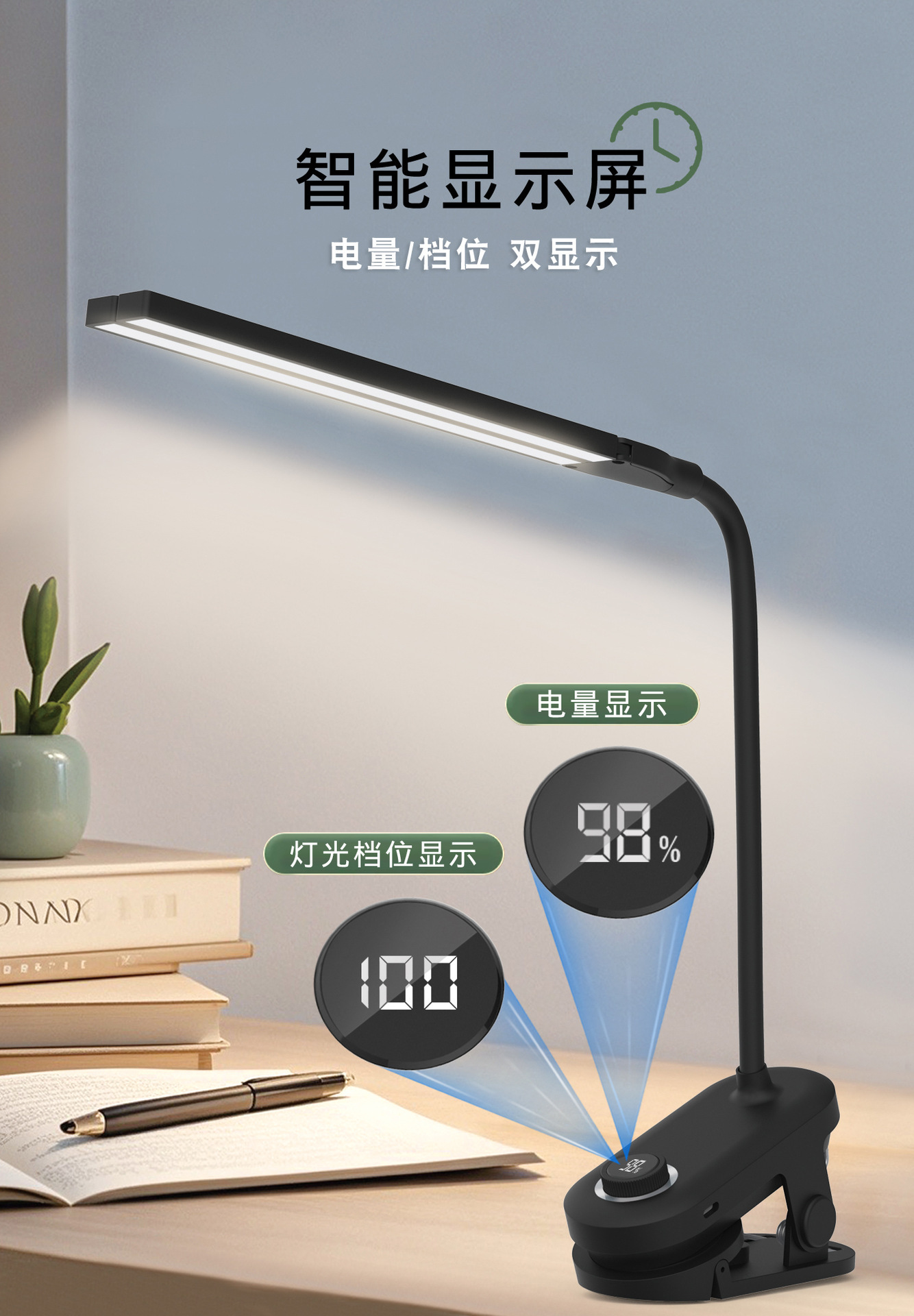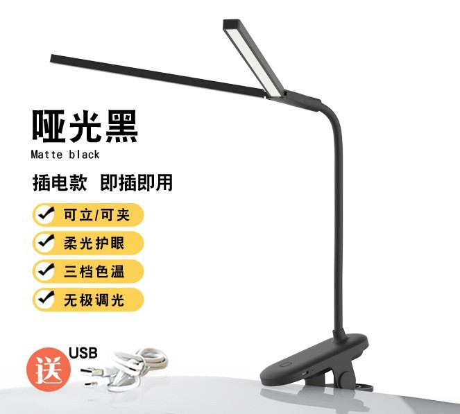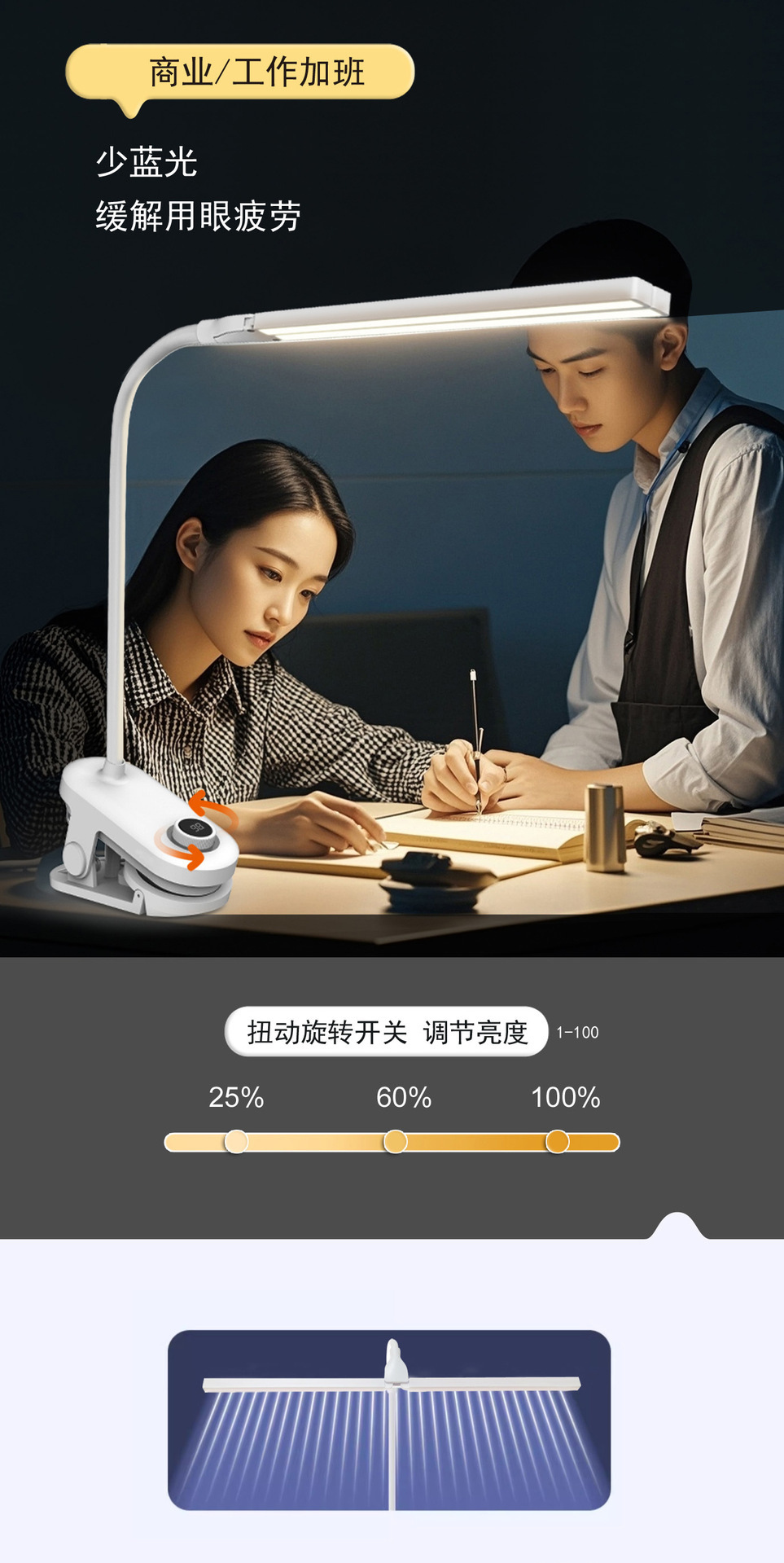 学习台灯LED护眼折叠双头台灯学生宿舍夹子桌面充插电两用长续航