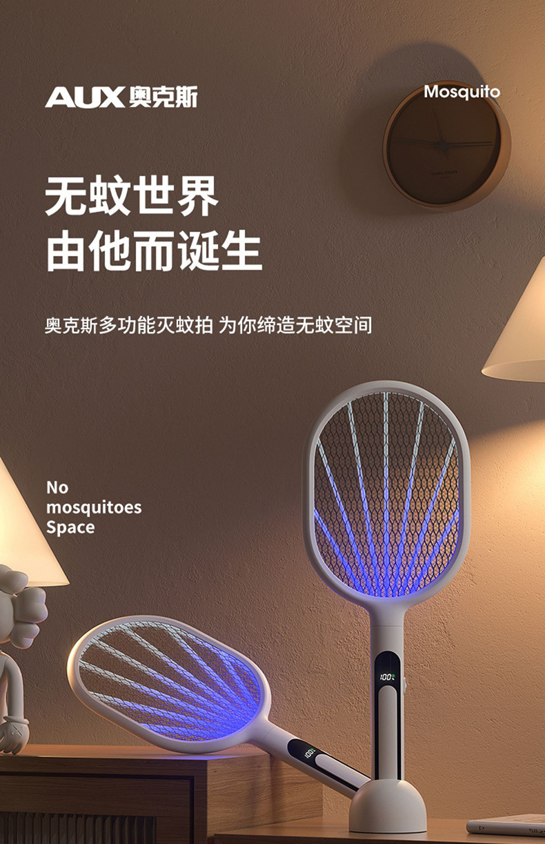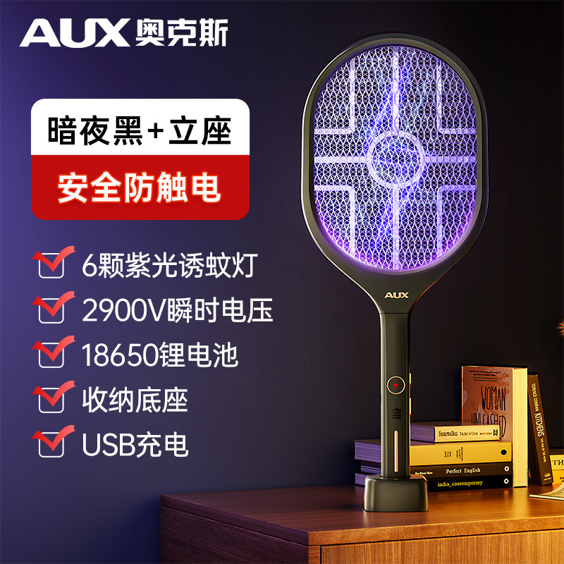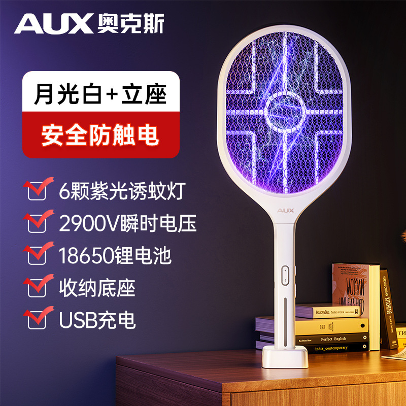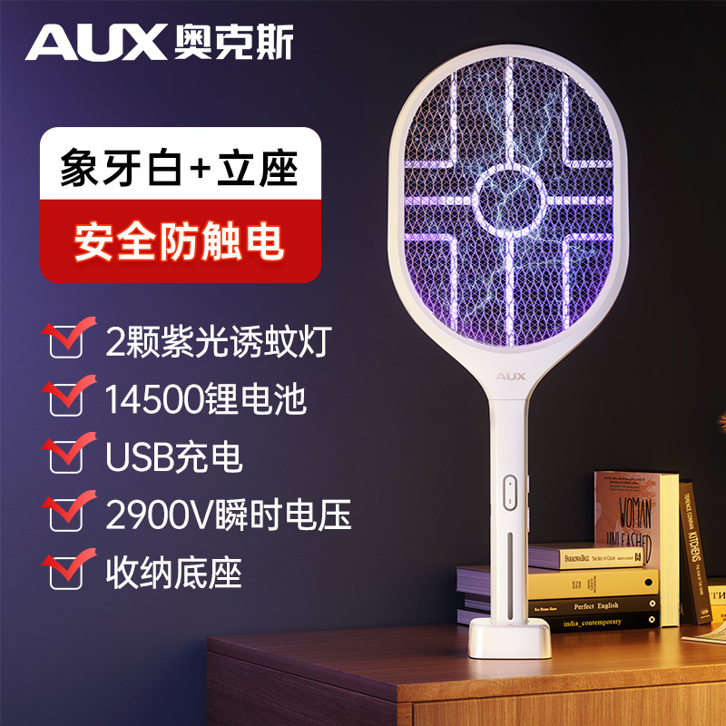 奥克斯电蚊拍充电式家用灭蚊灯二合一诱蚊打蚊子神器2025新款