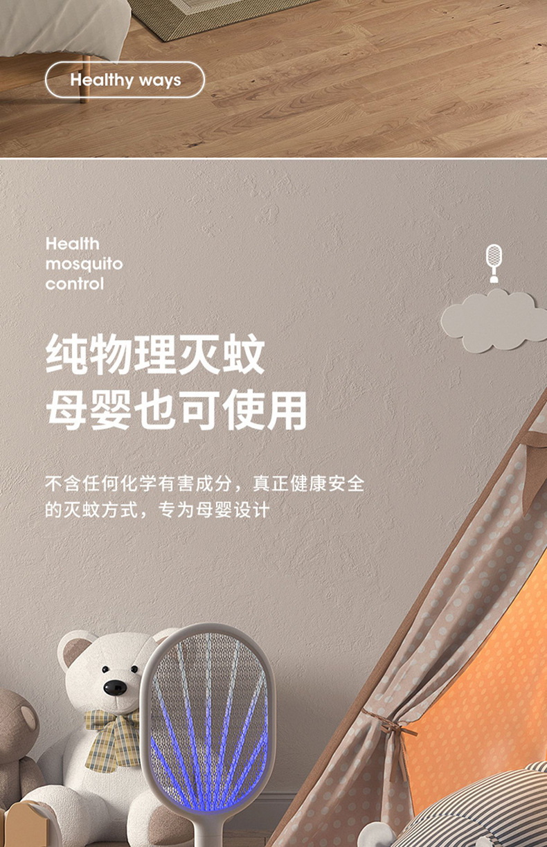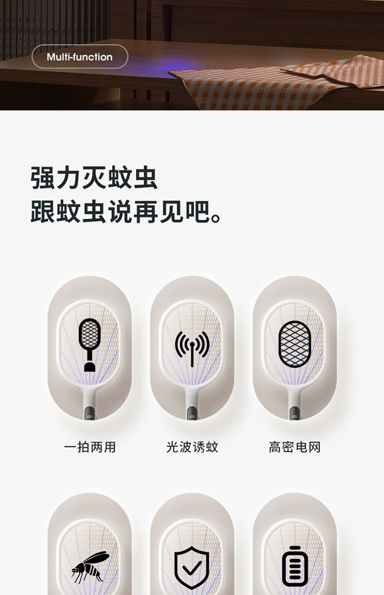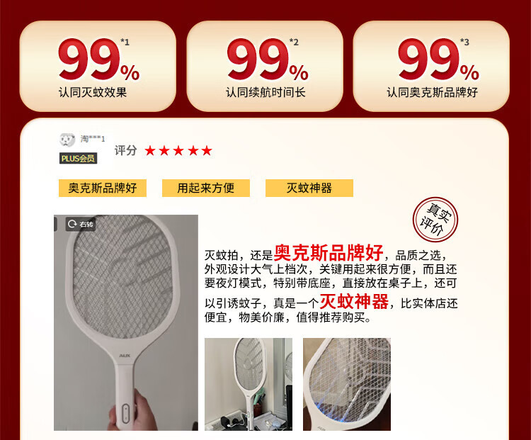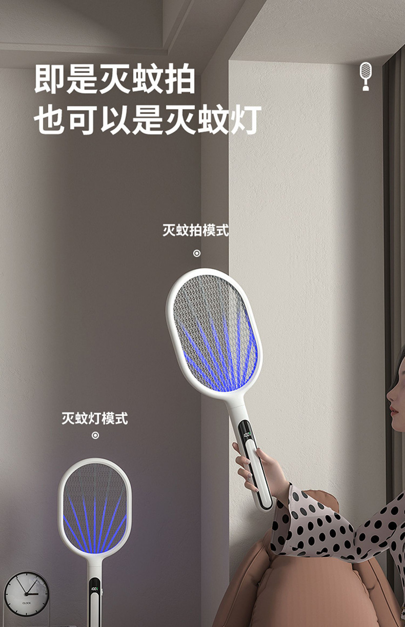 奥克斯电蚊拍充电式家用灭蚊灯二合一诱蚊打蚊子神器2025新款