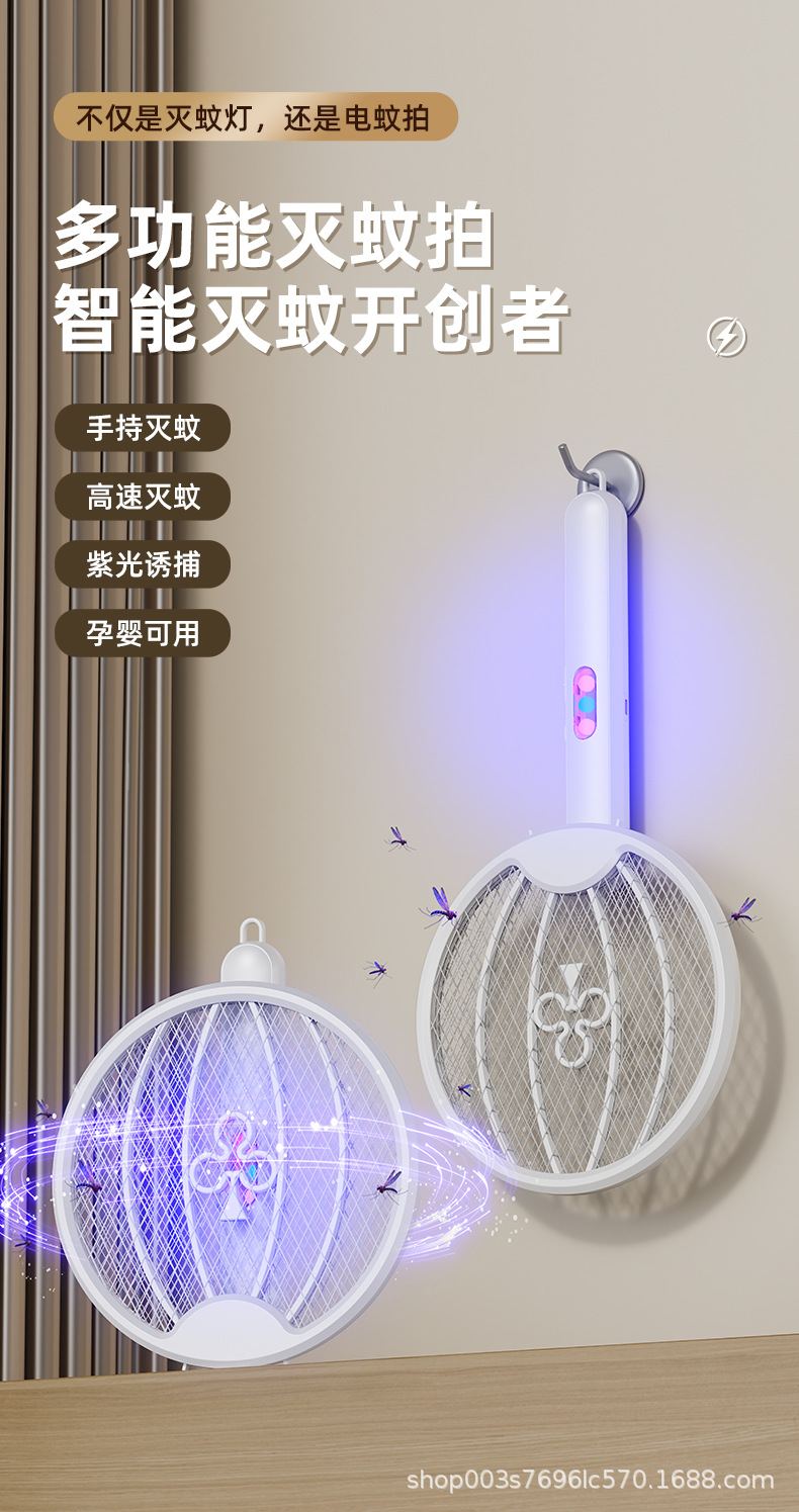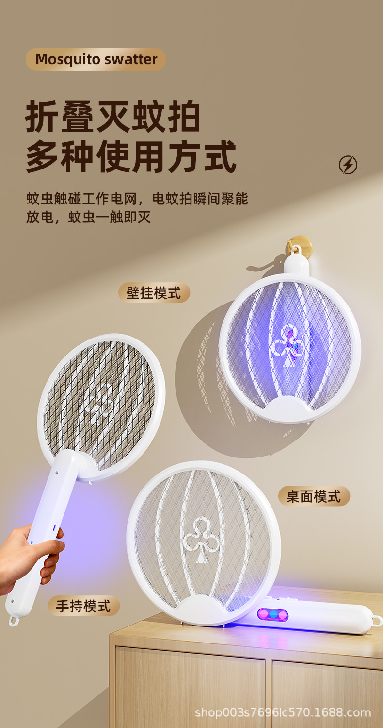 新款可折叠电蚊拍家用便携充电式灭蚊灯二合一驱蚊神器批发