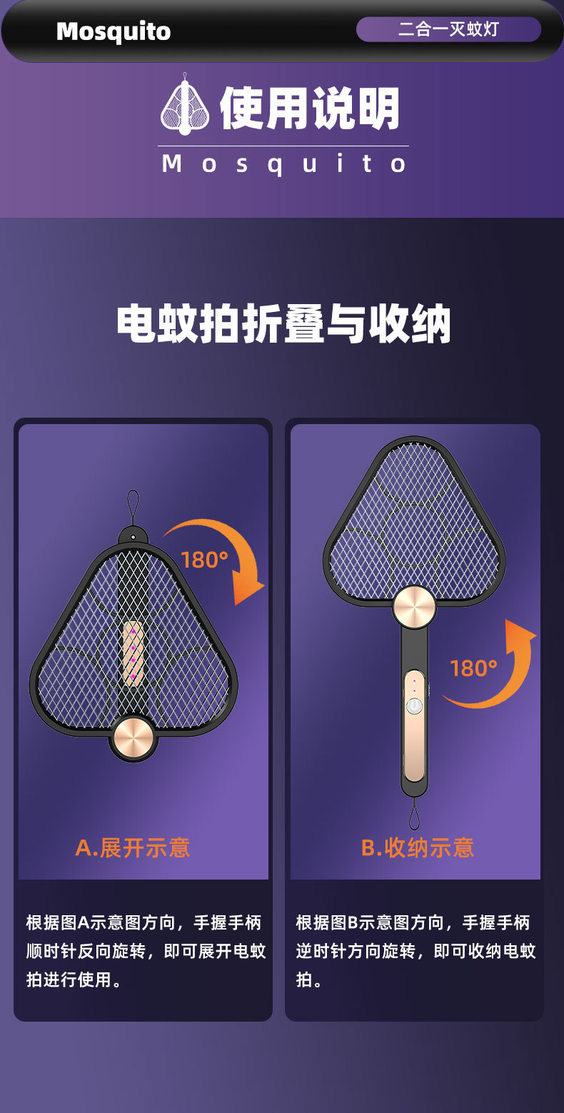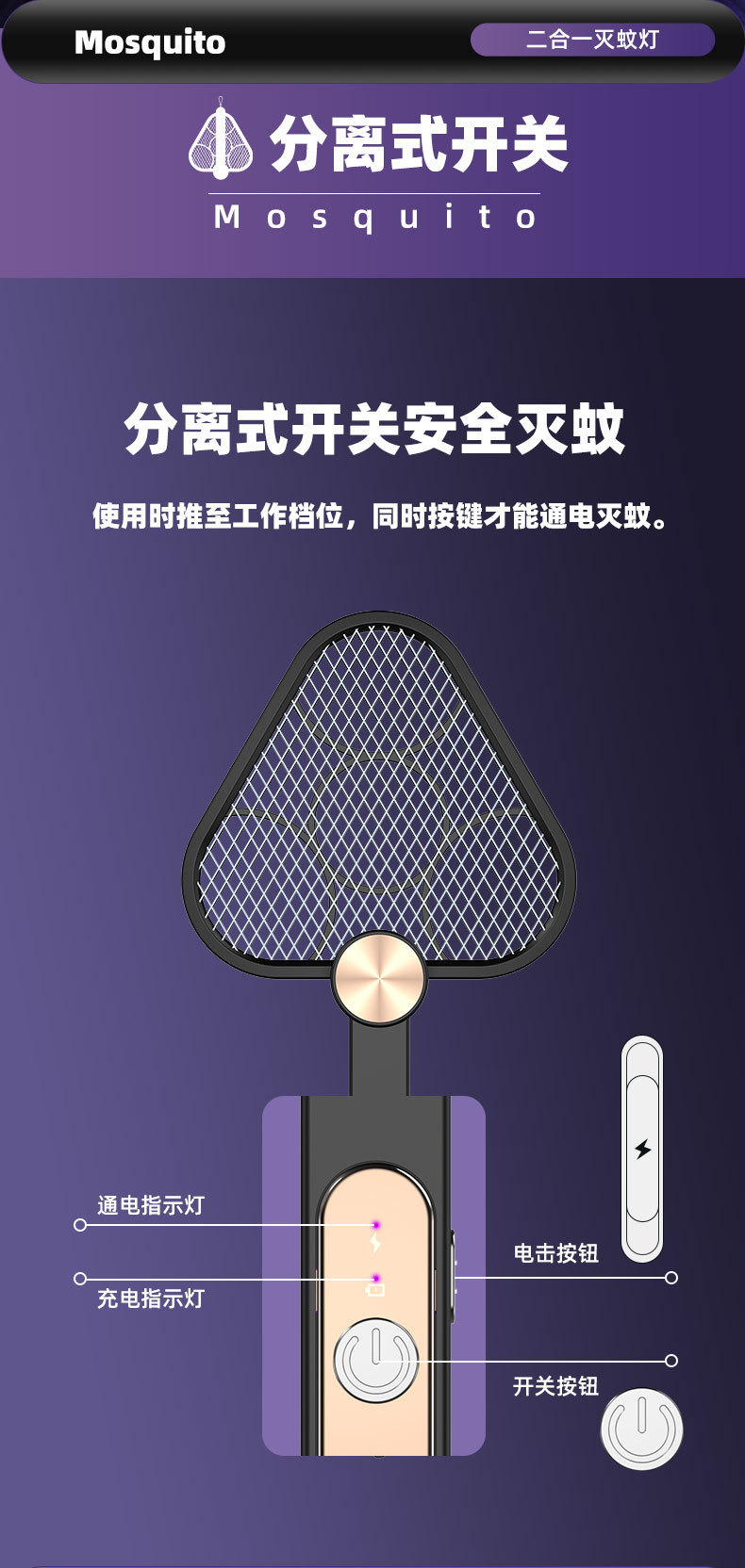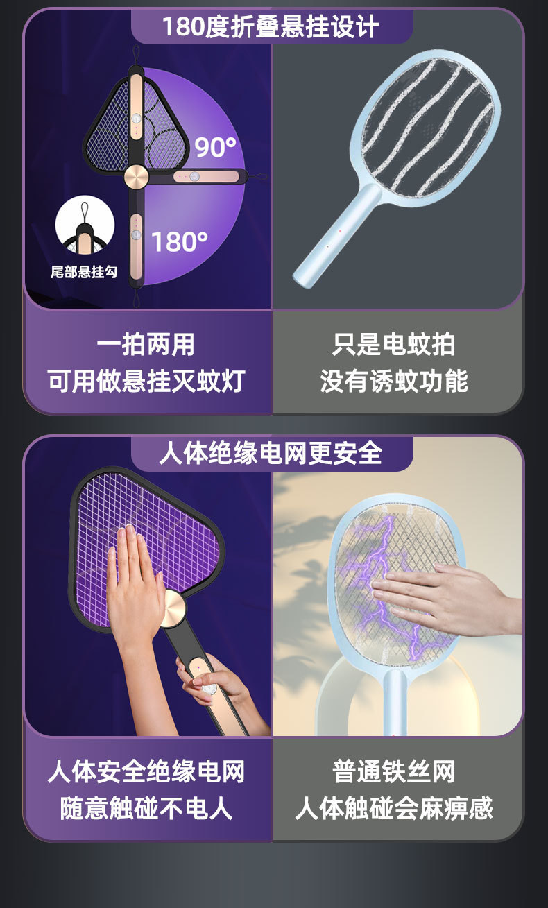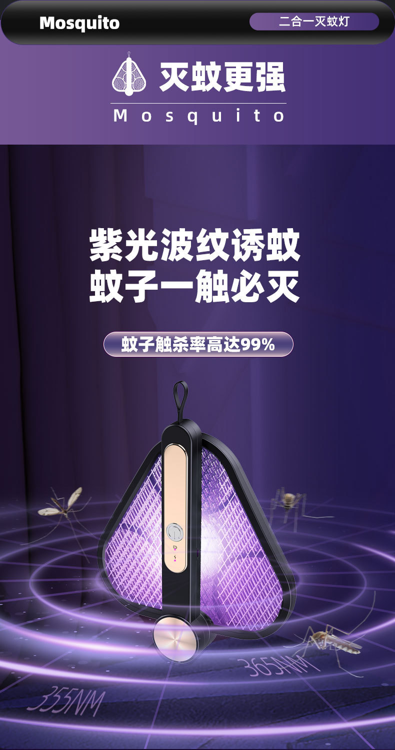 可折叠电蚊三合一灭蚊神器充电式家用灭蚊灯锂电池蚊子苍蝇拍