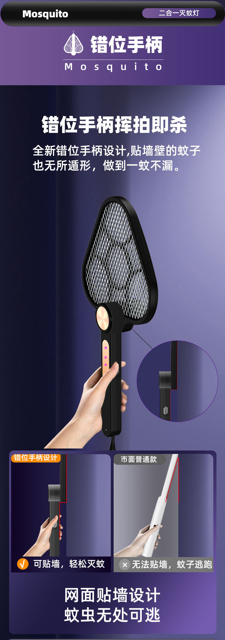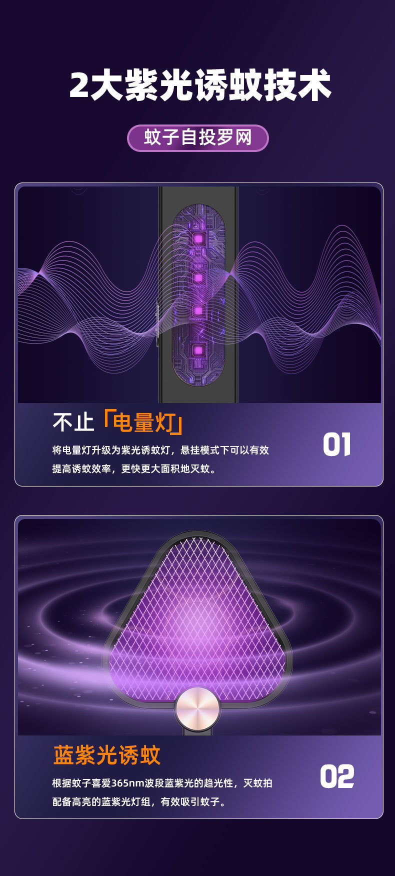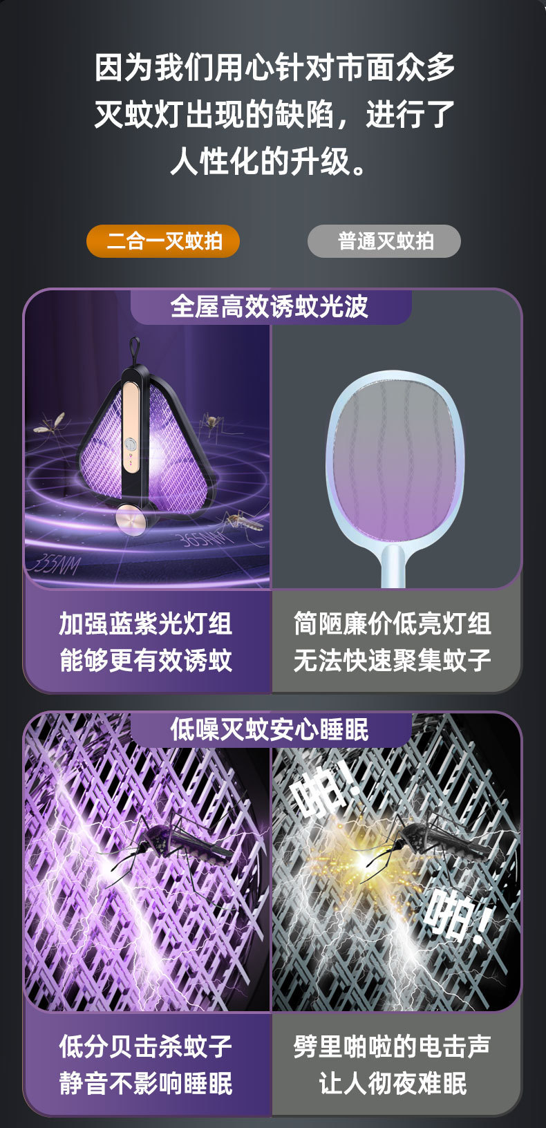可折叠电蚊三合一灭蚊神器充电式家用灭蚊灯锂电池蚊子苍蝇拍