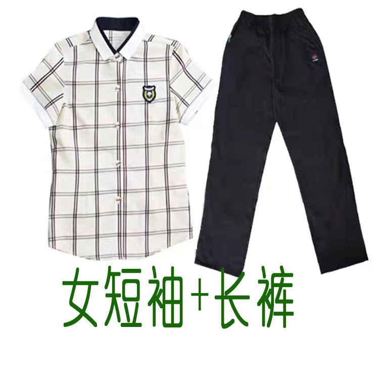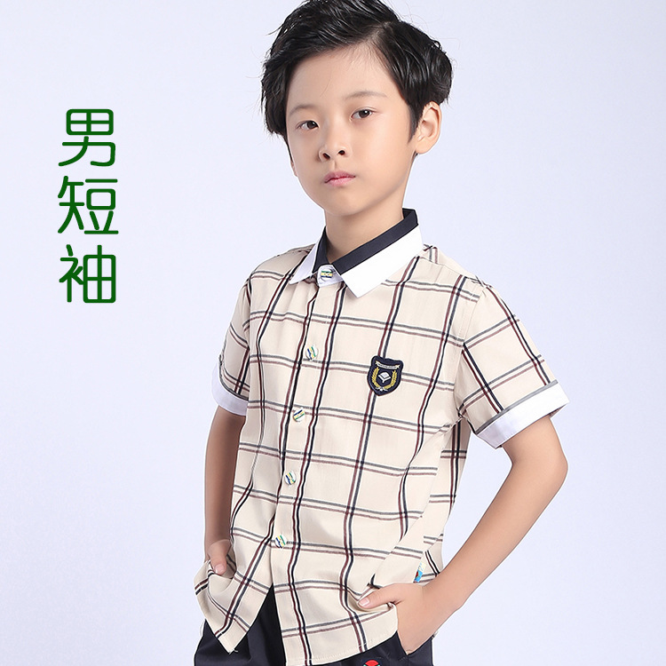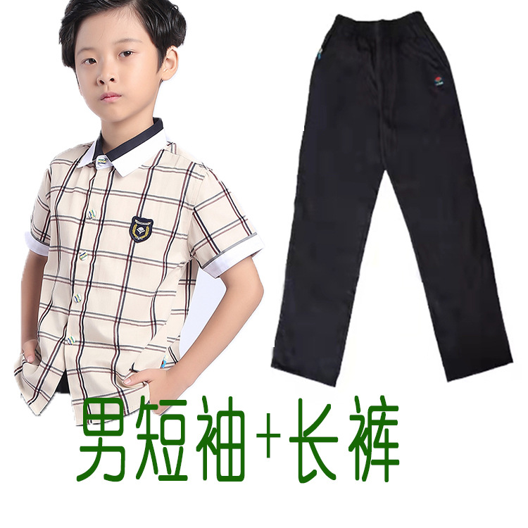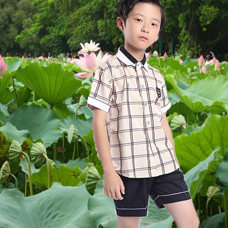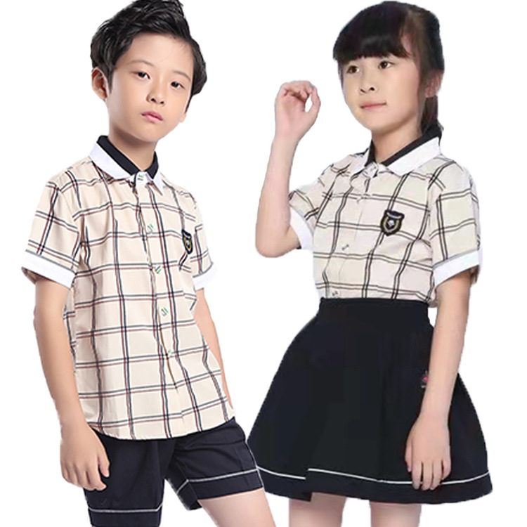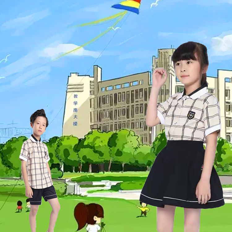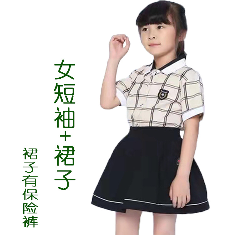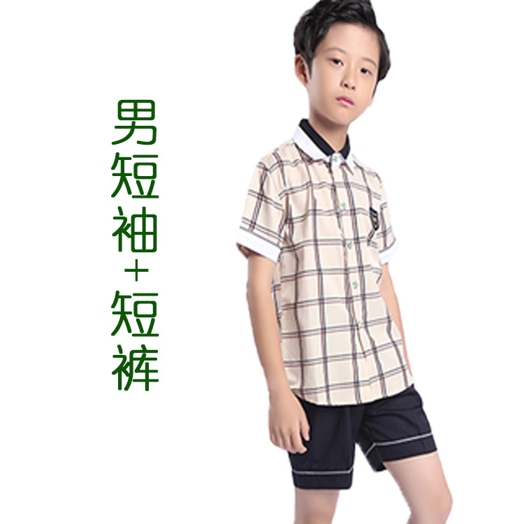 南宁小学生夏季校服儿童格子短袖套装现货批发