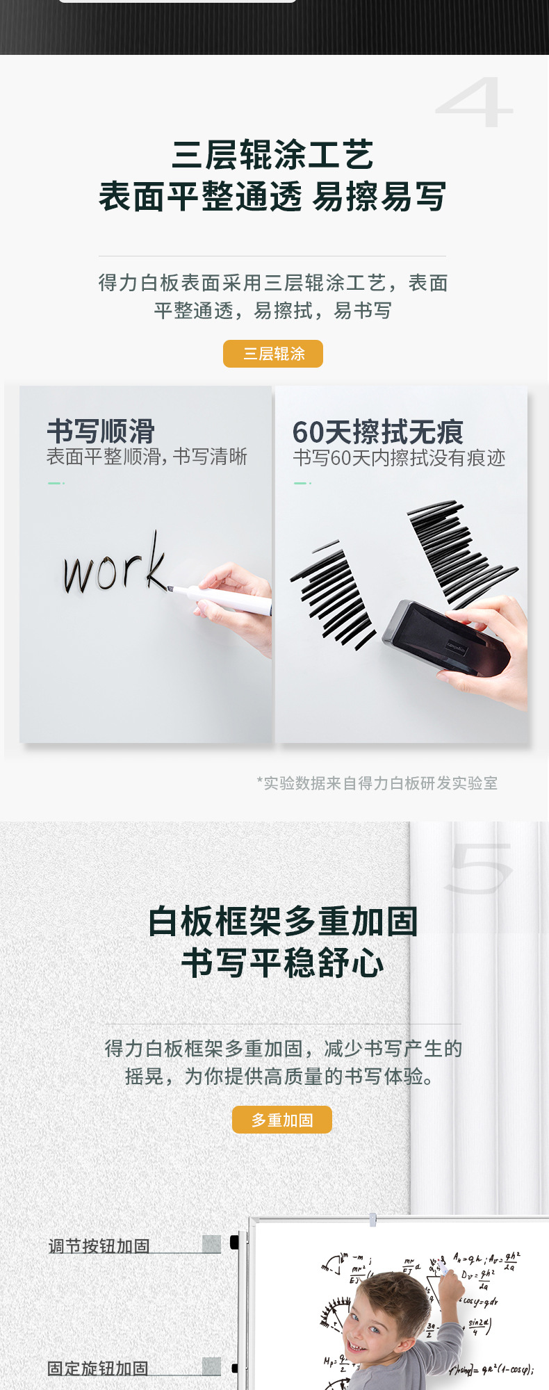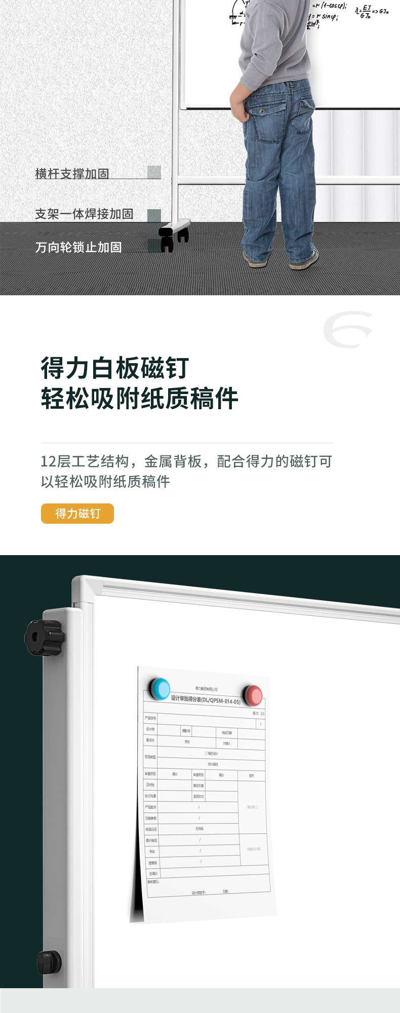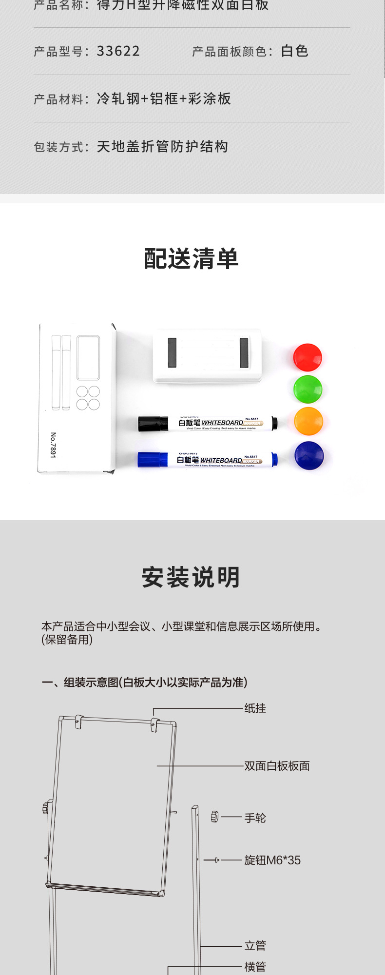 得力白板120*90cm支架上下升降移动家用儿童教学培训双面磁性