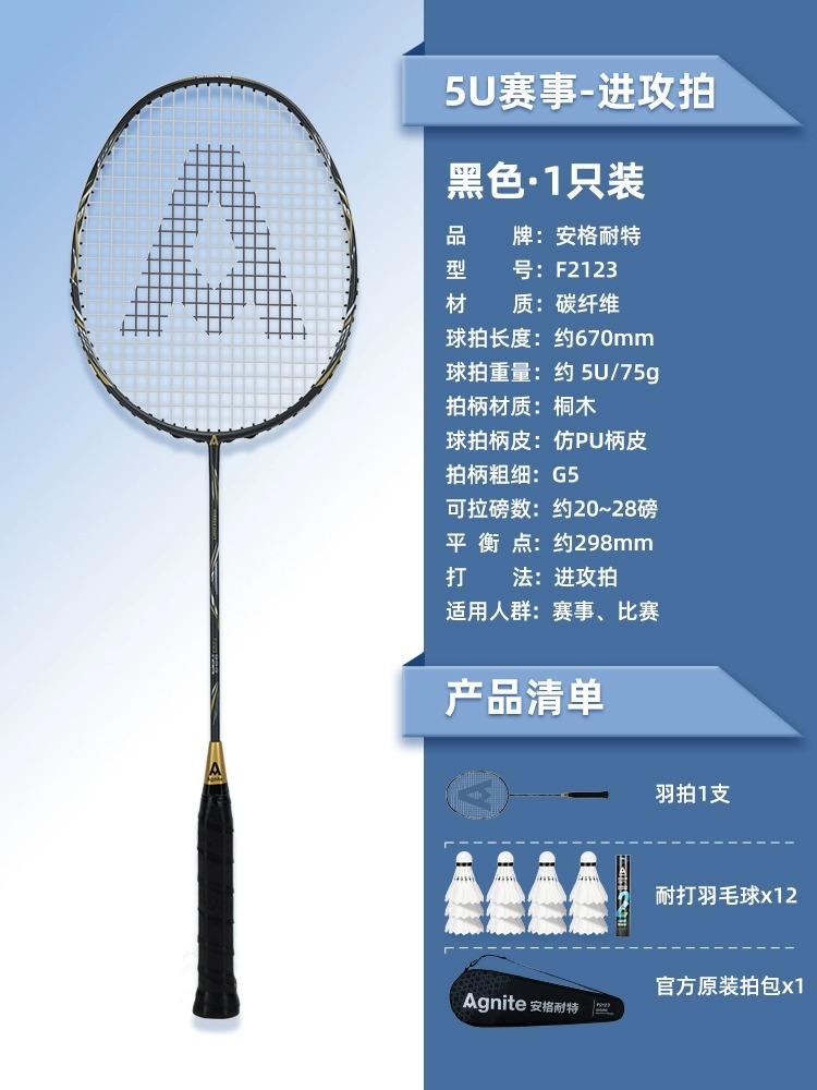 得力安格耐特羽毛球拍正品碳素纤维超轻型儿童学生青少年套装