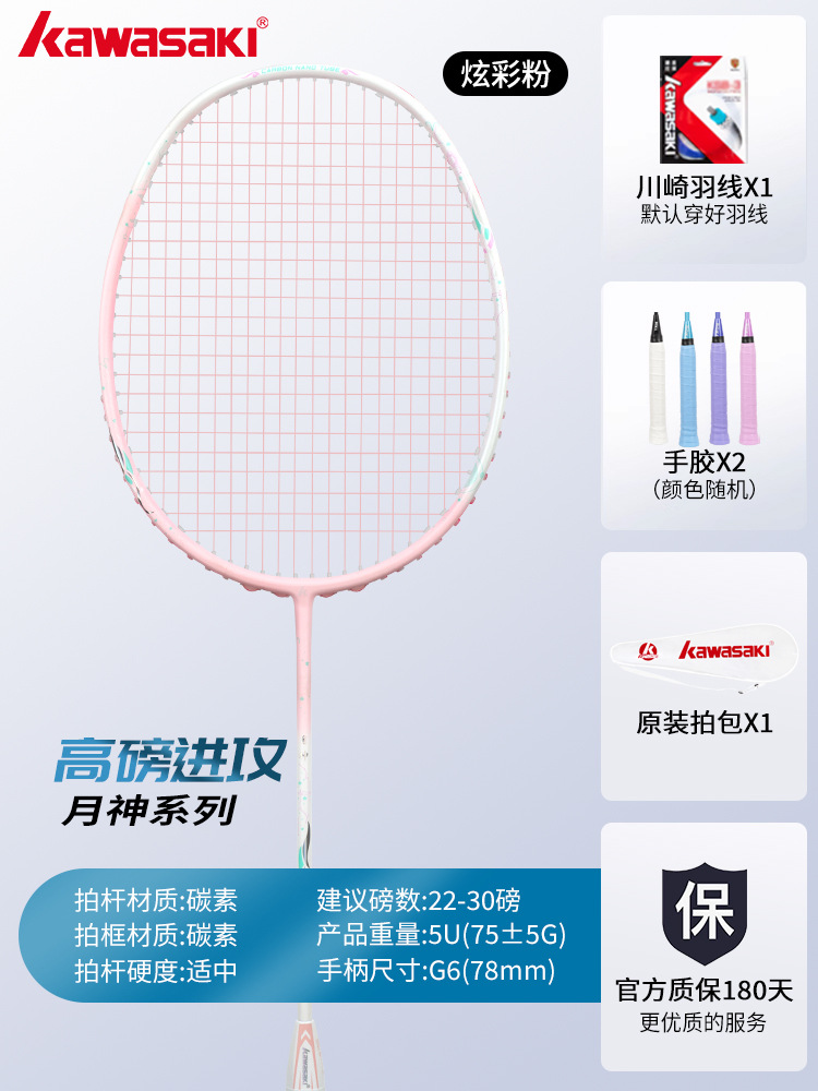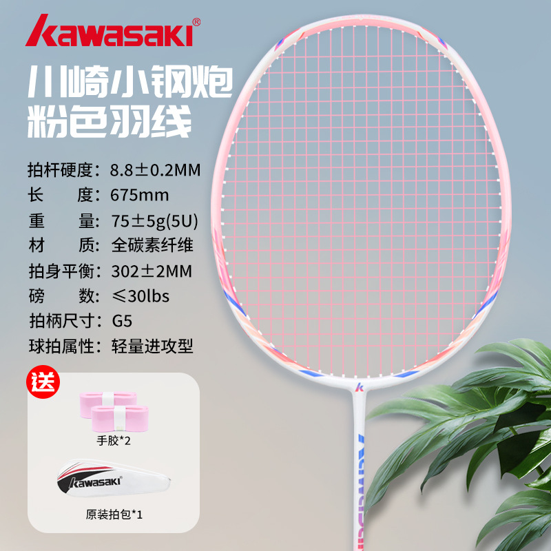 kawasaki川崎正品羽毛球拍小钢炮全碳素纤维超轻专业级训练单拍