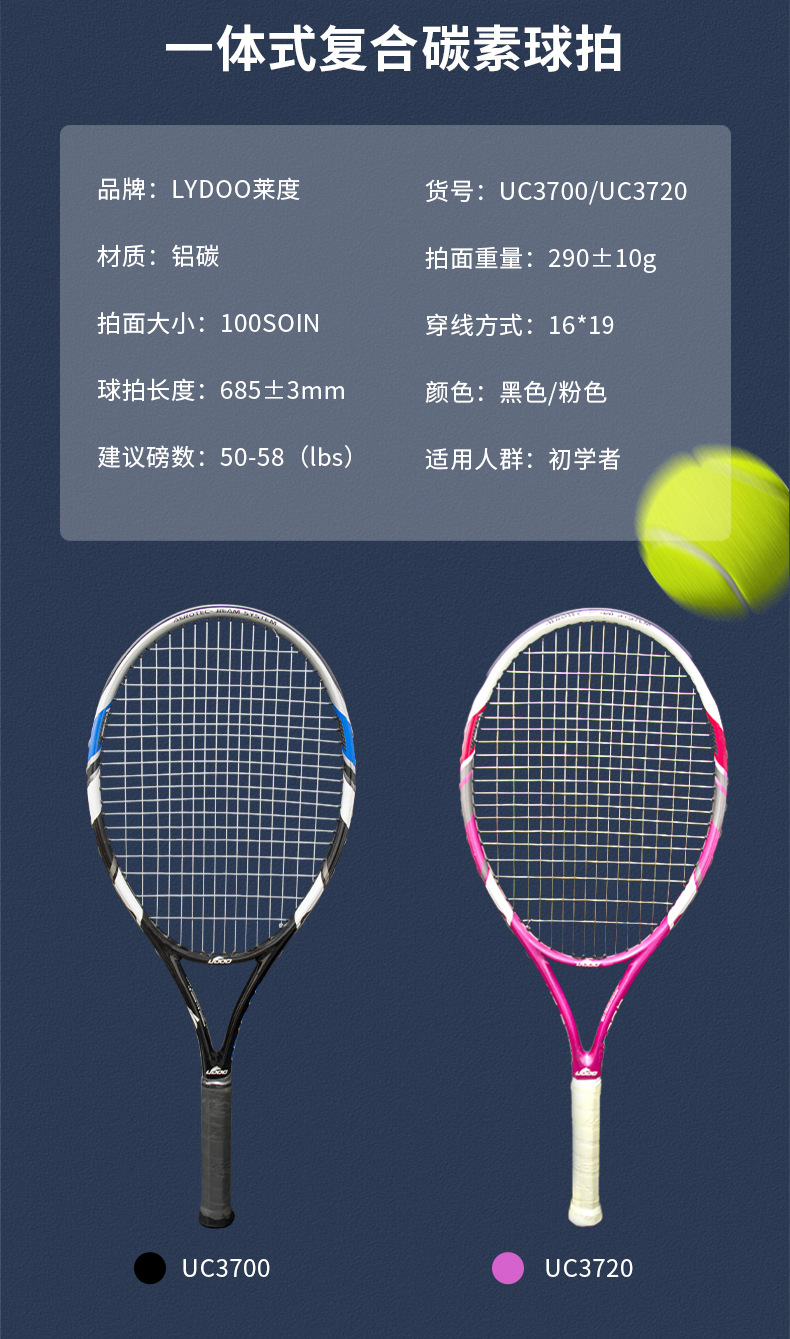 超轻单双网球拍专业耐打网球拍莱度法拍网球拍碳素碳纤维一体拍