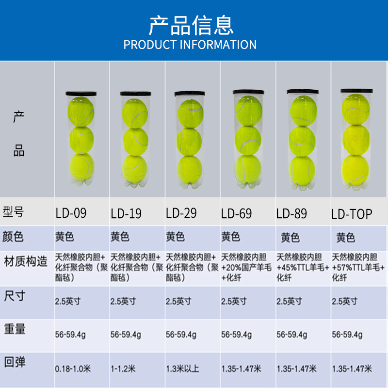 网球专业训练球耐打高回弹橡胶内胆羊毛化纤网球罐装袋装网球批发
