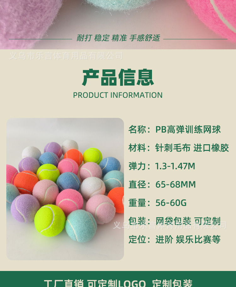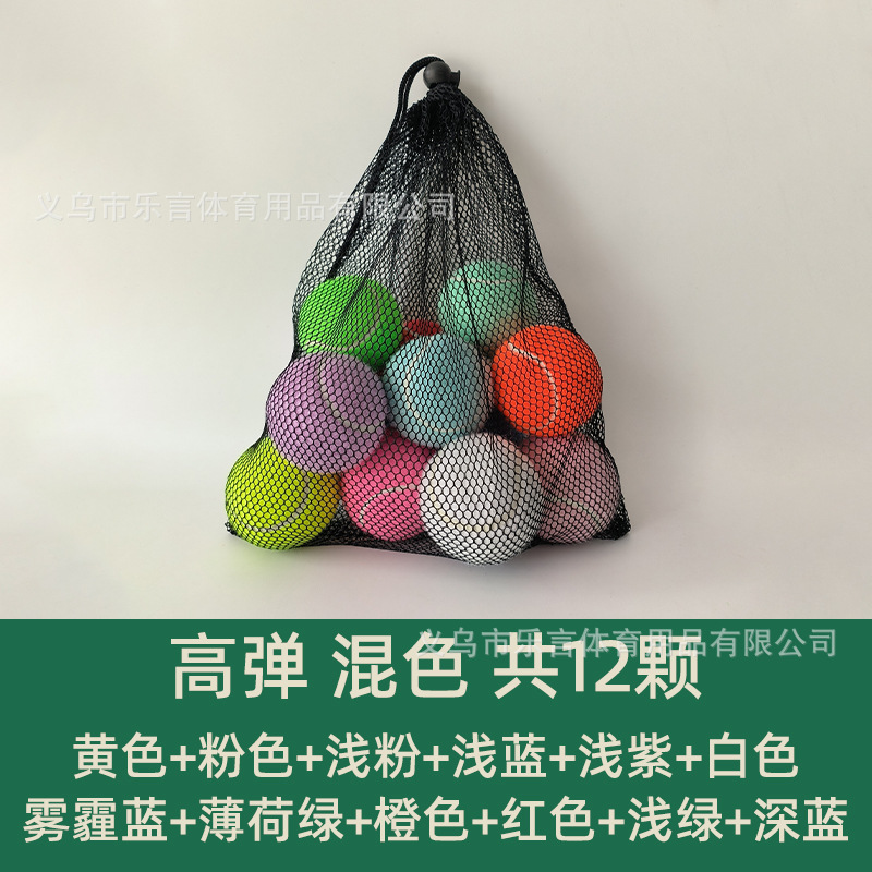 高弹网球1.35m标准训练比赛专用练习球粉色蓝色彩色宠物球网袋装