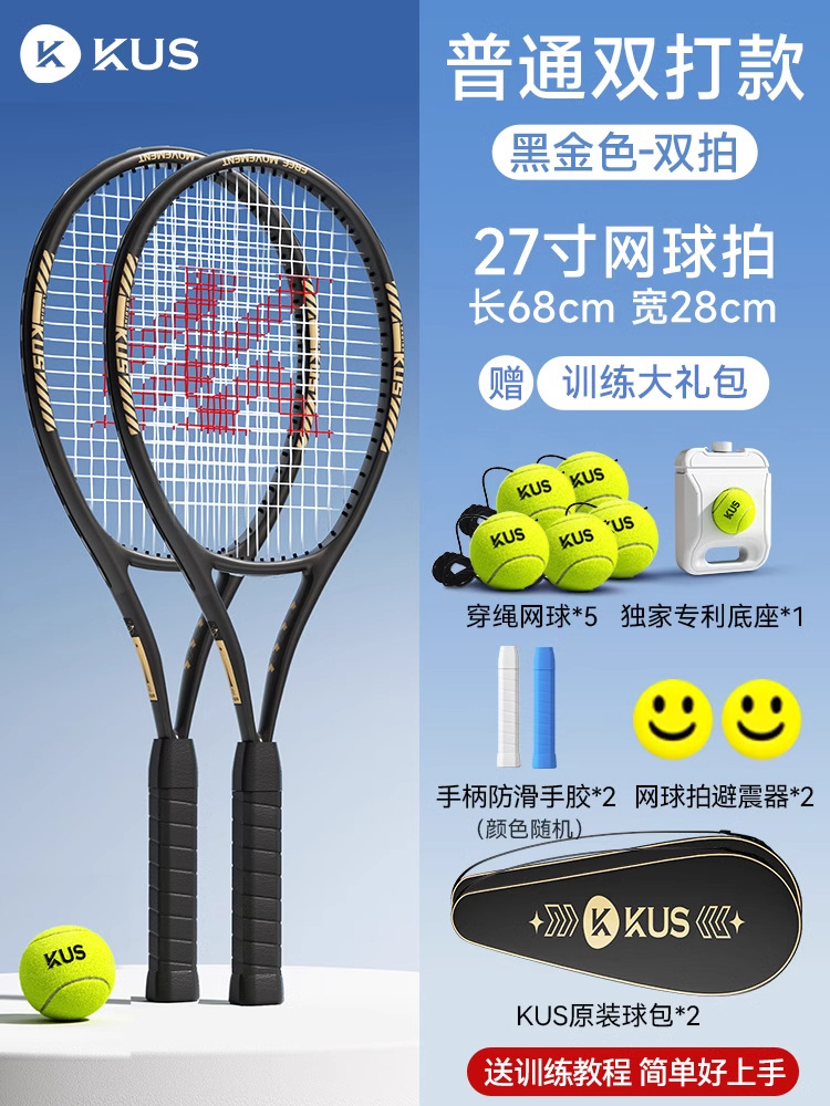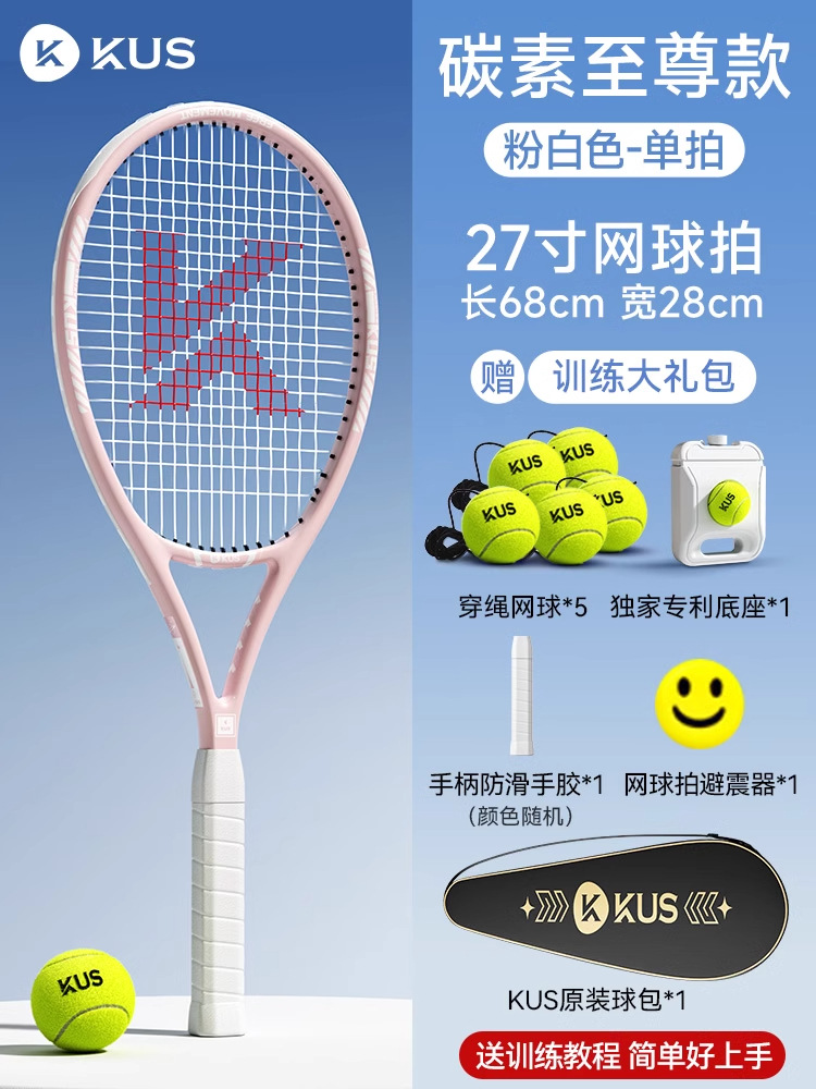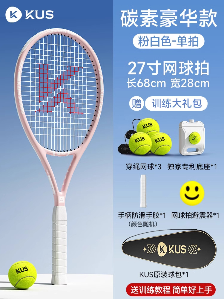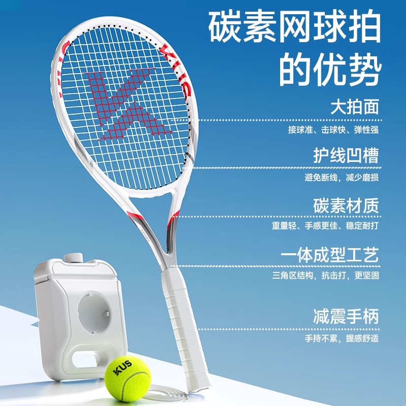 KUS碳素网球训练器打带线回弹自练神器初学者一个人的网球拍