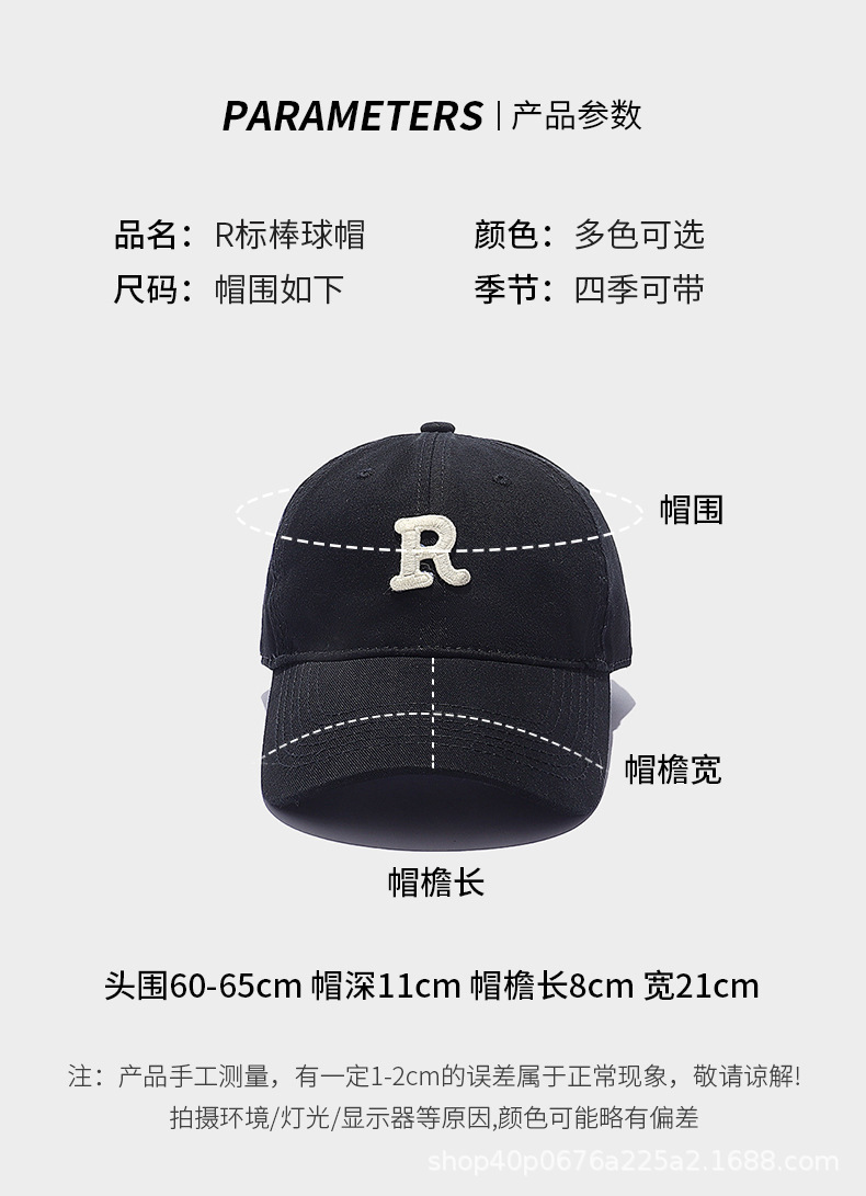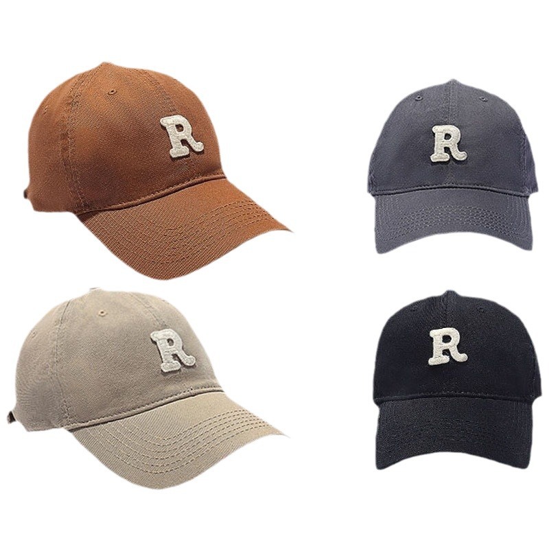 R标字母棒球帽女日系百搭显瘦显脸小韩版鸭舌帽男运动防晒遮阳帽