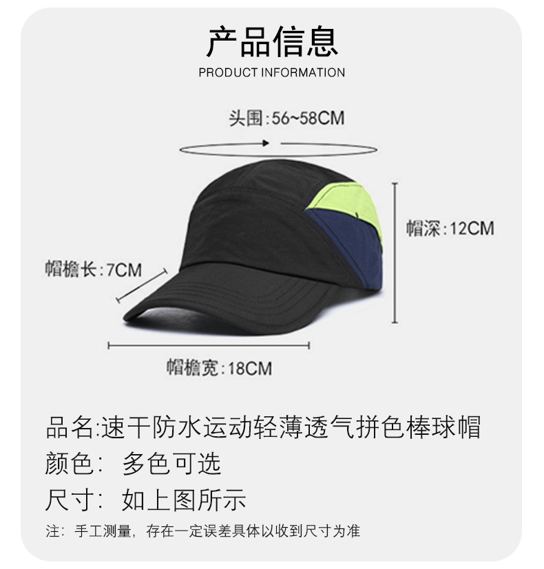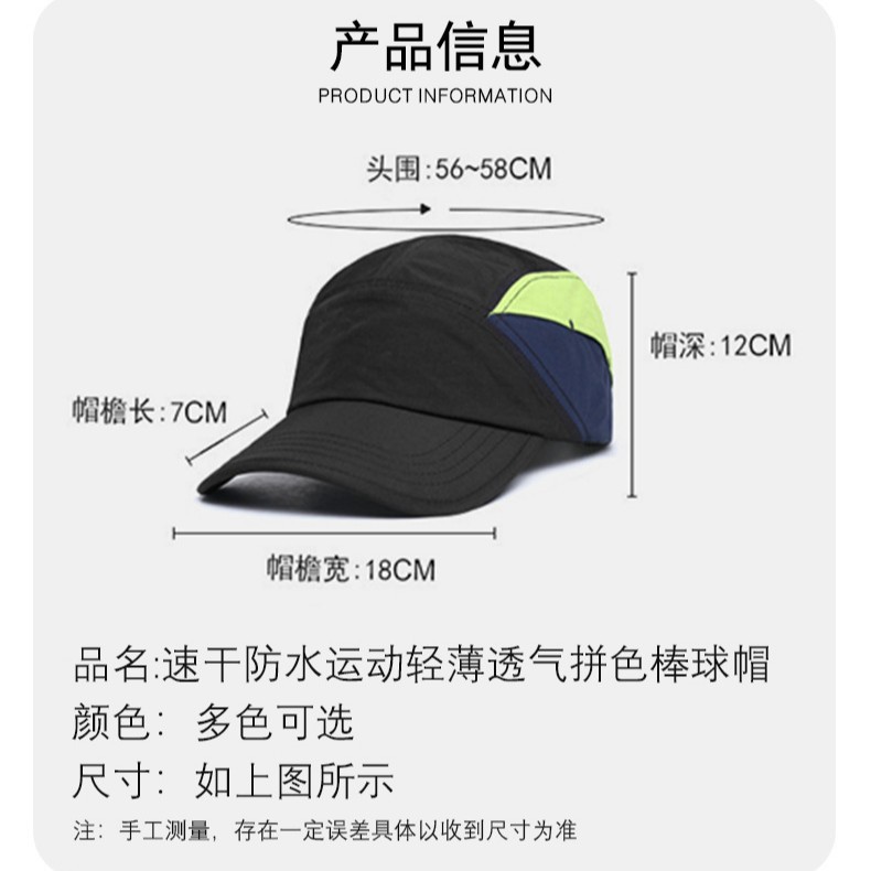速干棒球帽春夏户外运动登山帽薄款透气防水拼色帽子防晒遮阳帽