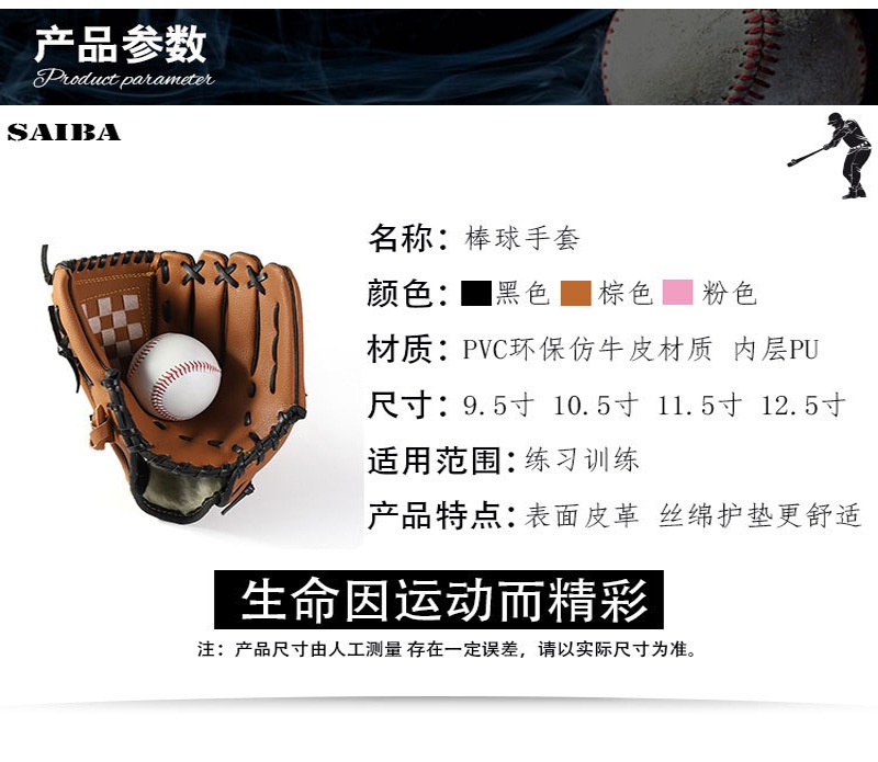 棒球手套守备手套专业棒垒球儿童少年成人接球手套团建拓展道具