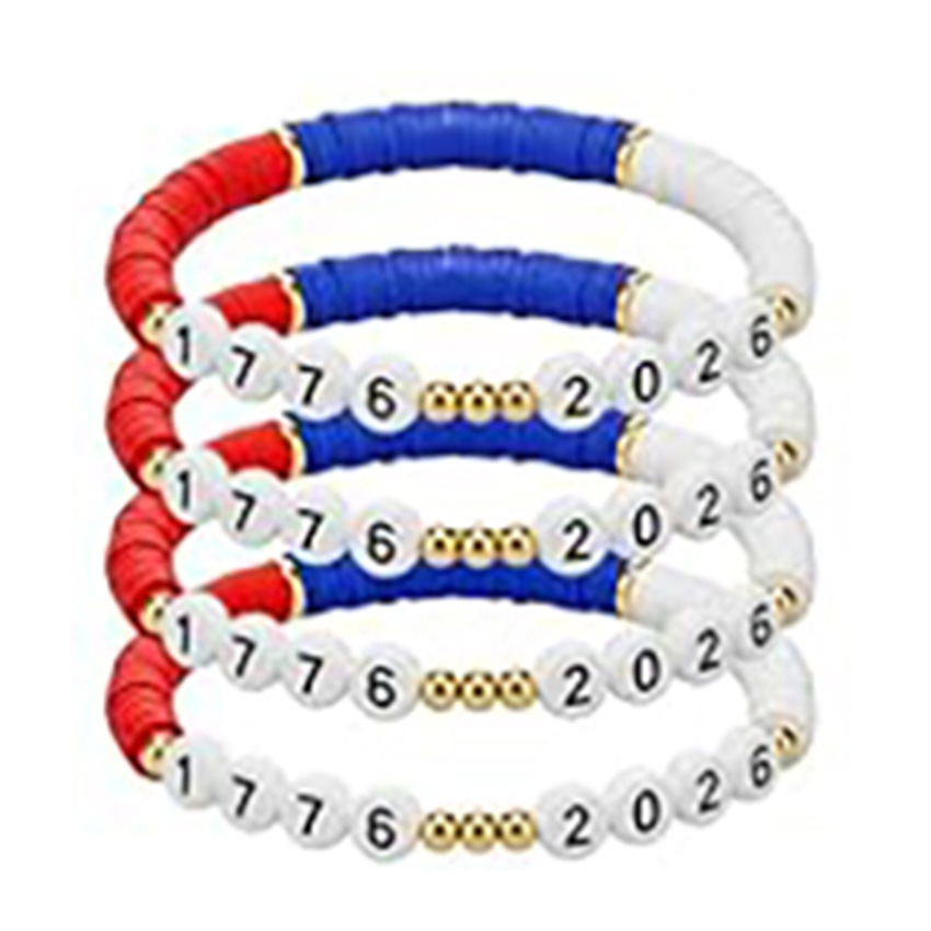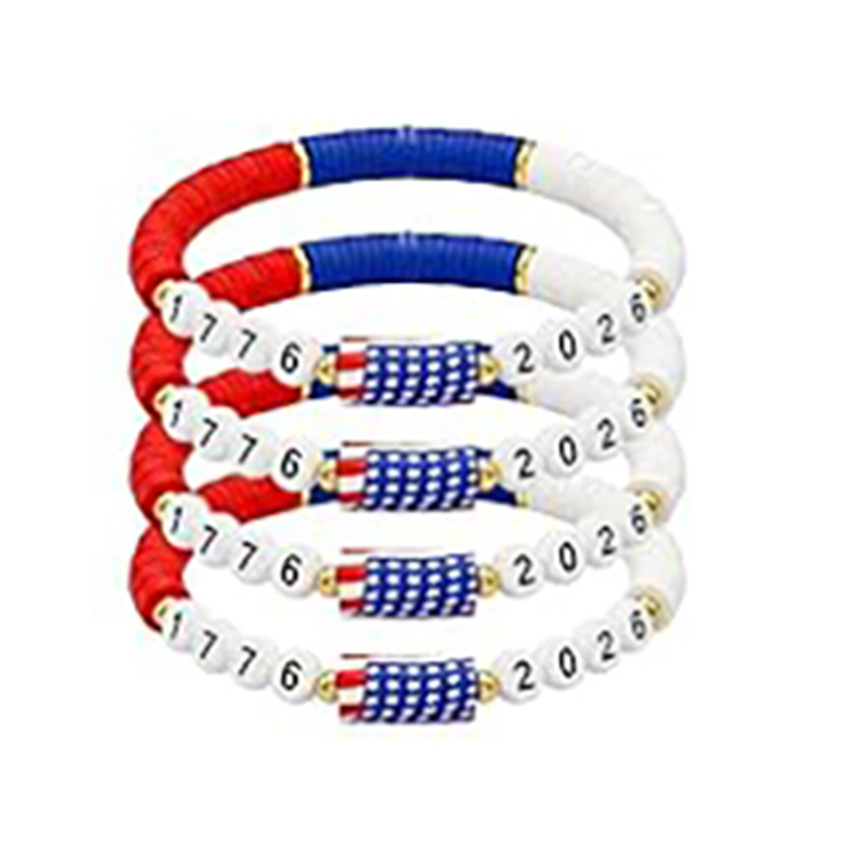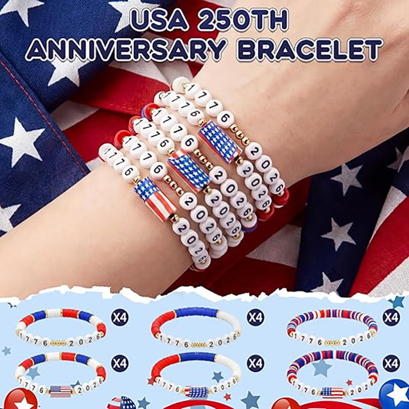 亚马逊新款美国独立日 250周年纪念冲浪风国旗串珠手链套装饰品
