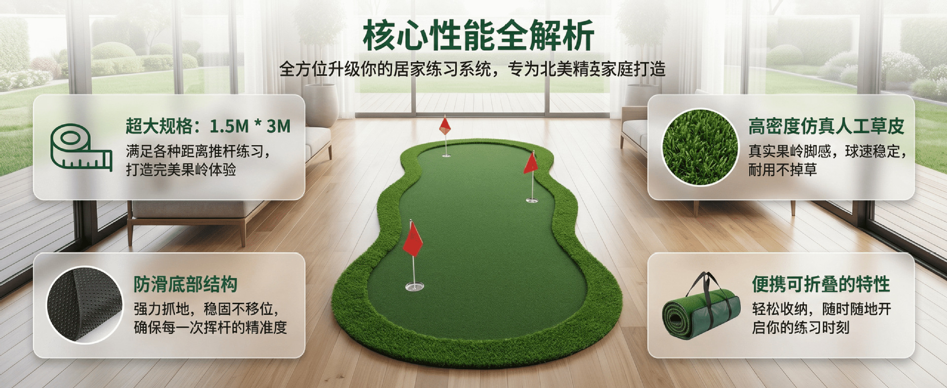 高尔夫推杆练习果岭垫 高级厚实草皮 畅享高尔夫乐趣 绿色环保