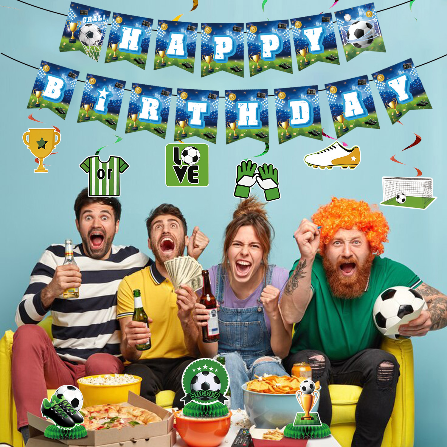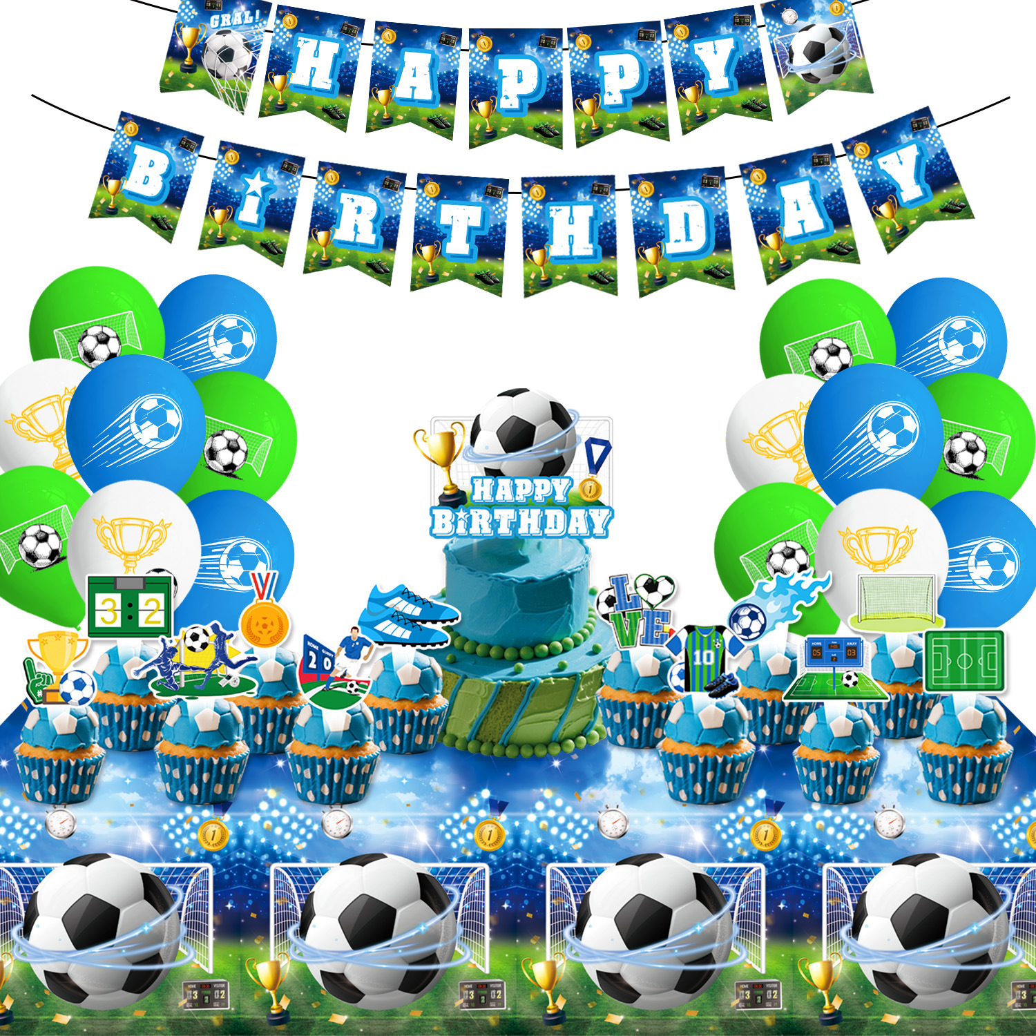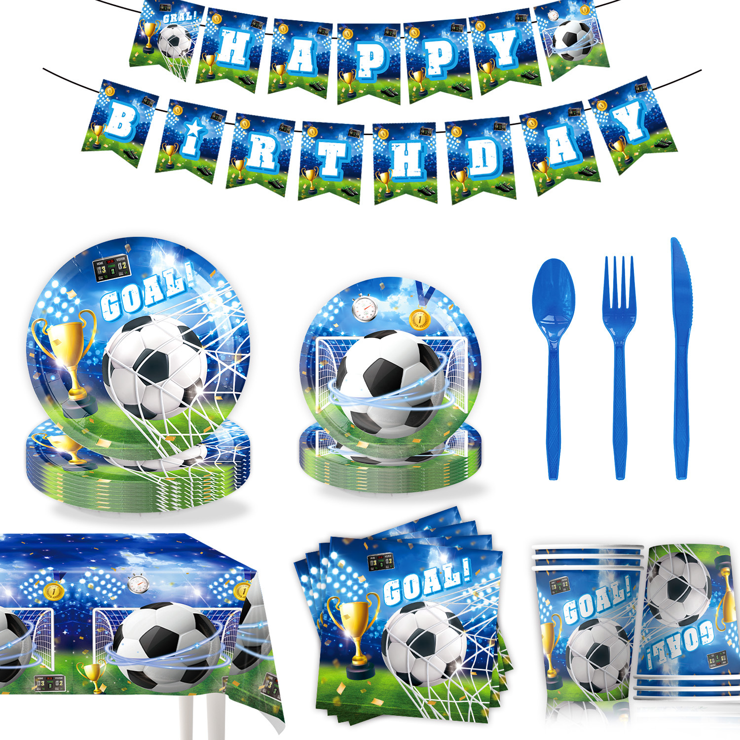 亚马逊新款蓝色足球世界杯主题男孩生日派对装饰餐具用品横幅拉旗