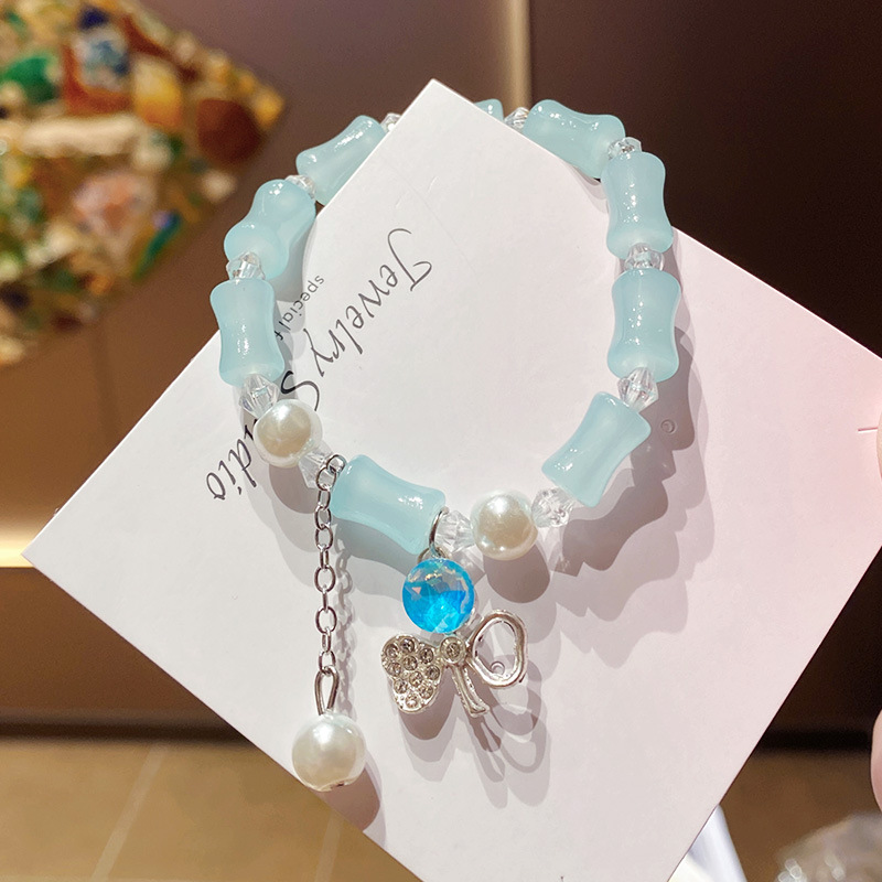 新款轻奢小众竹节镶钻四叶草手链摆摊学生创业小众精致小饰品批发