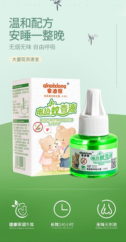 亲迪熊蚊香液艾草驱蚊液无味小兜象驱蚊防蚊液加热器电蚊香液代发