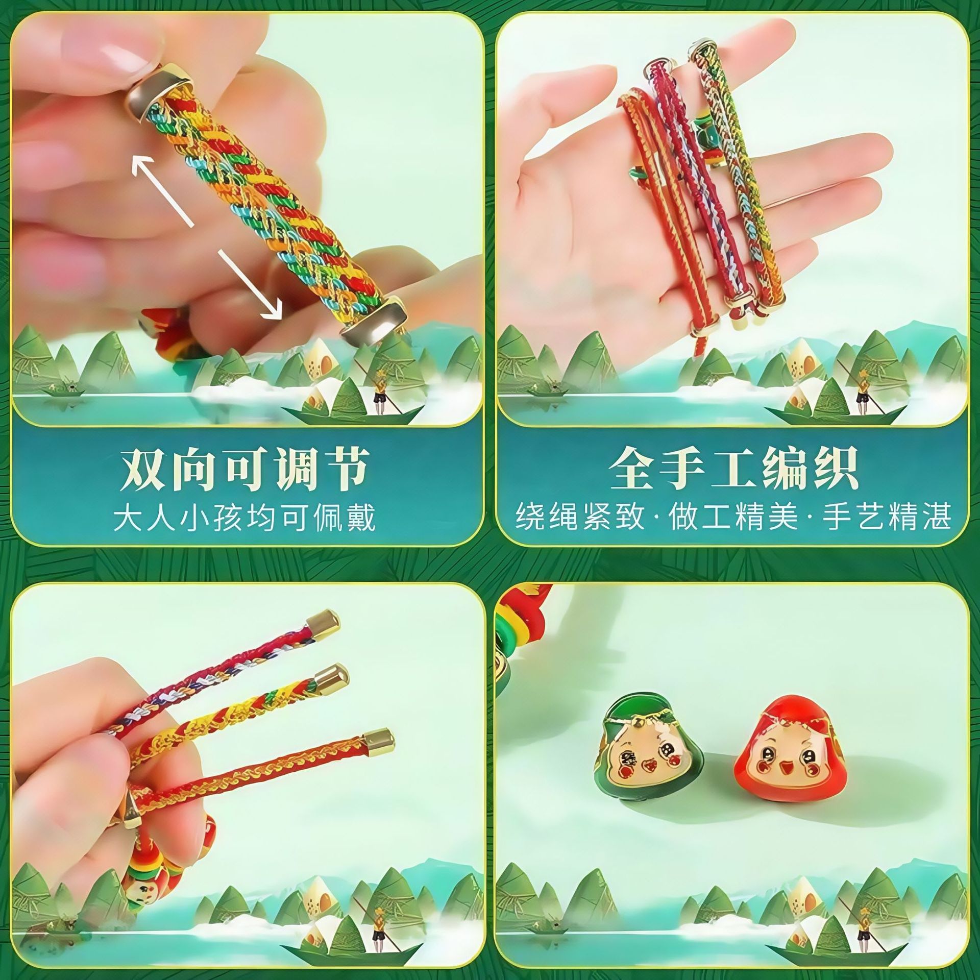 厂家直销新款端午节手绳手工编情侣款编织手链红绳端午五彩绳批货