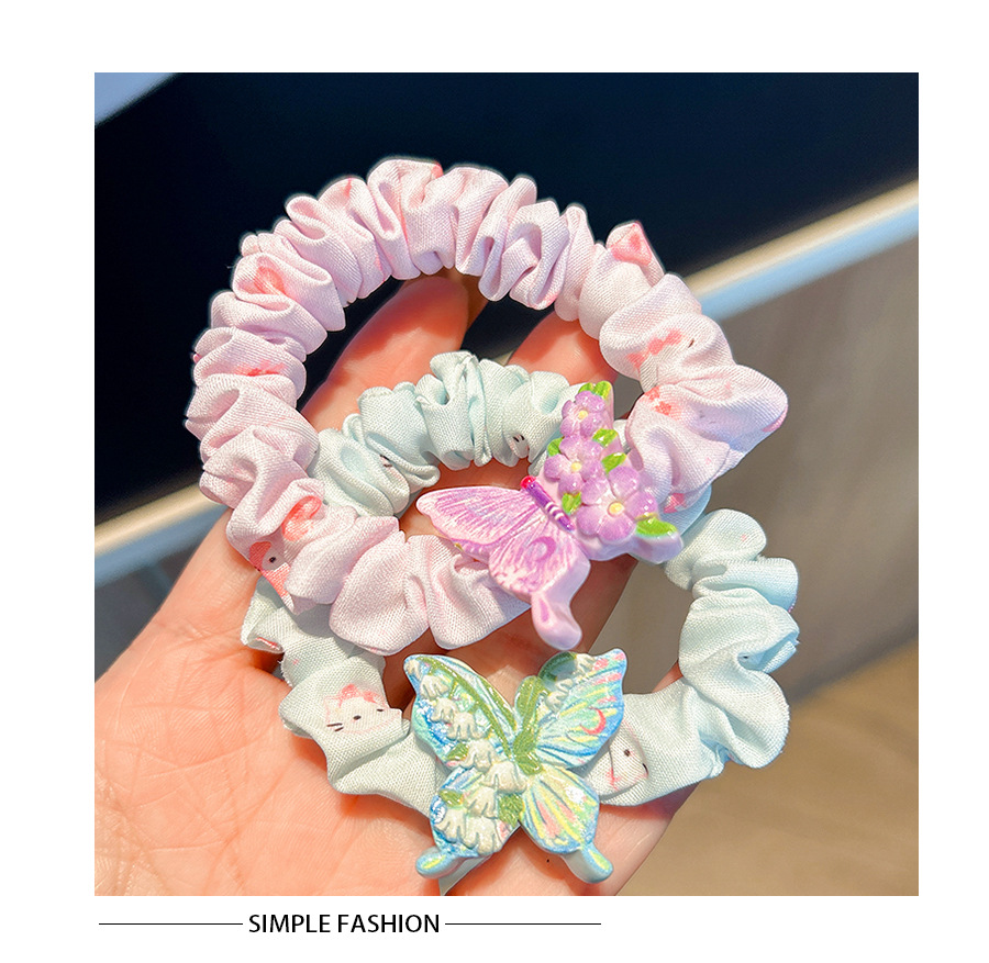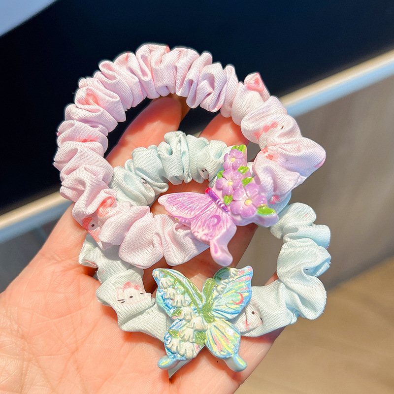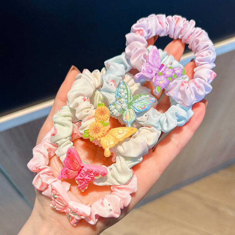 可爱卡通彩色蝴蝶小肠圈萌萌发绳甜美少女心马尾皮筋发饰头饰