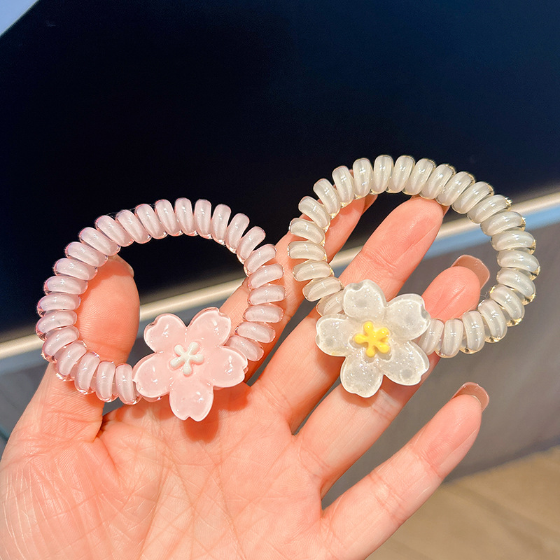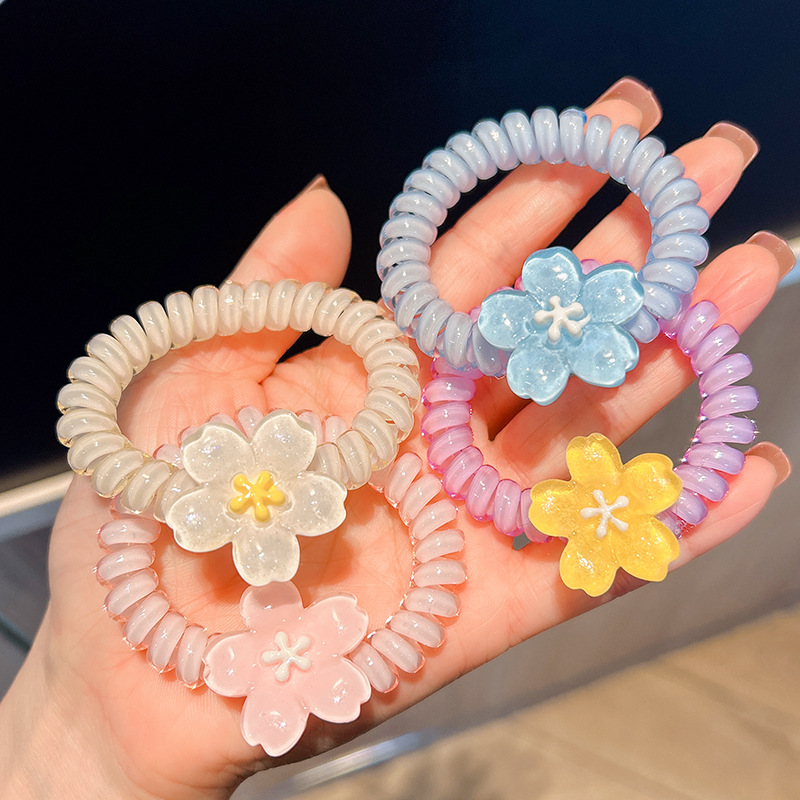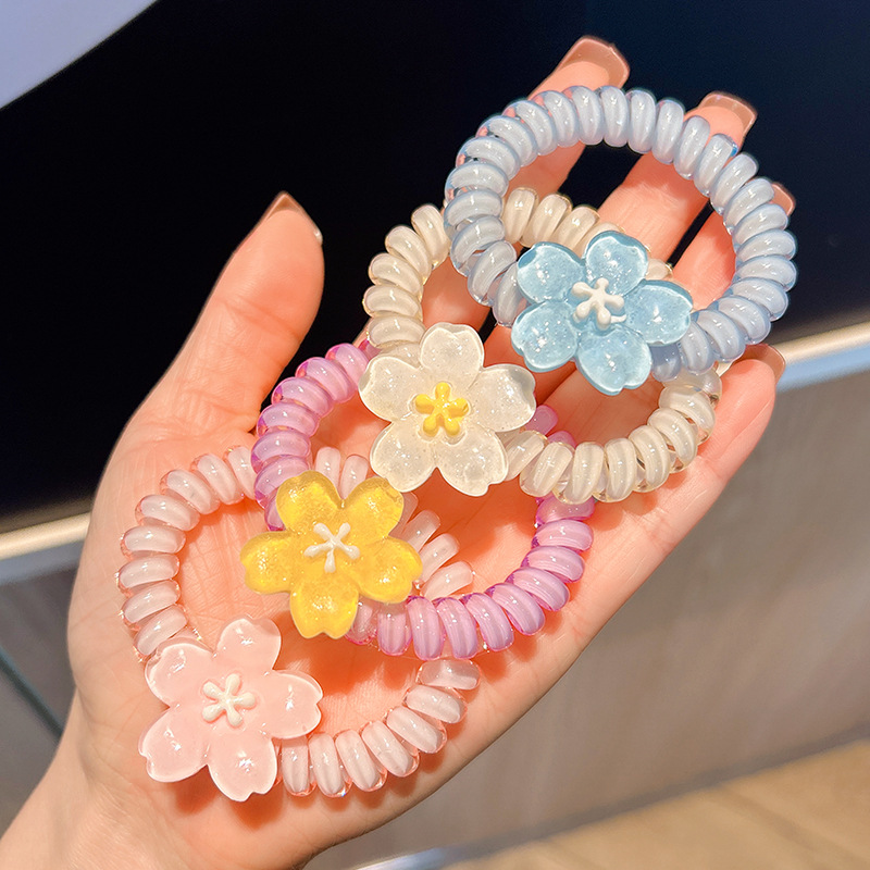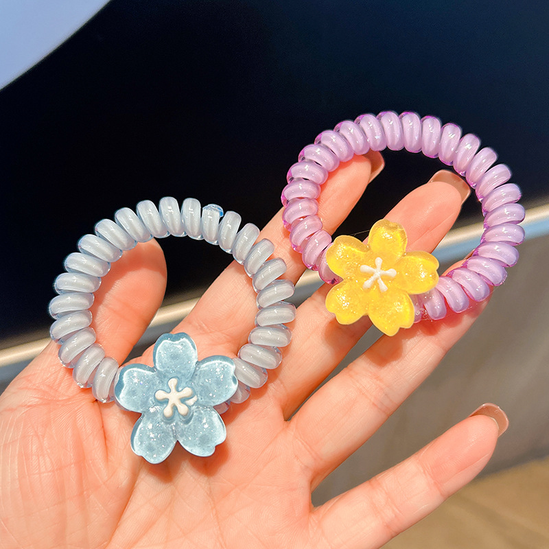 韩系小清新果冻色花朵可爱电话线发圈甜美软萌少女扎头发绳饰品女