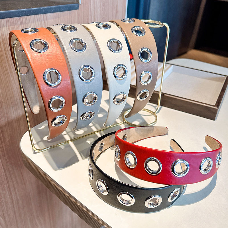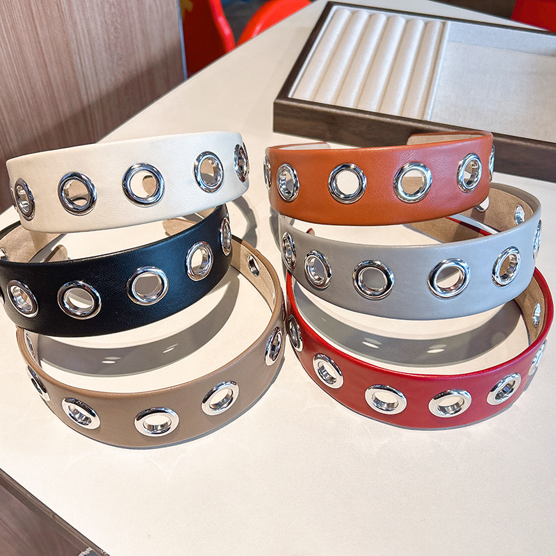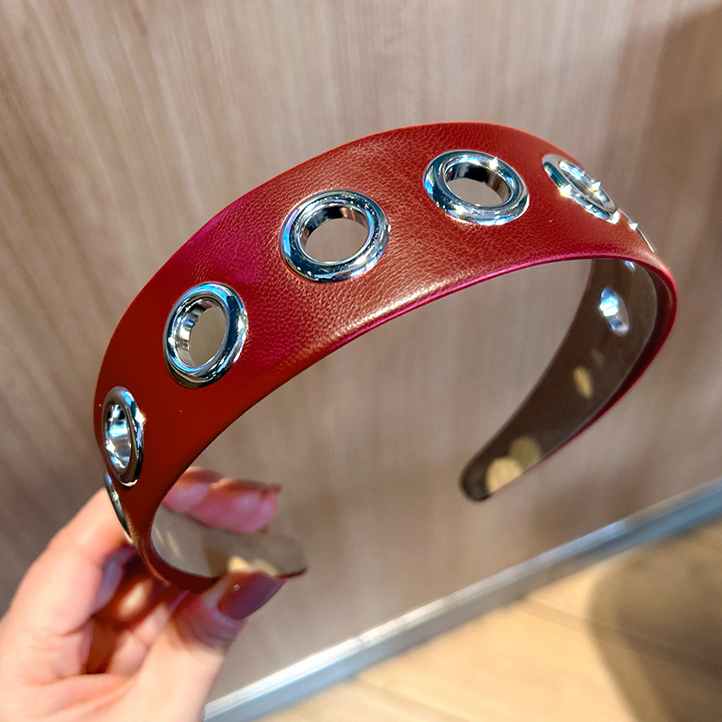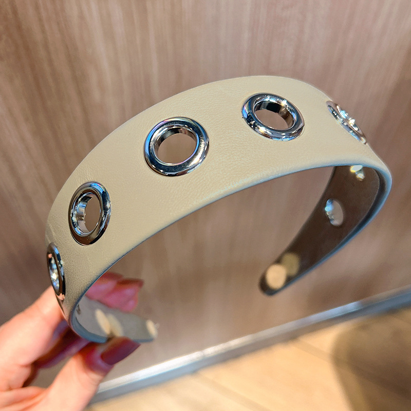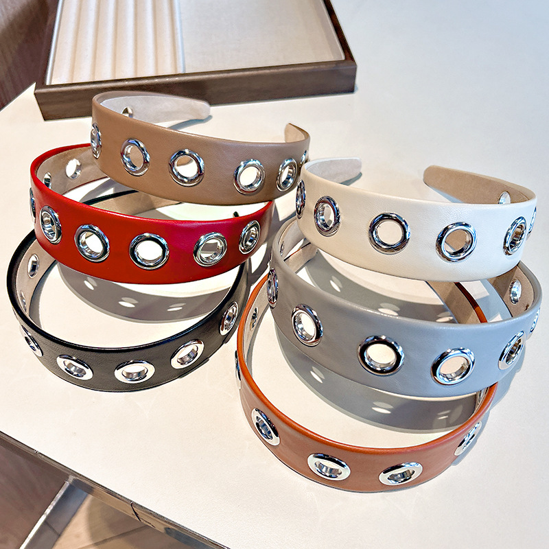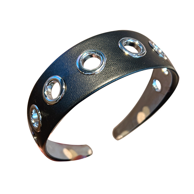 跨境2026个性宽边皮质发箍朋克风简约镂空金属头箍压发发饰头饰