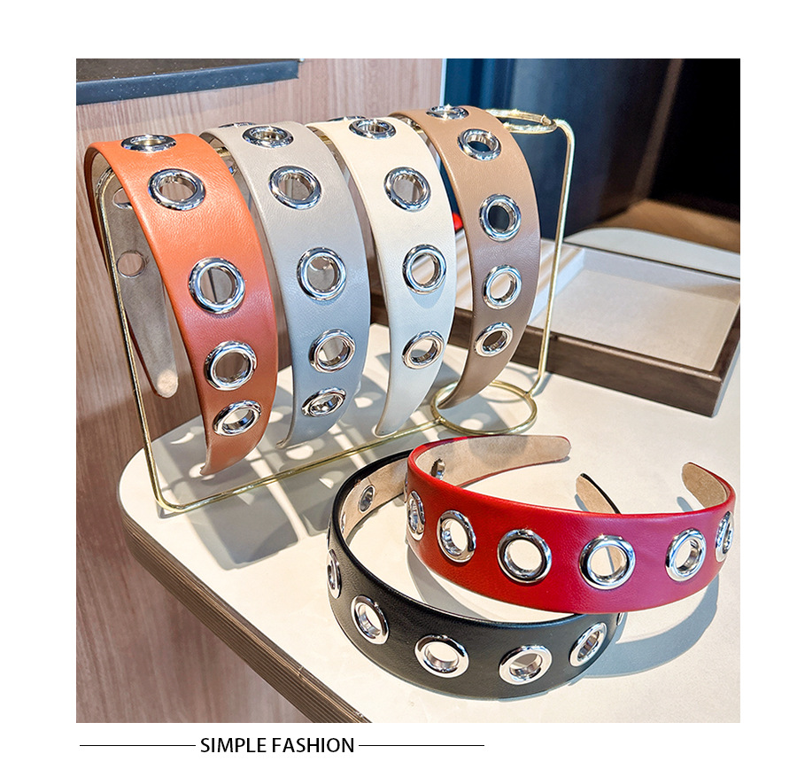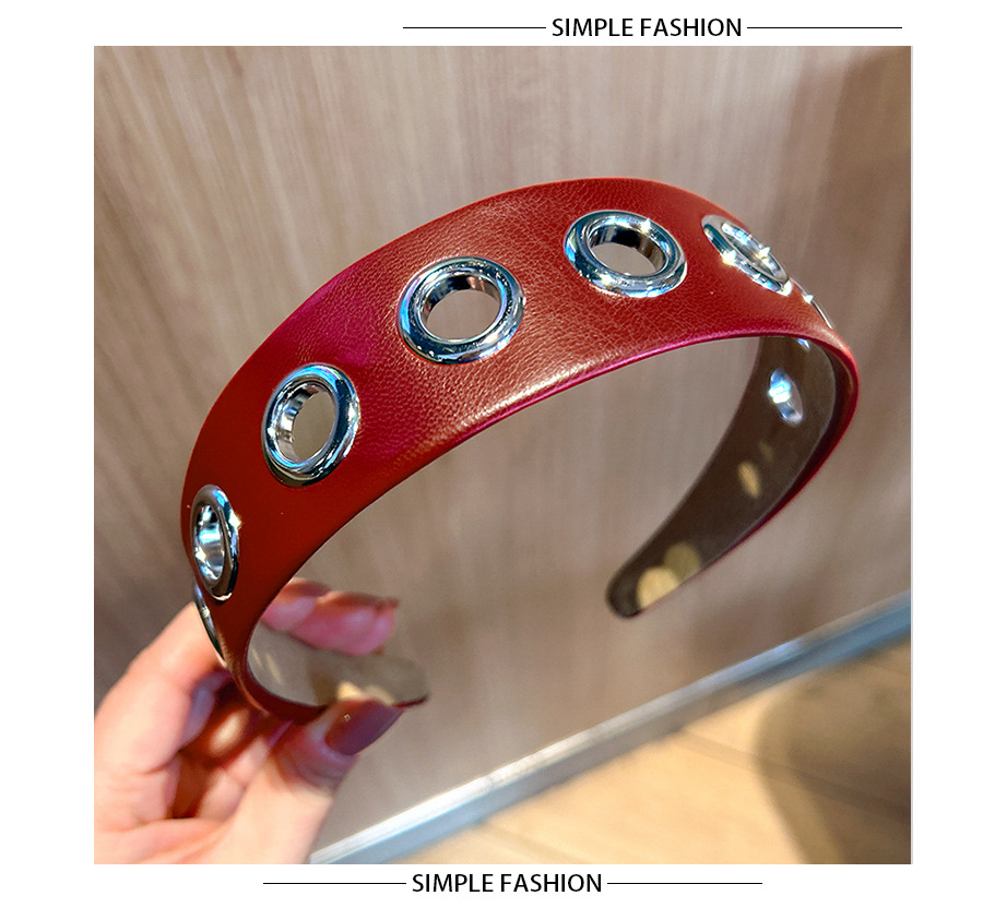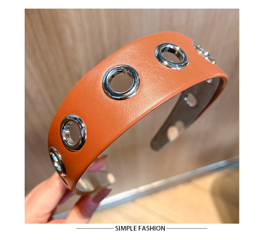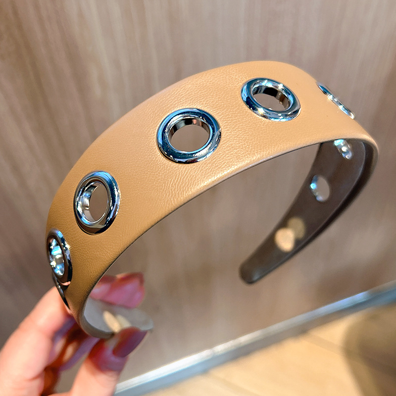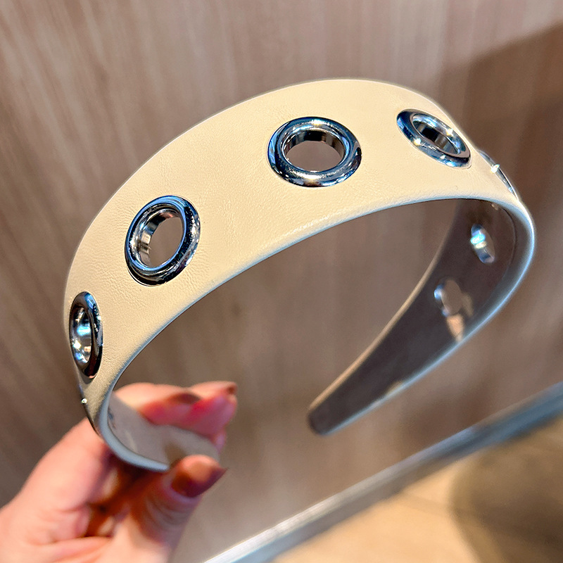 跨境2026个性宽边皮质发箍朋克风简约镂空金属头箍压发发饰头饰