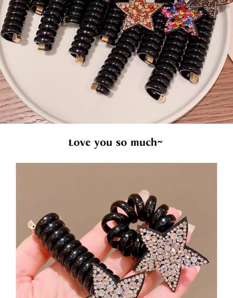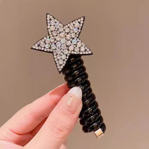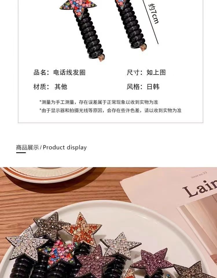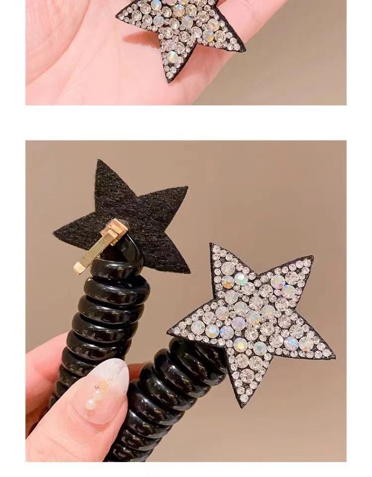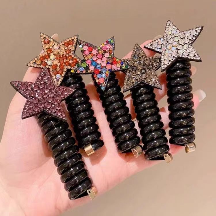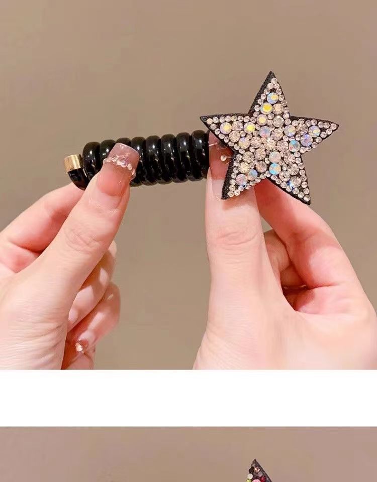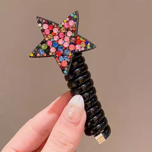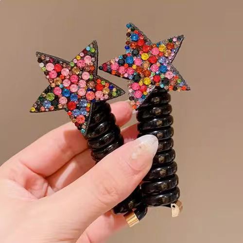 儿童水钻网红星星束发电话线发圈不伤发头绳女孩五角星发饰头饰女