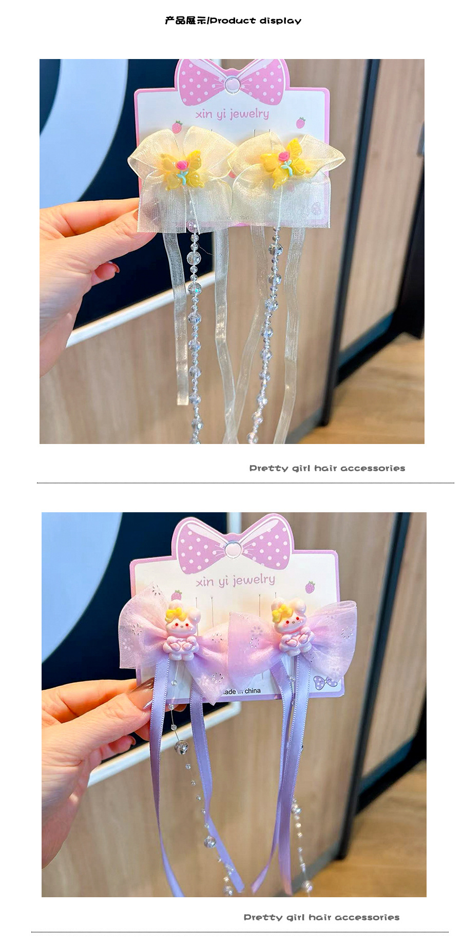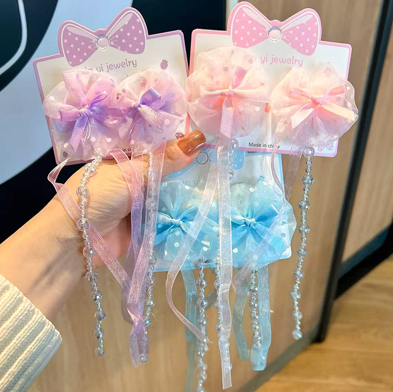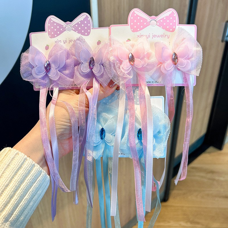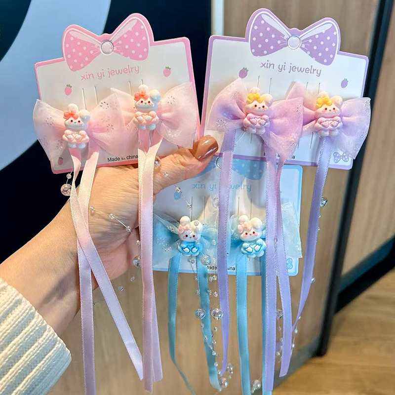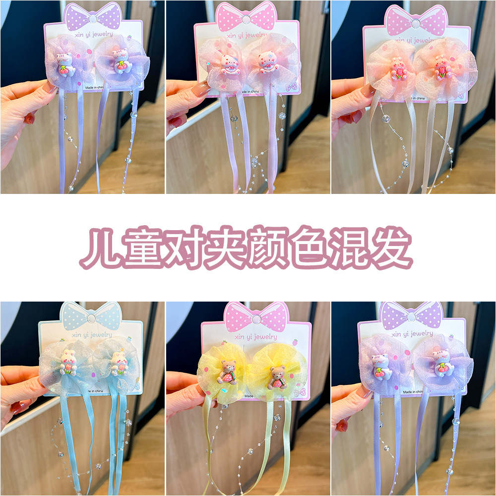 新款汉服超仙发夹女儿童发饰古风蝴蝶结流苏珍珠女童发夹甜美对夹
