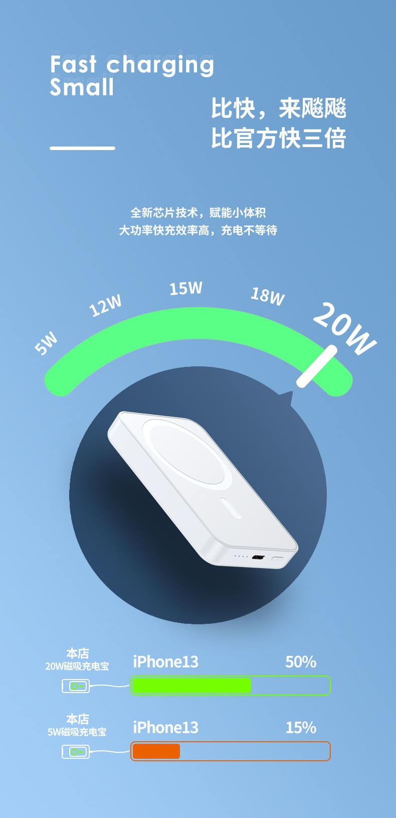 MagSafe无线3C迷你磁吸充电宝快充小巧便携礼品定制LOGO移动电源