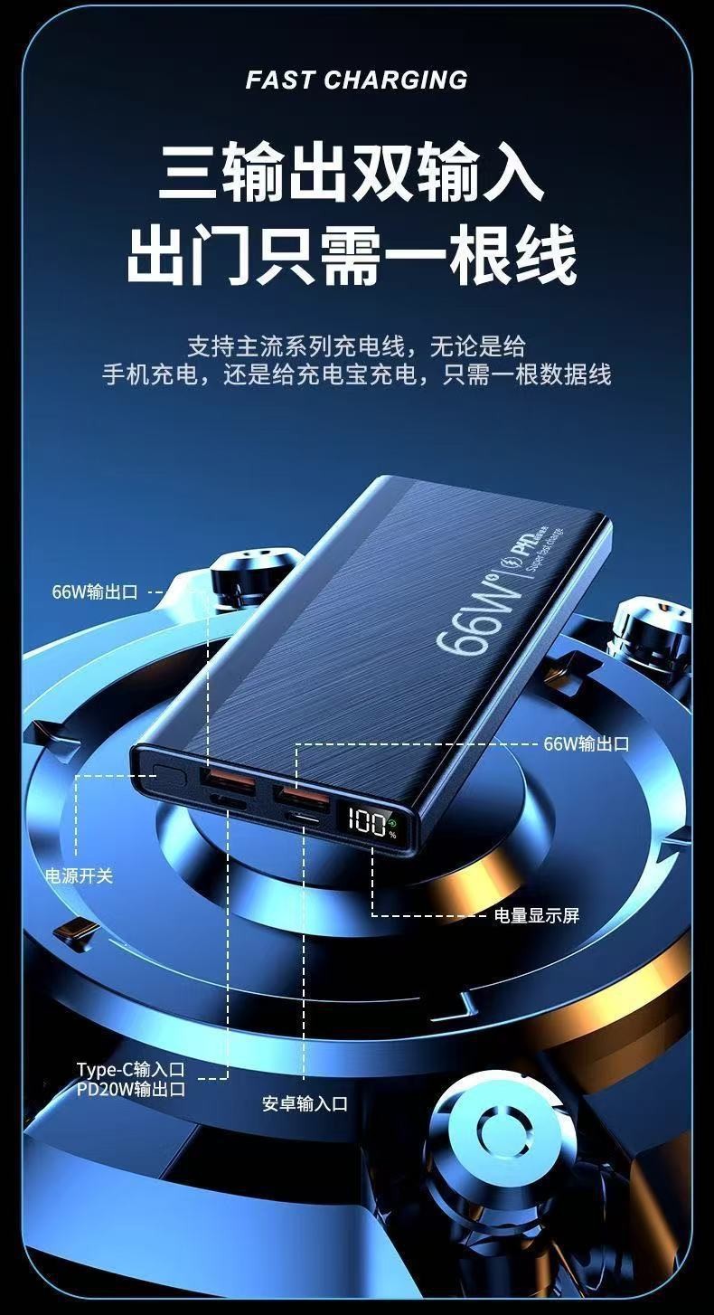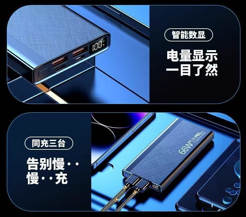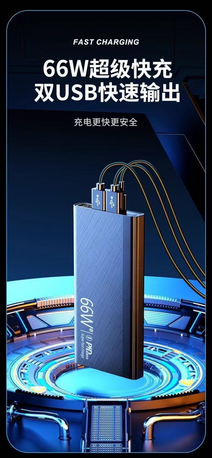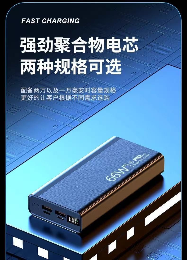 新款3C认证66W超级快充20000毫安大容量任何手机通用移动电源批发