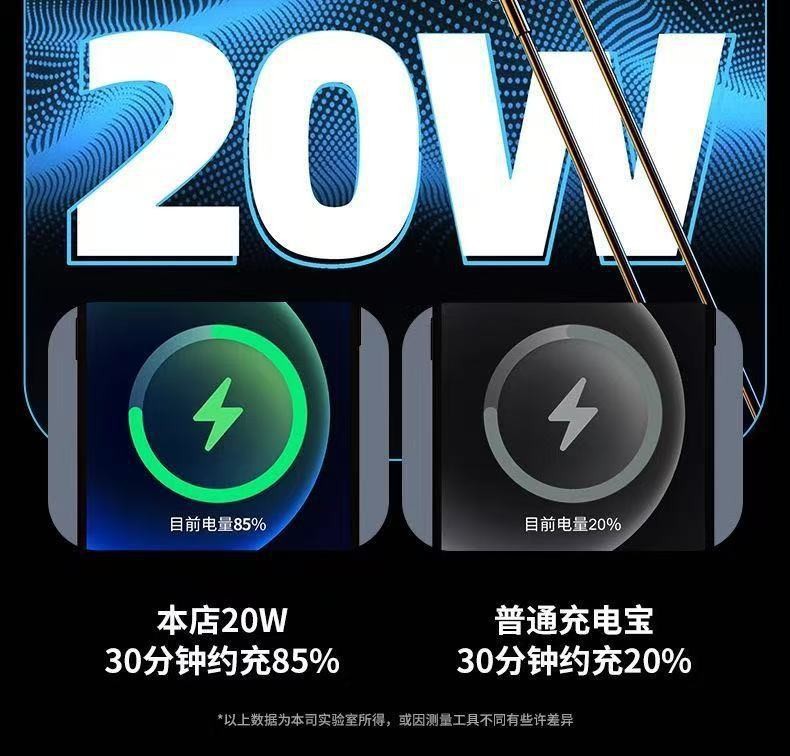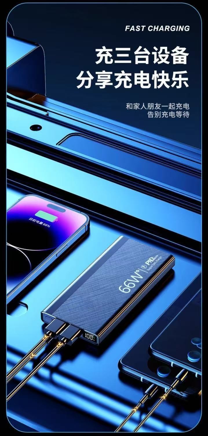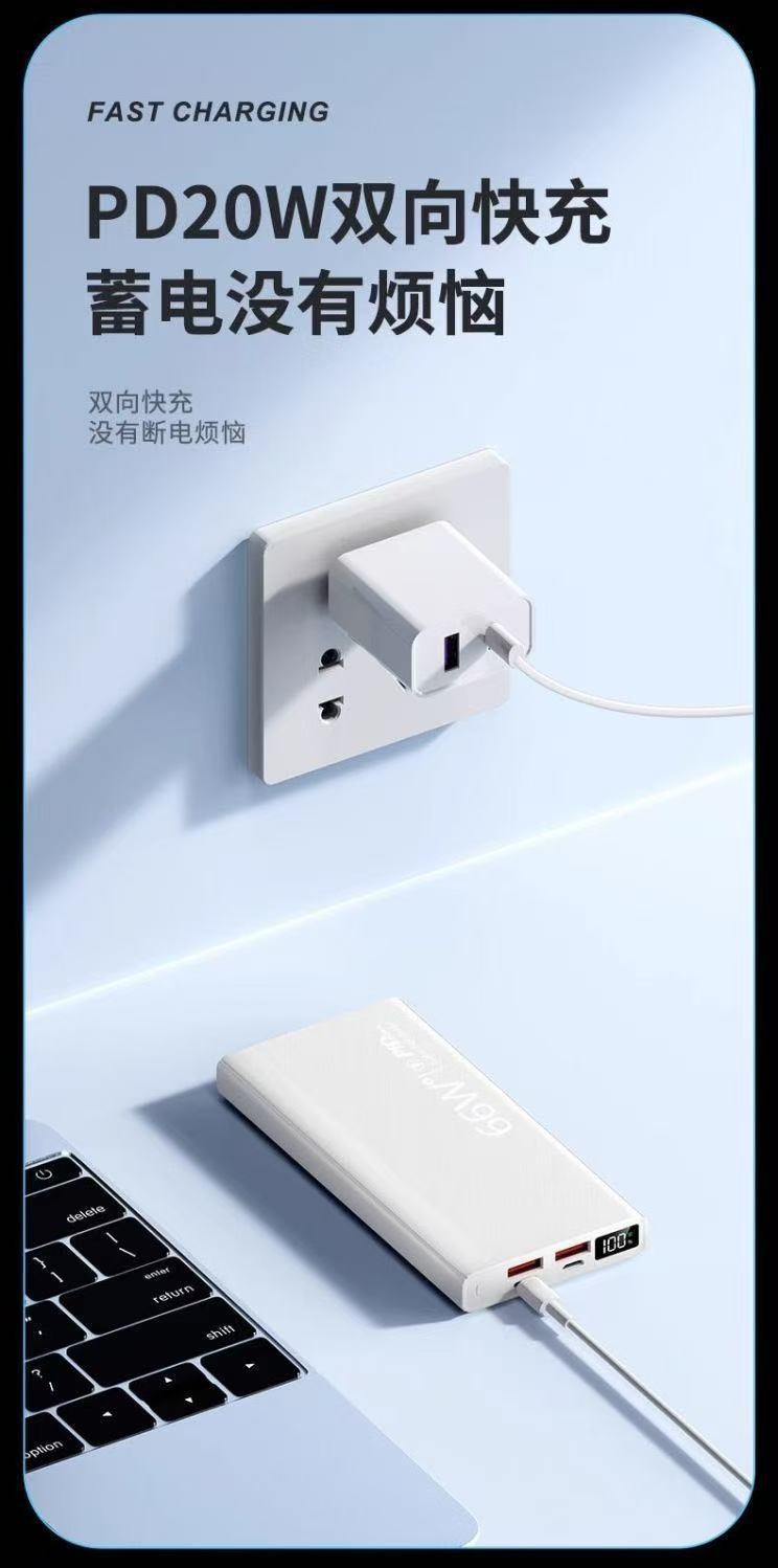 新款3C认证66W超级快充20000毫安大容量任何手机通用移动电源批发