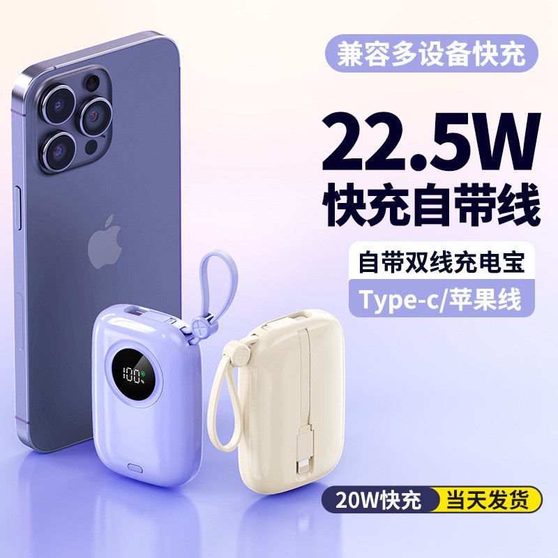 批发新款快充充电宝带线20000毫安小巧便携移动电源礼品定制logo