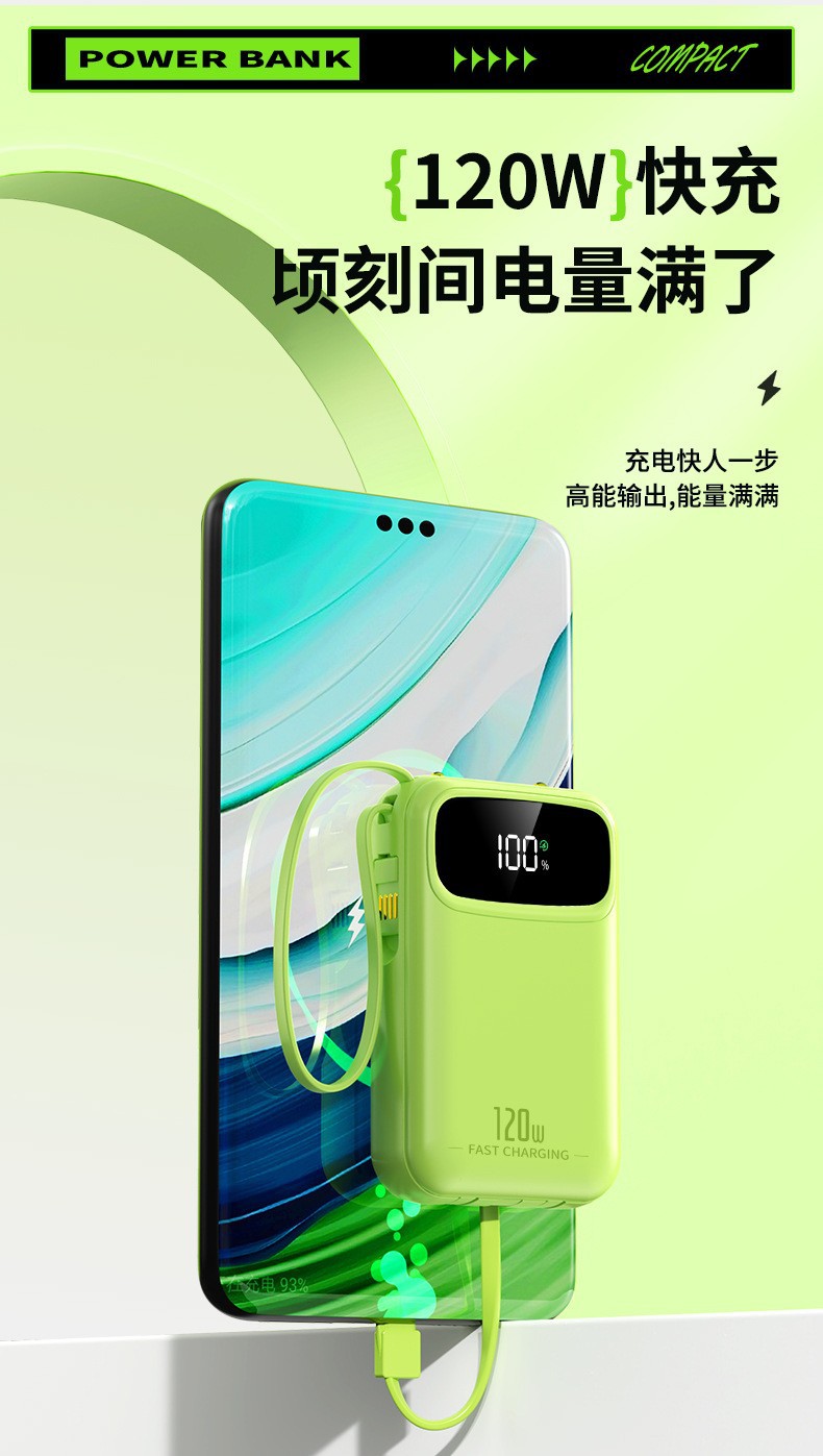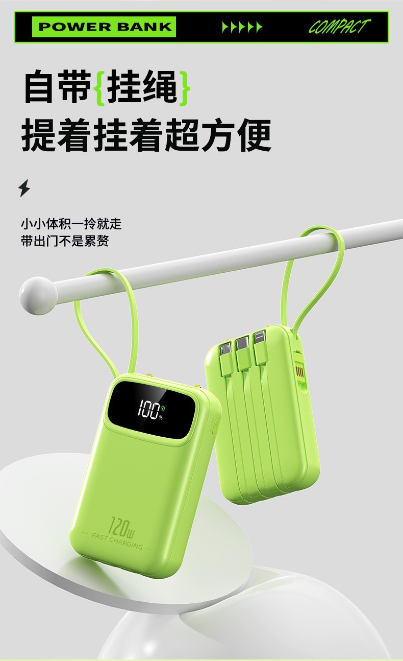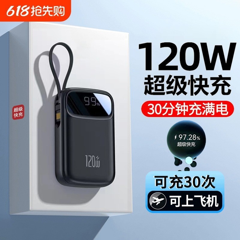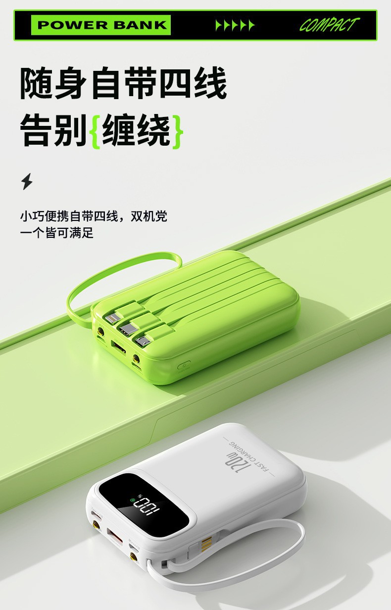 充电宝超级快充带四线小巧便携移动电源礼品定制LOGO跨境专供批发