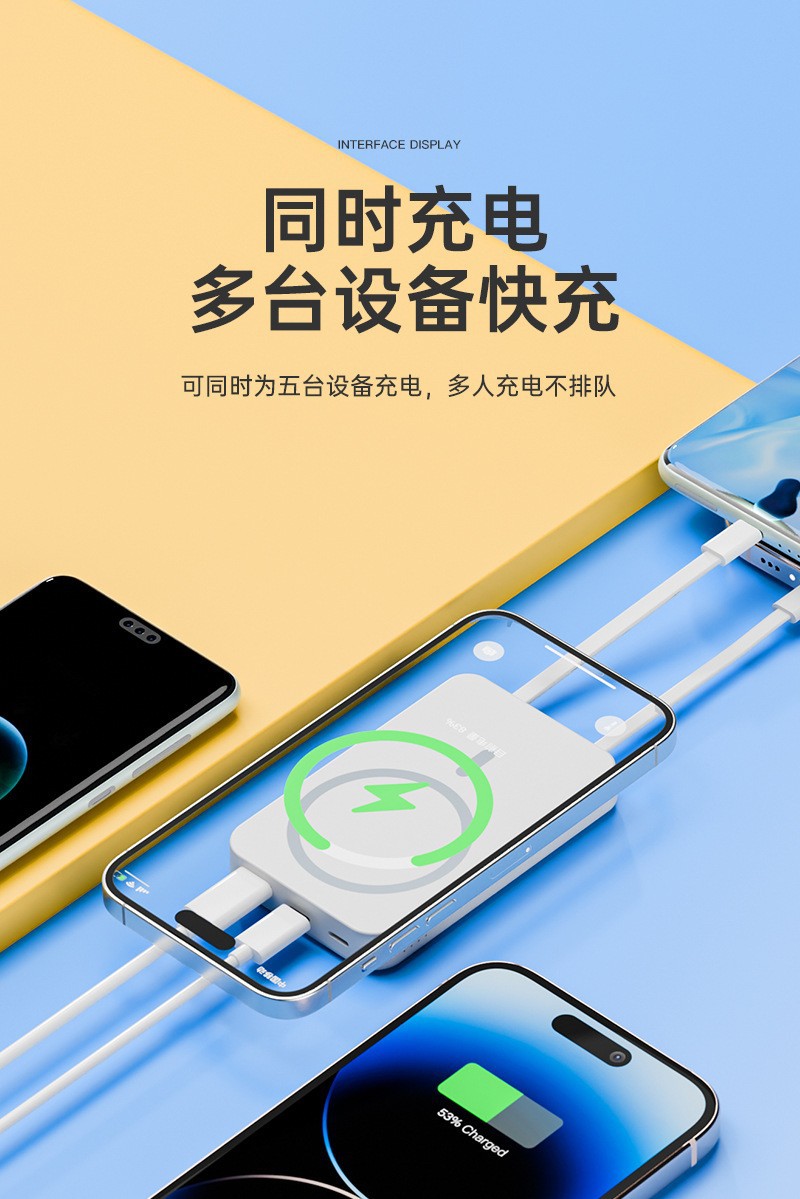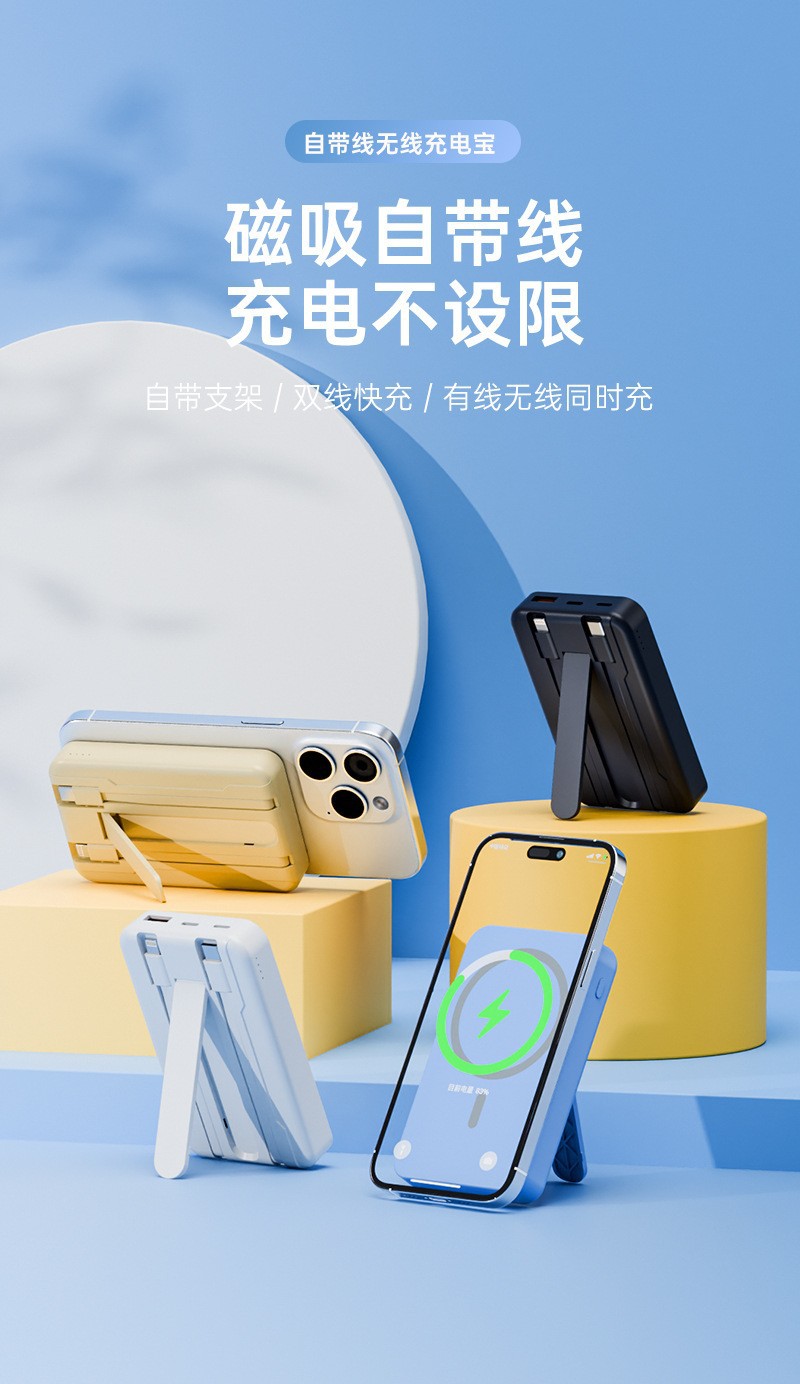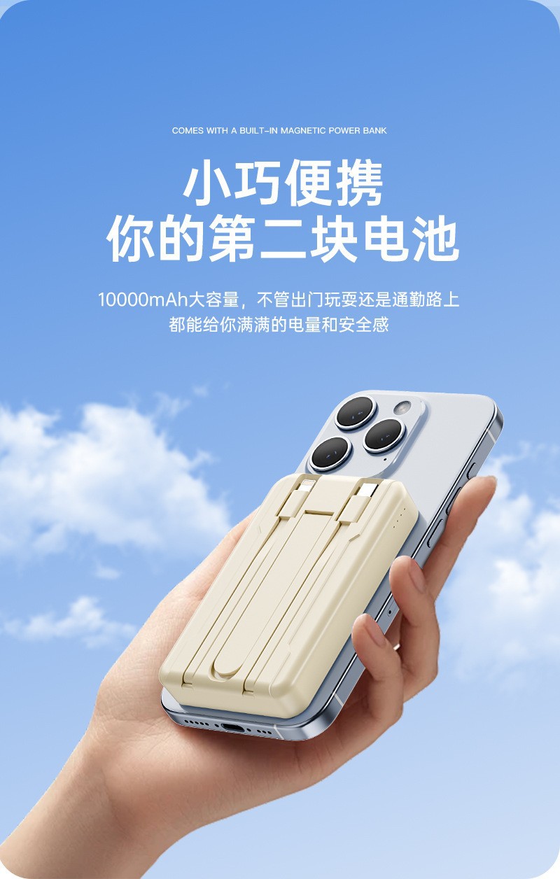MagSafe磁吸自带线充电宝3C认证超级快充三合一小巧便携移动电源
