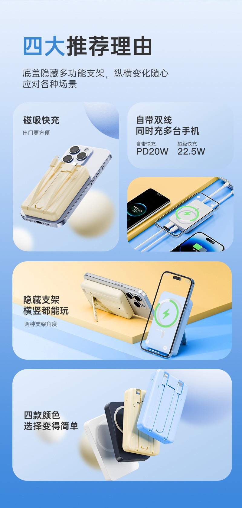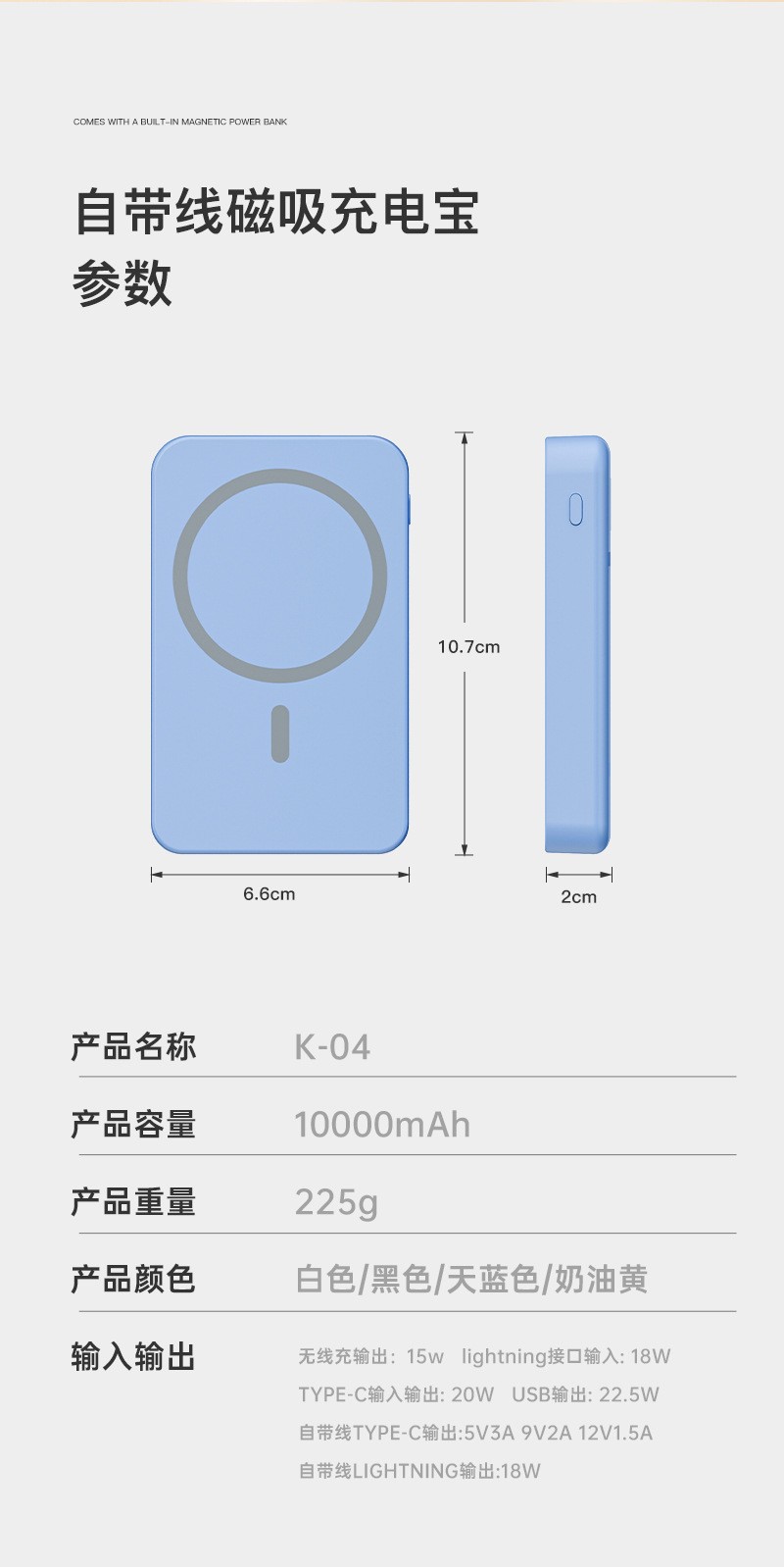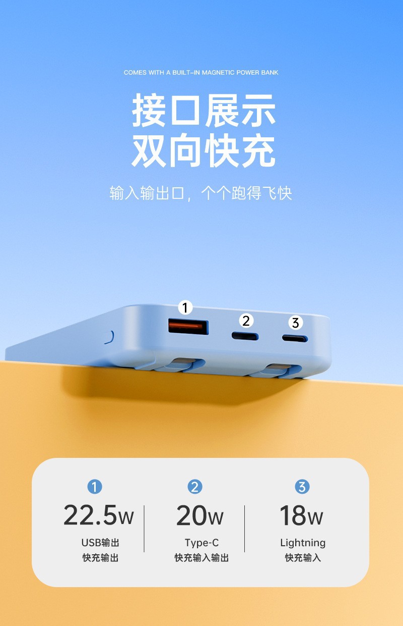 MagSafe磁吸自带线充电宝3C认证超级快充三合一小巧便携移动电源