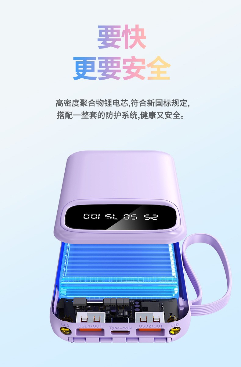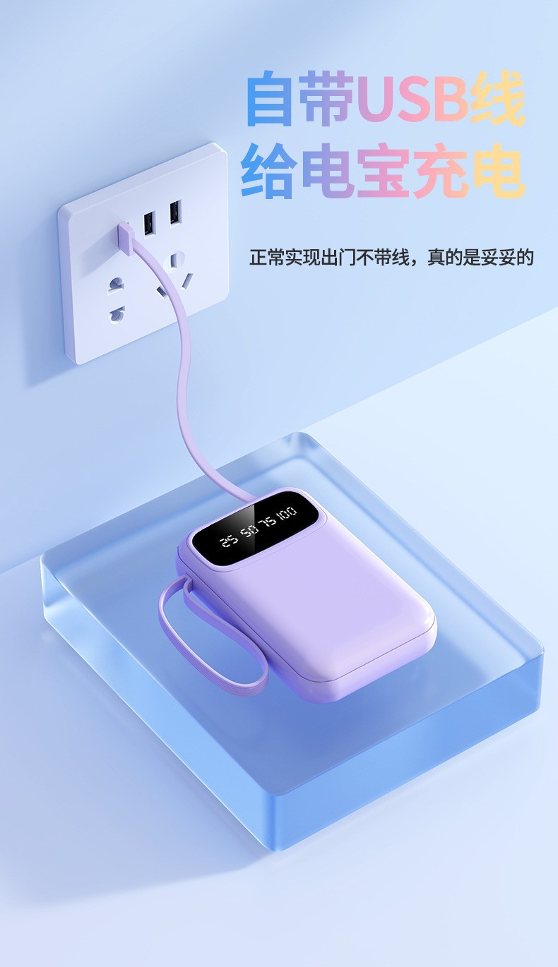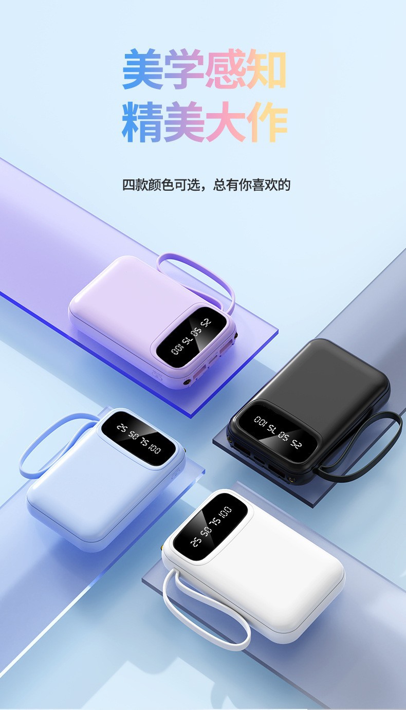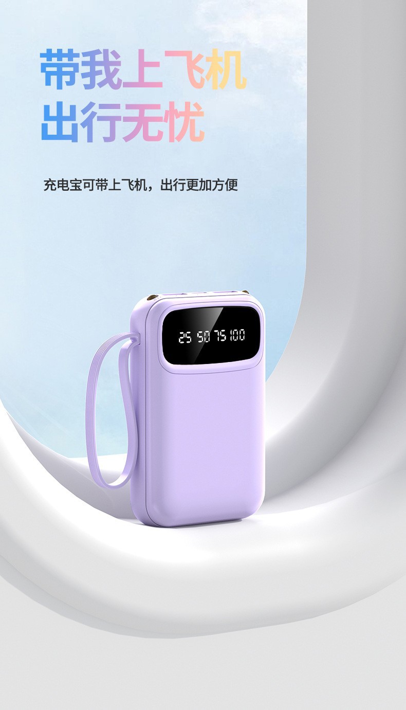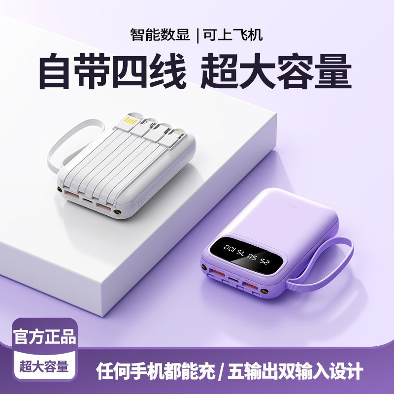 大容量自带线充电宝20000毫安便携手机移动电源礼品定制logo批发