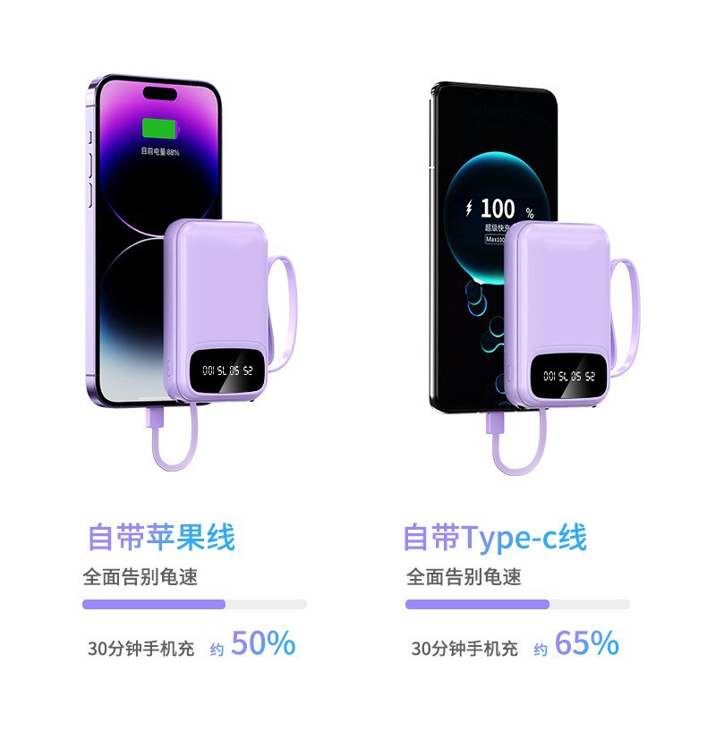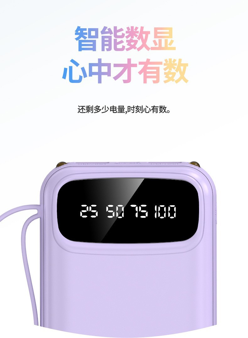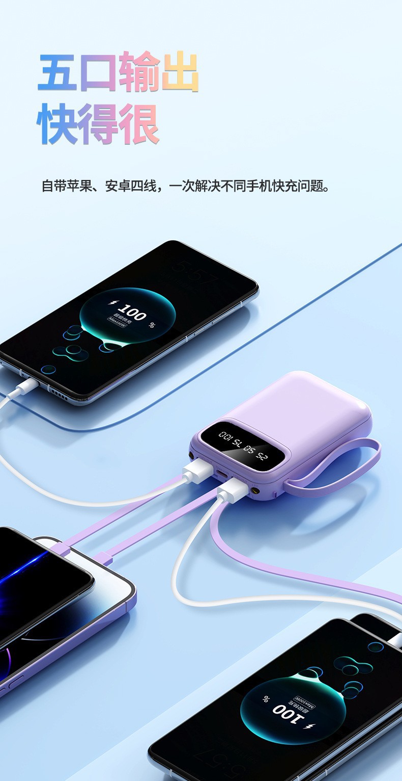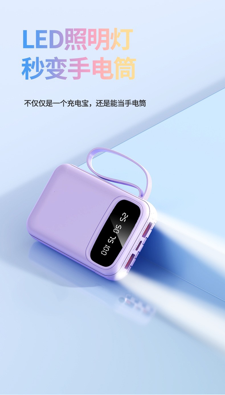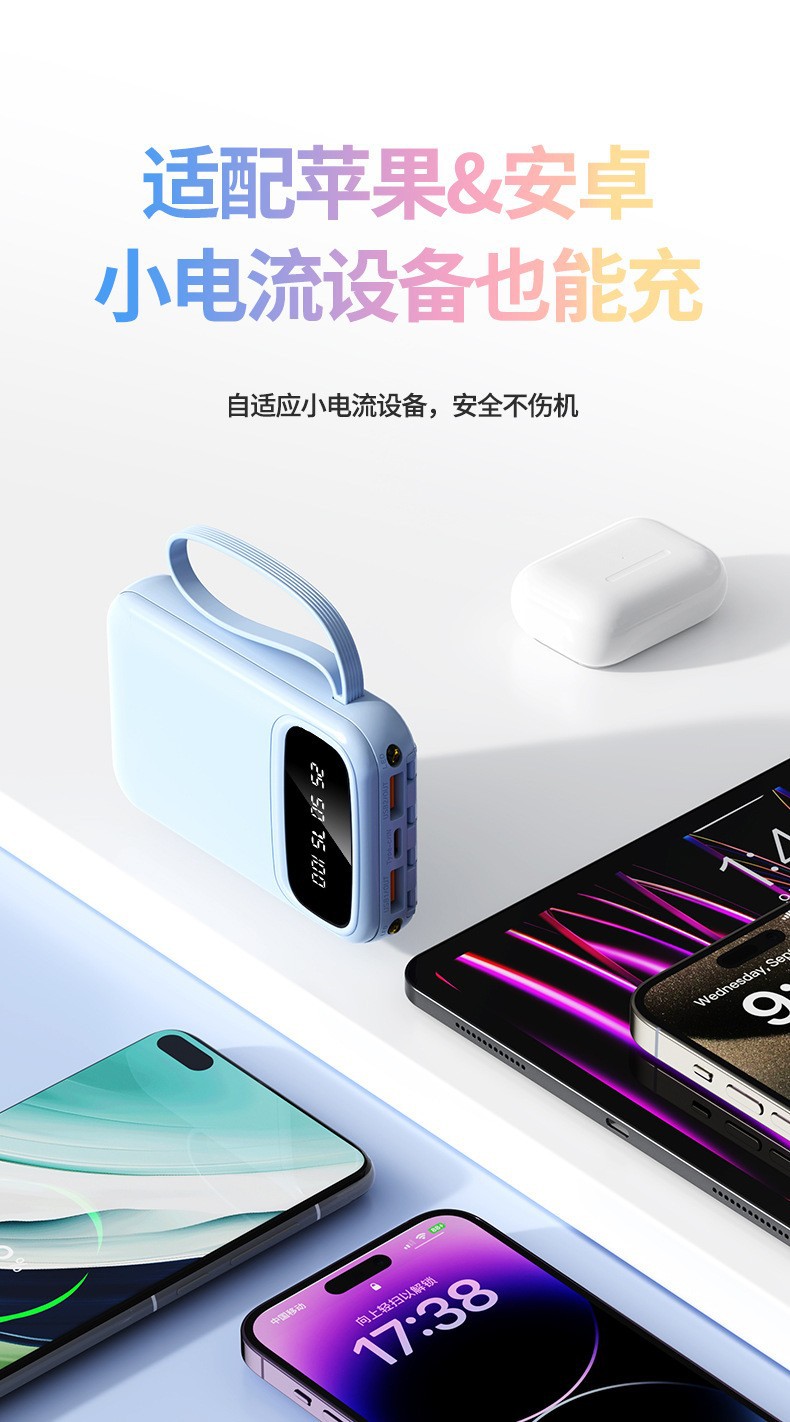 大容量自带线充电宝20000毫安便携手机移动电源礼品定制logo批发