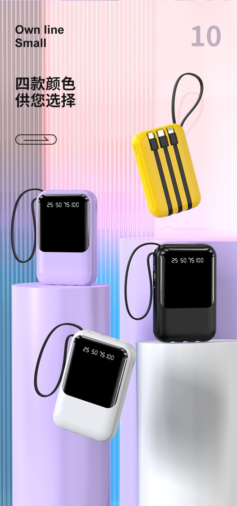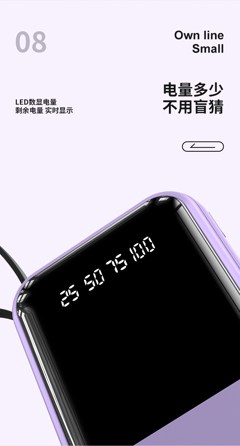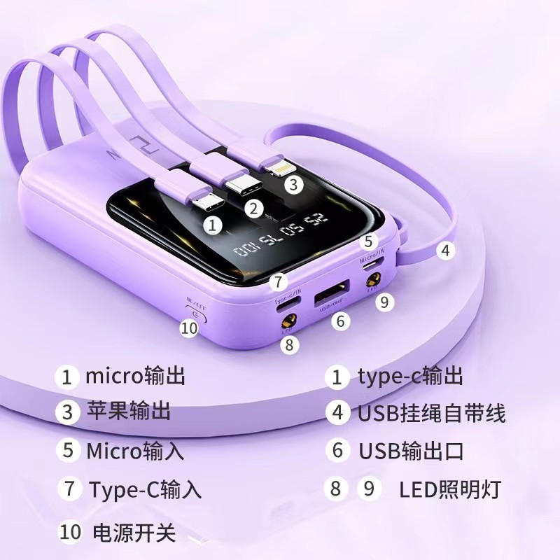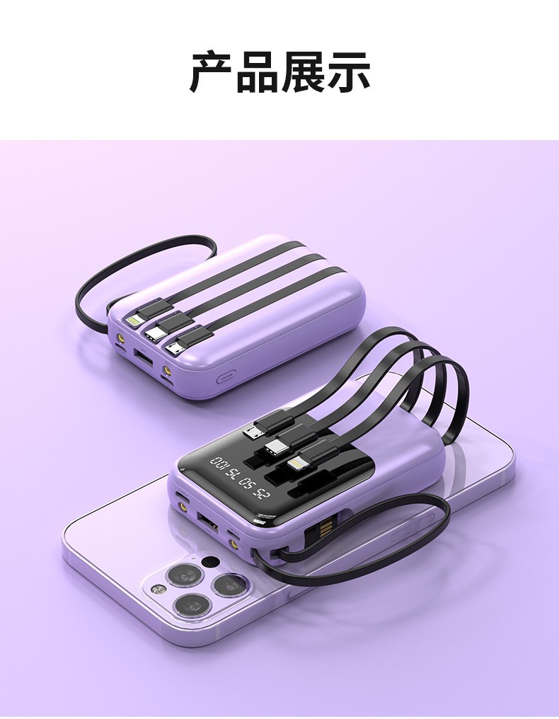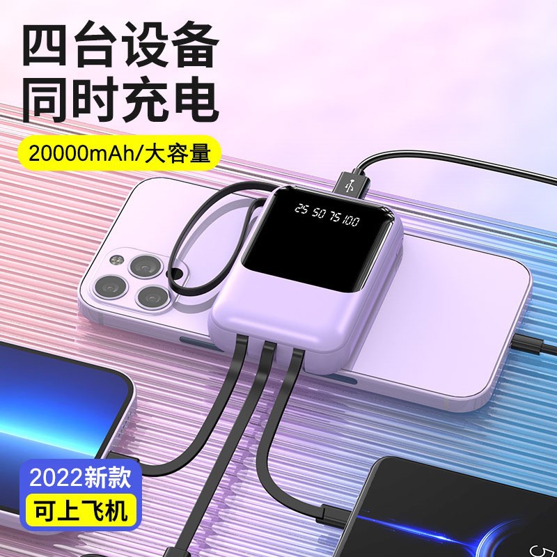 3C迷你自带线充电宝20000毫安超大容量移动电源礼品LOGO定制批发
