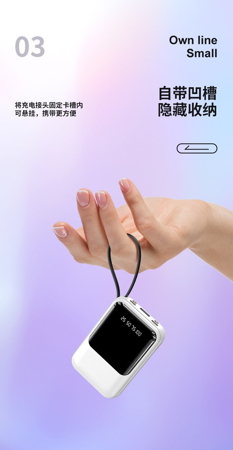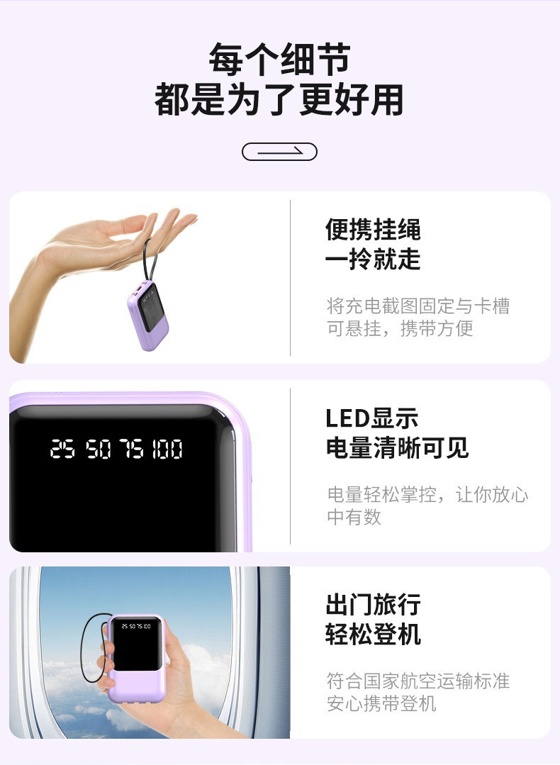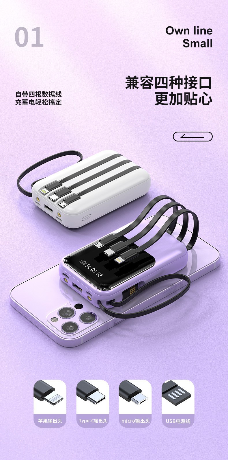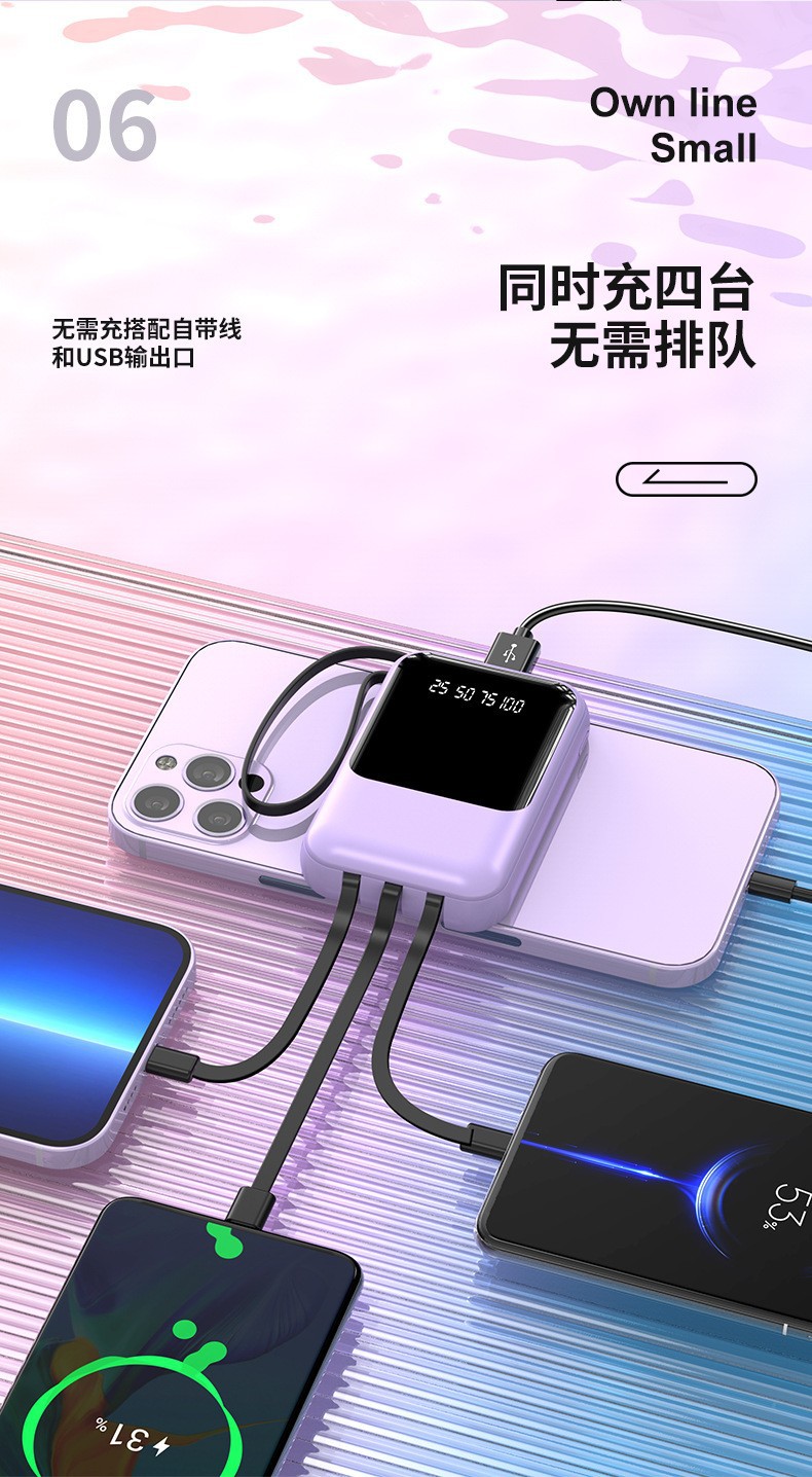 3C迷你自带线充电宝20000毫安超大容量移动电源礼品LOGO定制批发