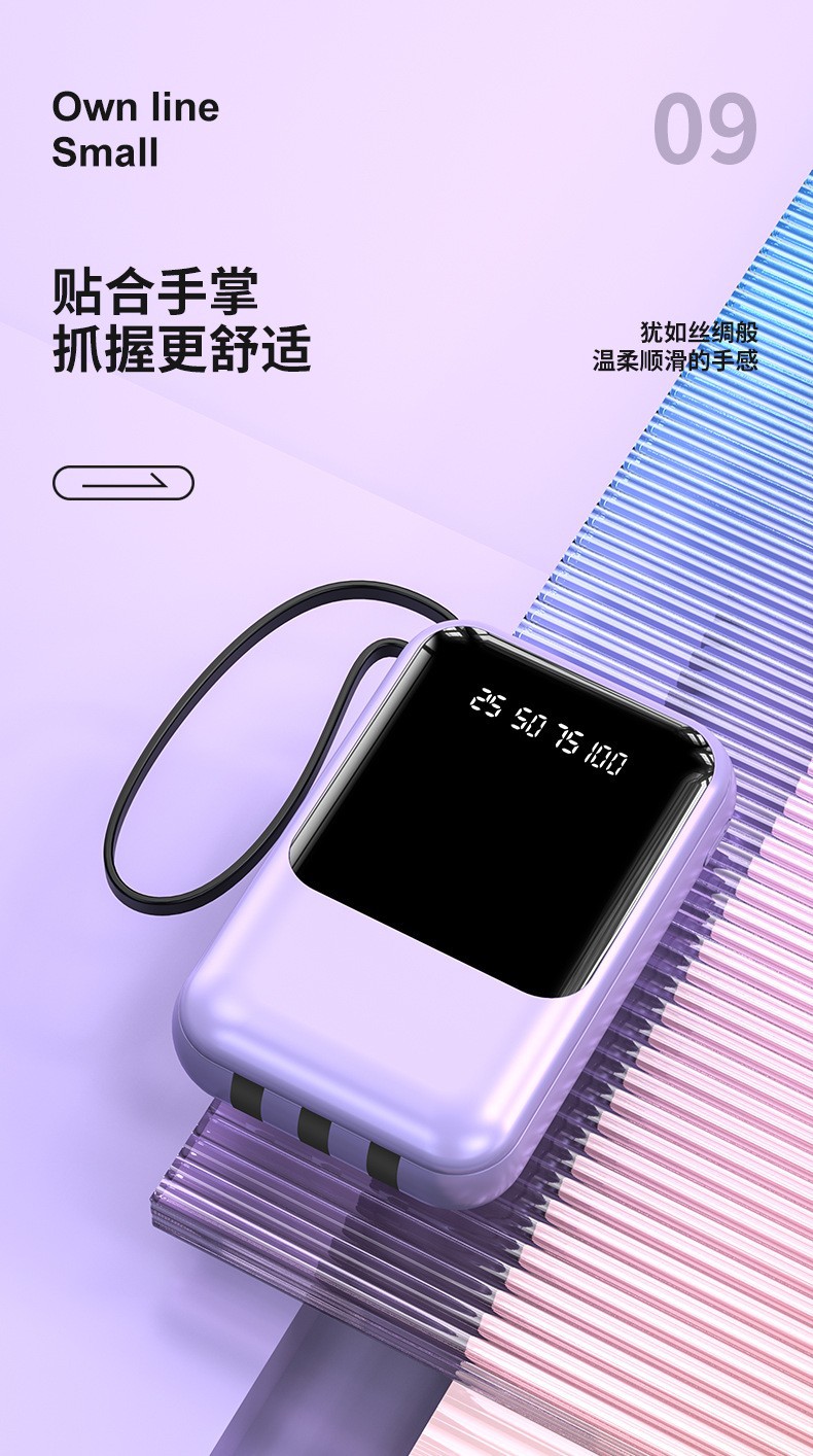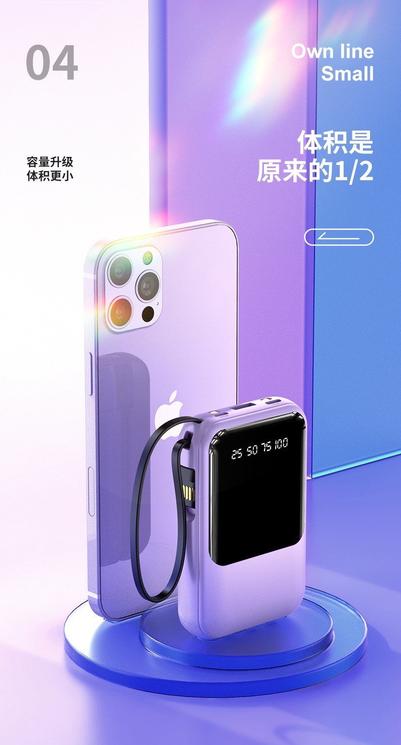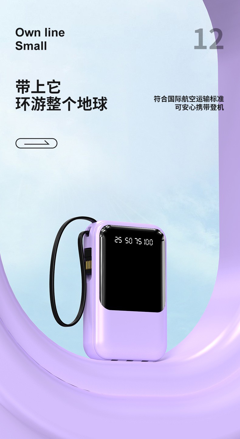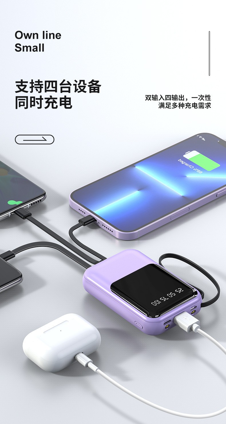 3C迷你自带线充电宝20000毫安超大容量移动电源礼品LOGO定制批发
